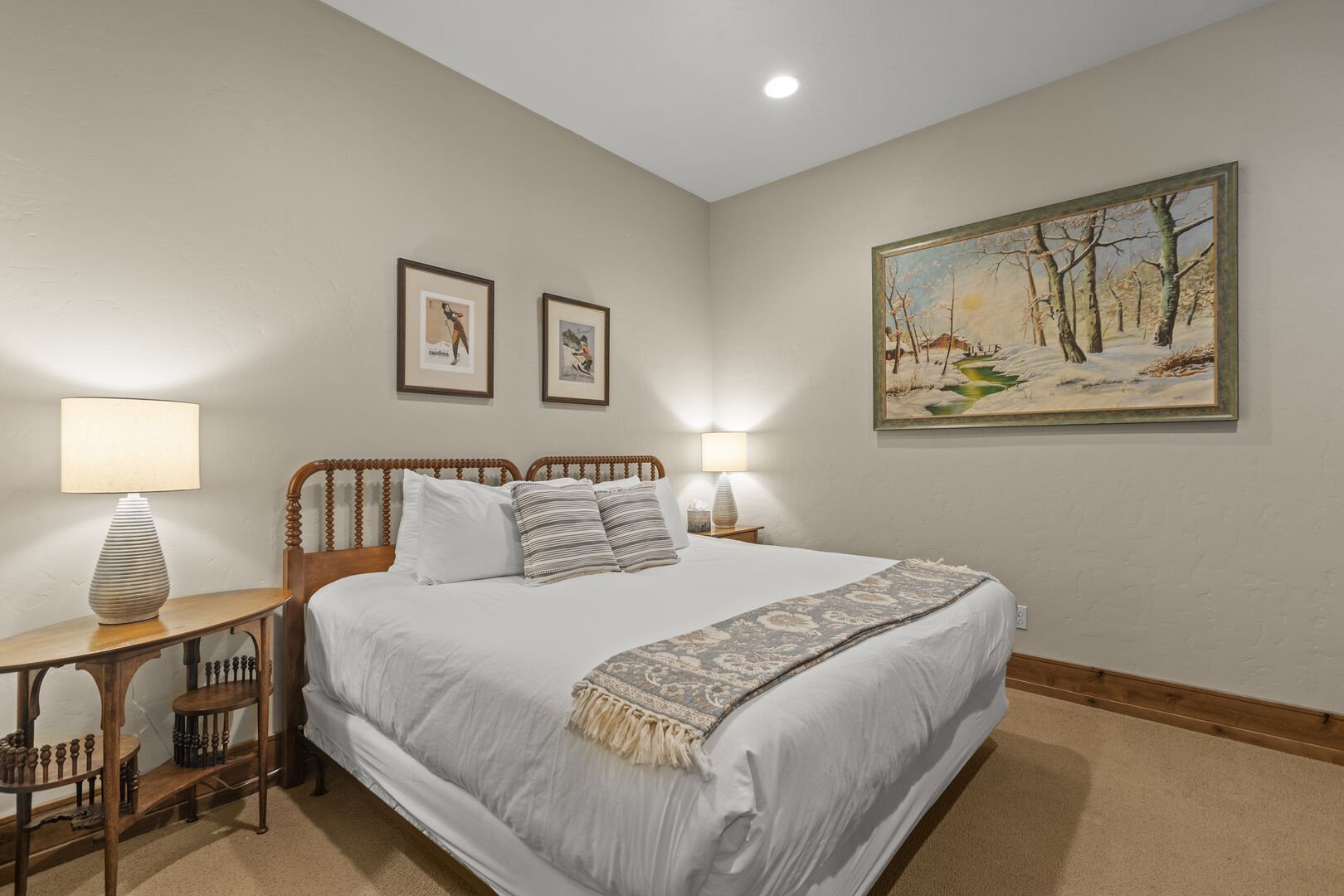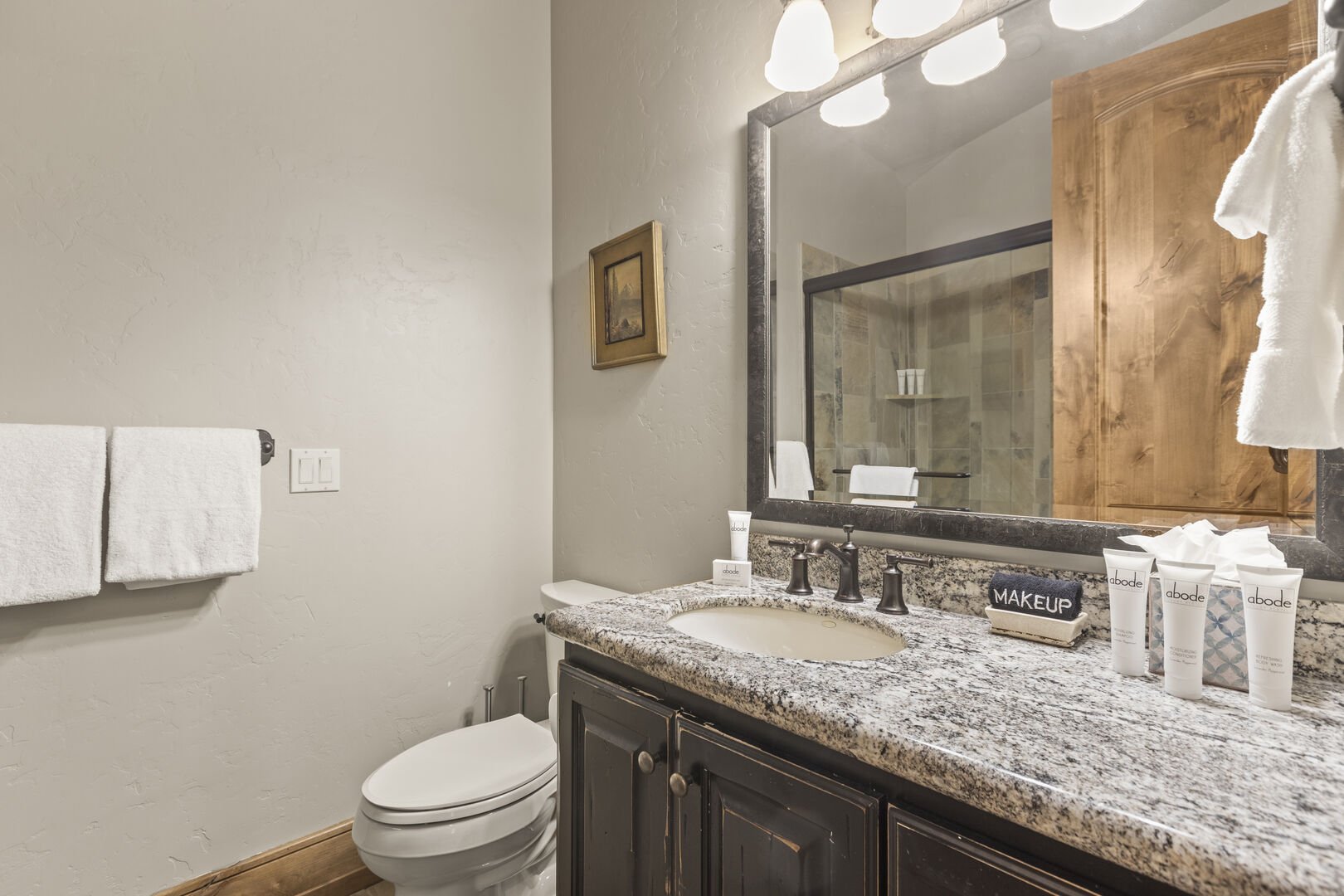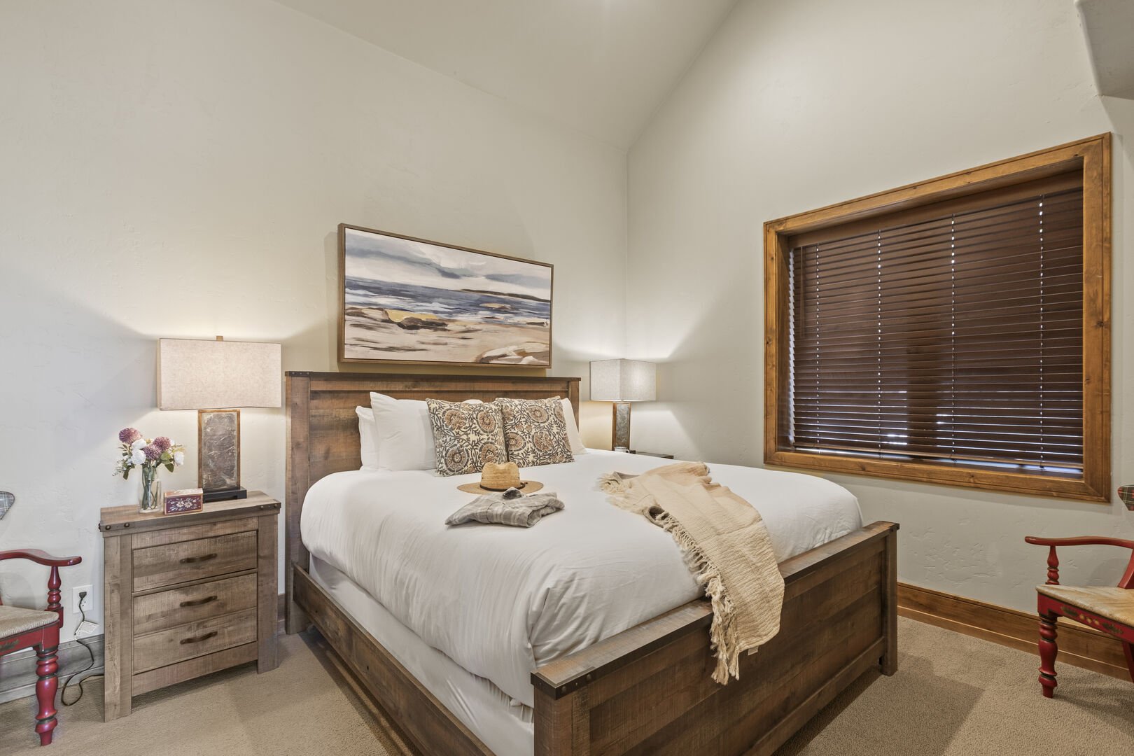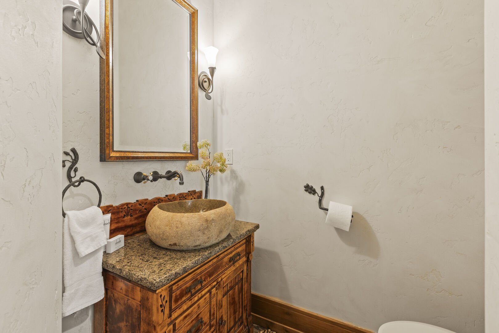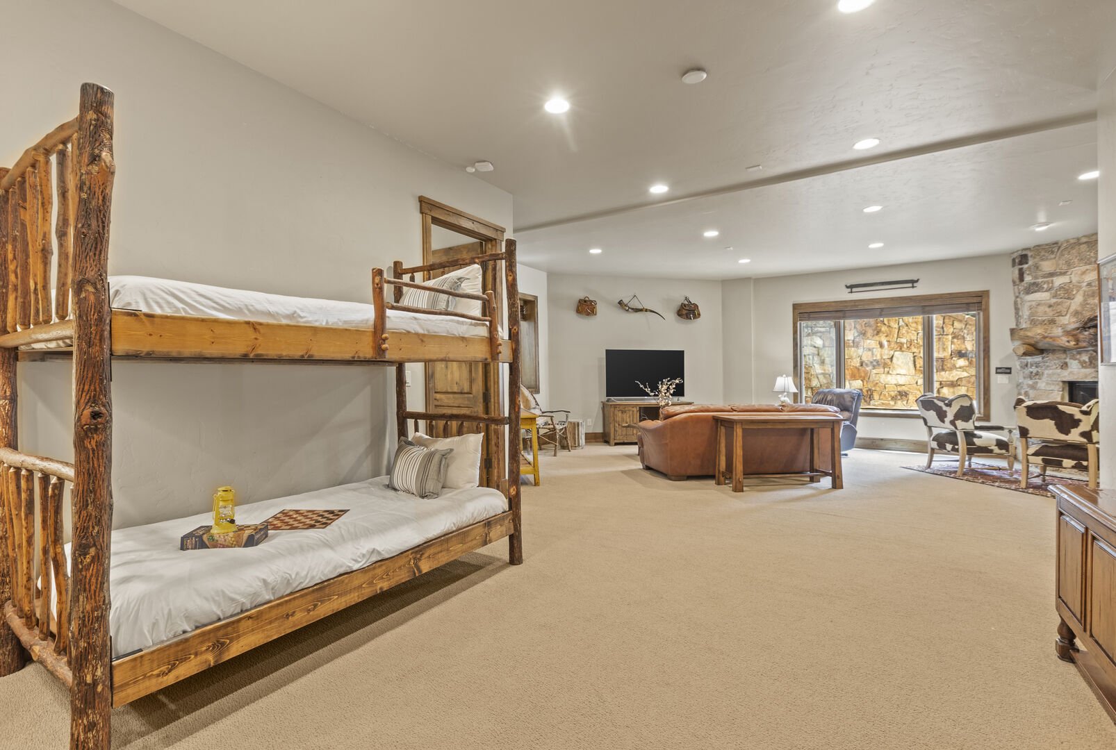 Each of the five bedrooms has been designed to offer serenity and comfort, creating an atmosphere of calm after a day in the mountains. Whether you prefer a spacious room with a king bed and flagstone fireplace, a cozy space with balcony views of the slopes, or a suite with a luxurious ensuite bathroom, there’s something here for everyone. It’s an ideal layout for families, groups of friends, and corporate retreats alike.