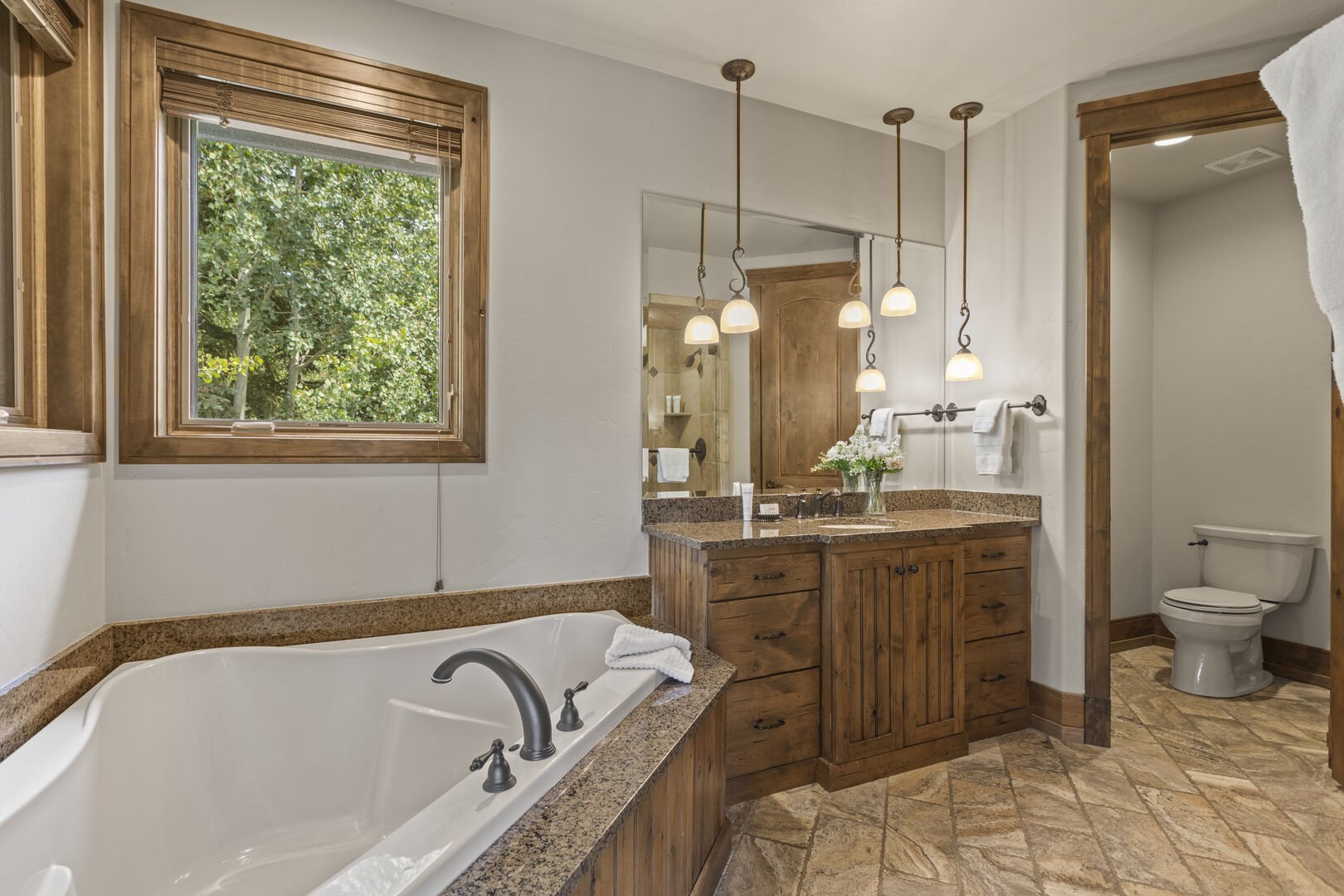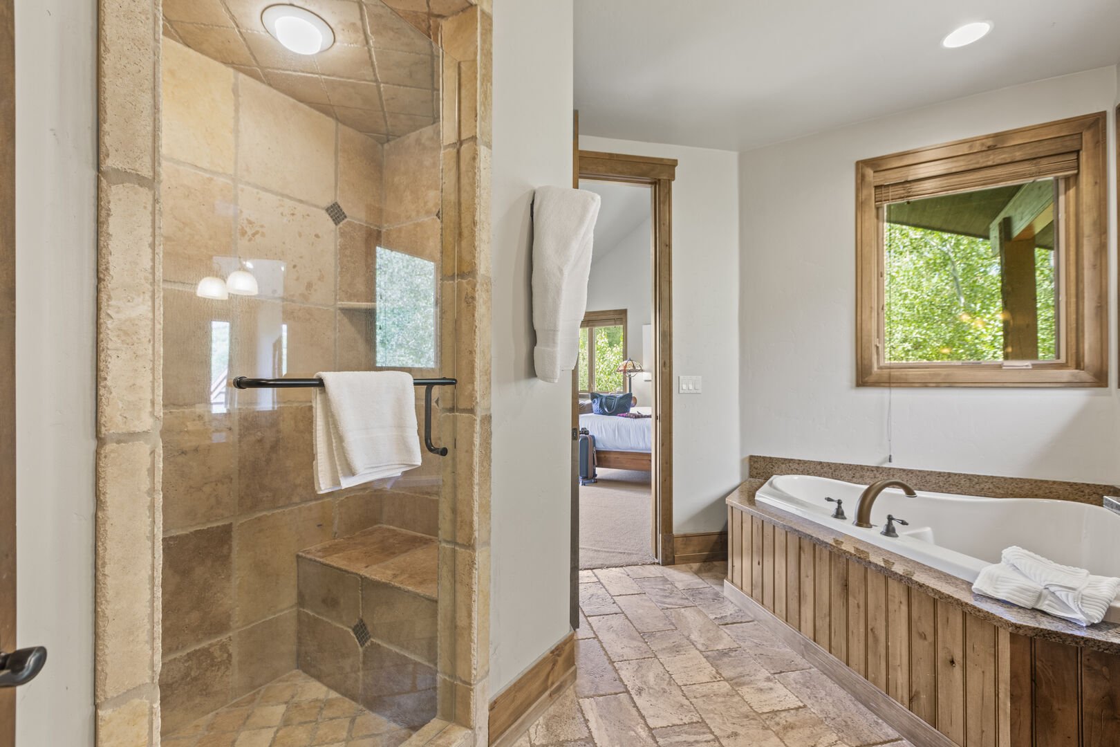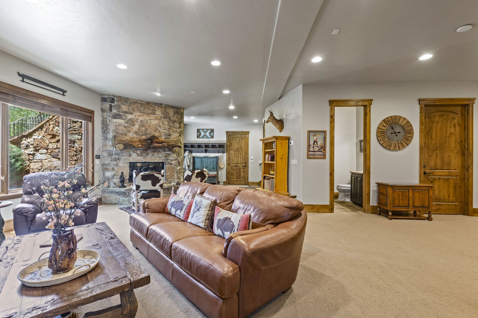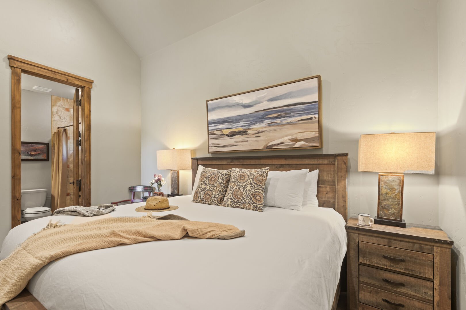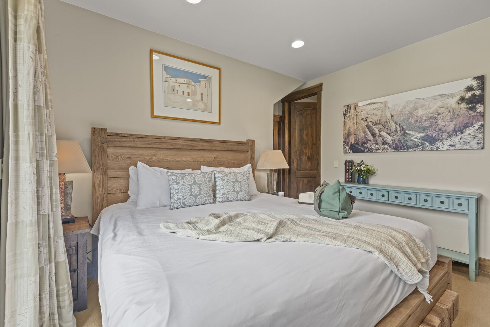 Each of the five bedrooms has been designed to offer serenity and comfort, creating an atmosphere of calm after a day in the mountains. Whether you prefer a spacious room with a king bed and flagstone fireplace, a cozy space with balcony views of the slopes, or a suite with a luxurious ensuite bathroom, there’s something here for everyone. It’s an ideal layout for families, groups of friends, and corporate retreats alike.
