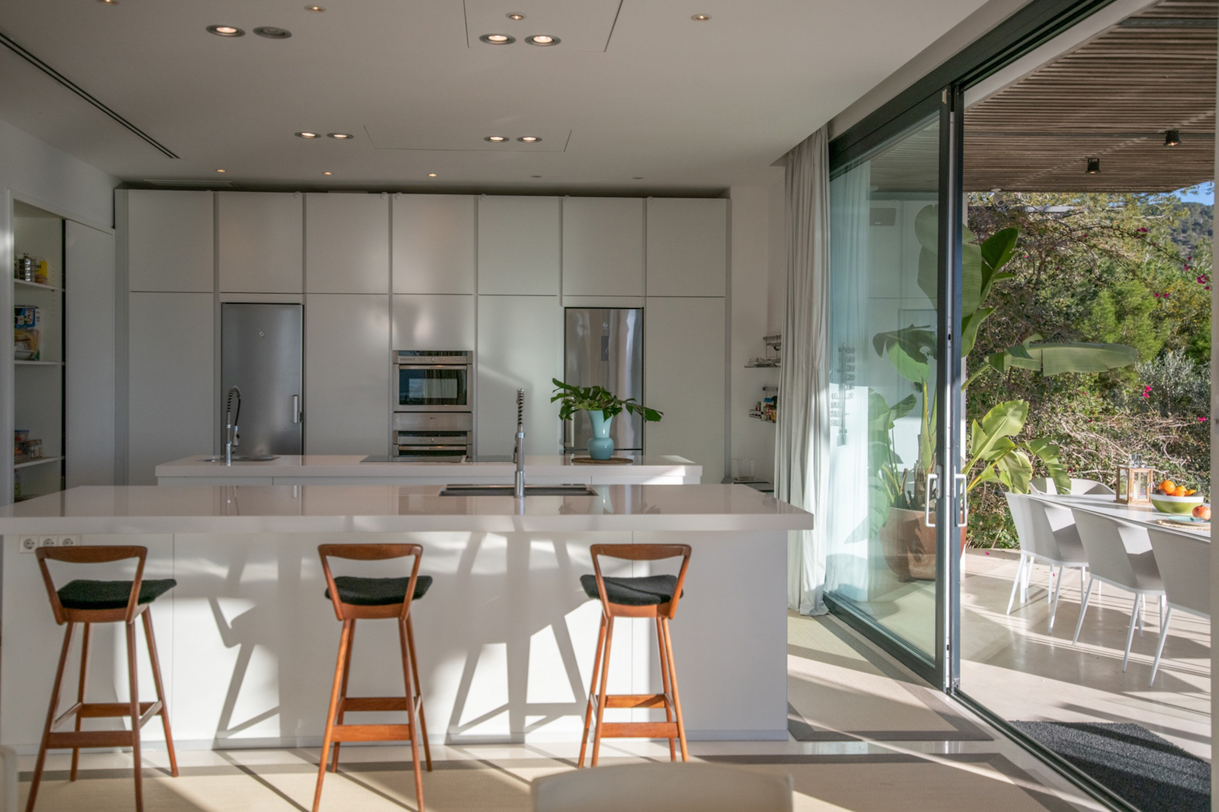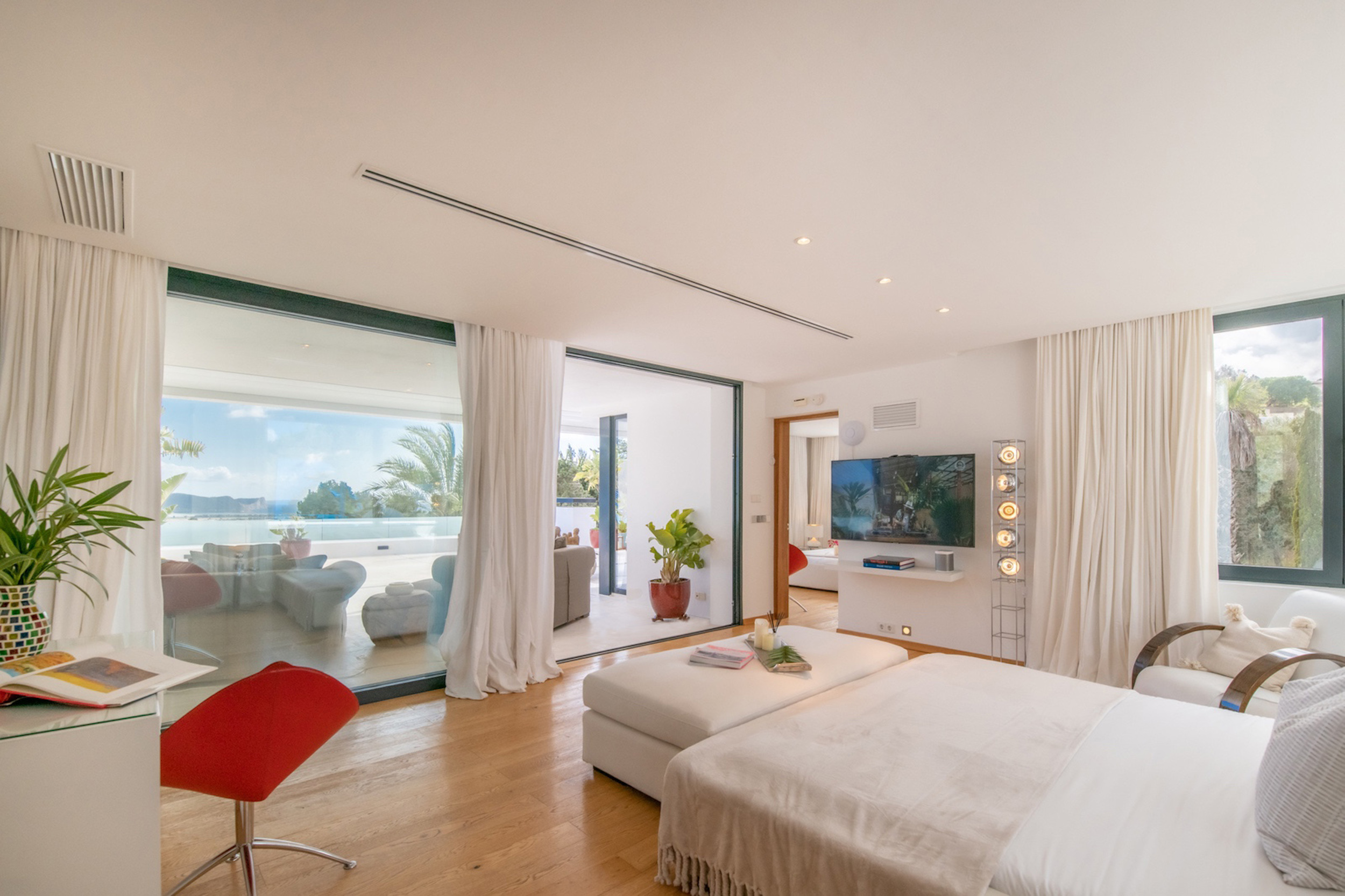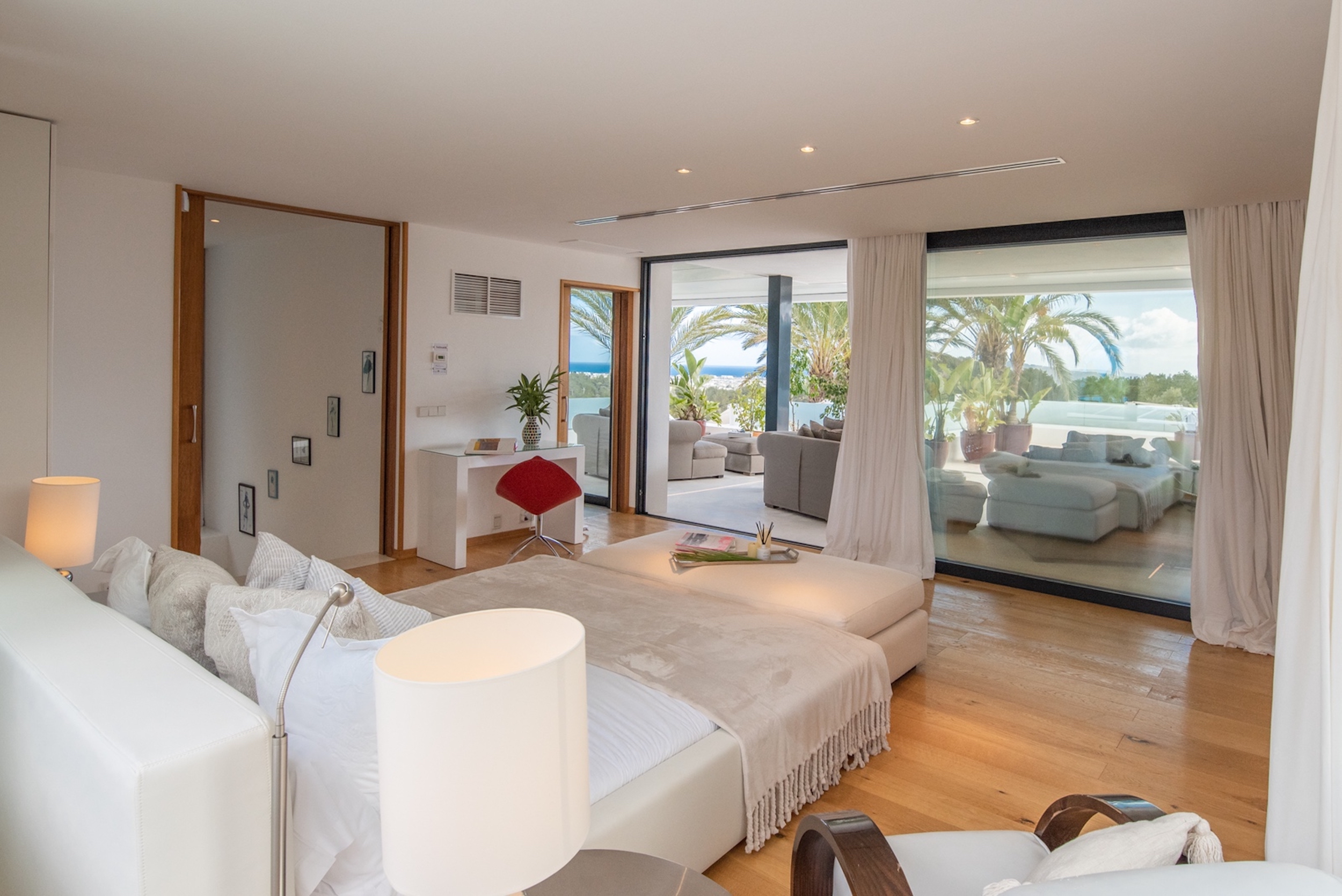 Another spacious sun terrace closer to the house boasts additional al fresco chillout space. Come out here to meet the sunrise, chill by day or, at dusk, enjoy the spectacular colours of an Ibizan sunset.