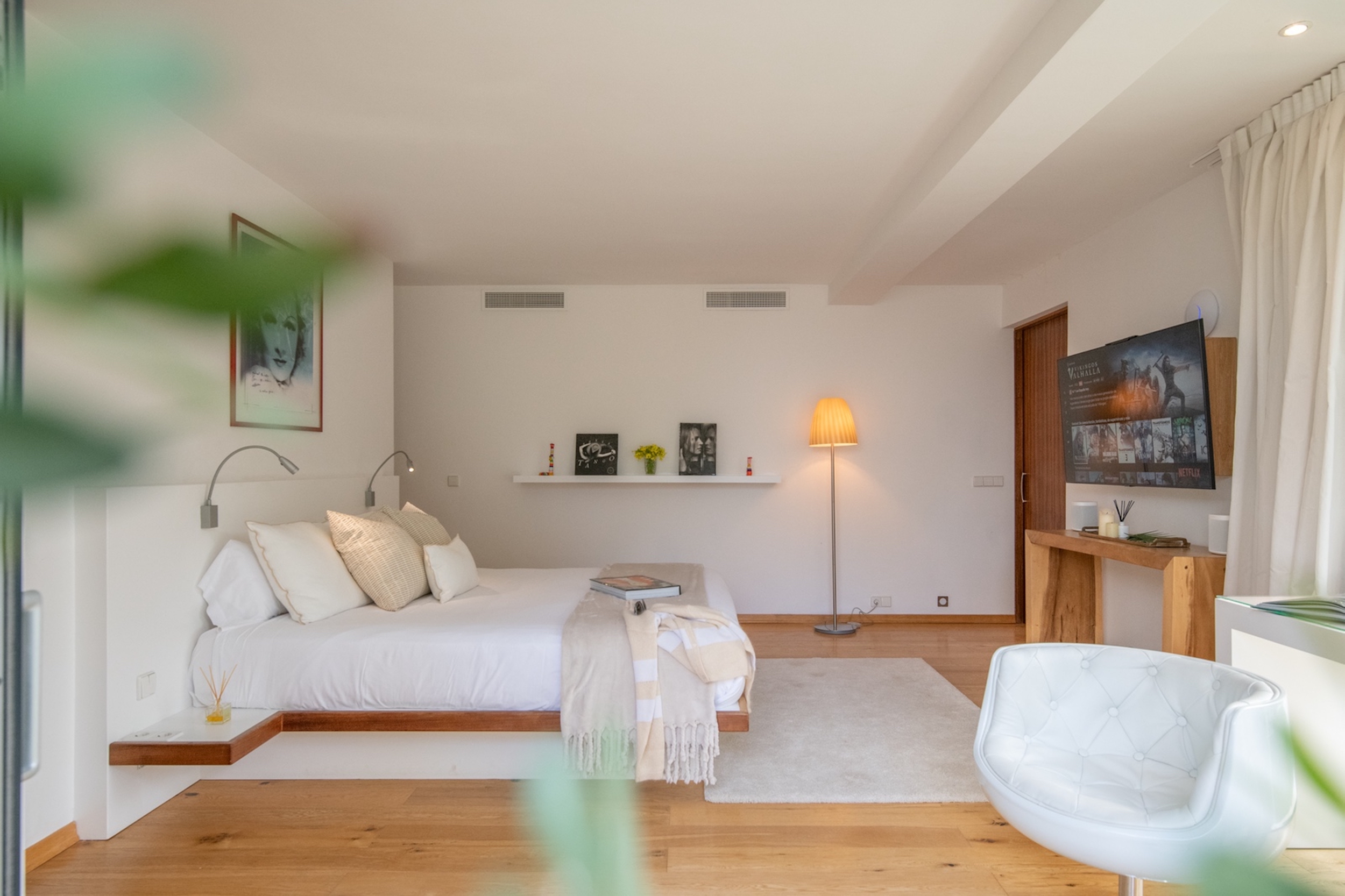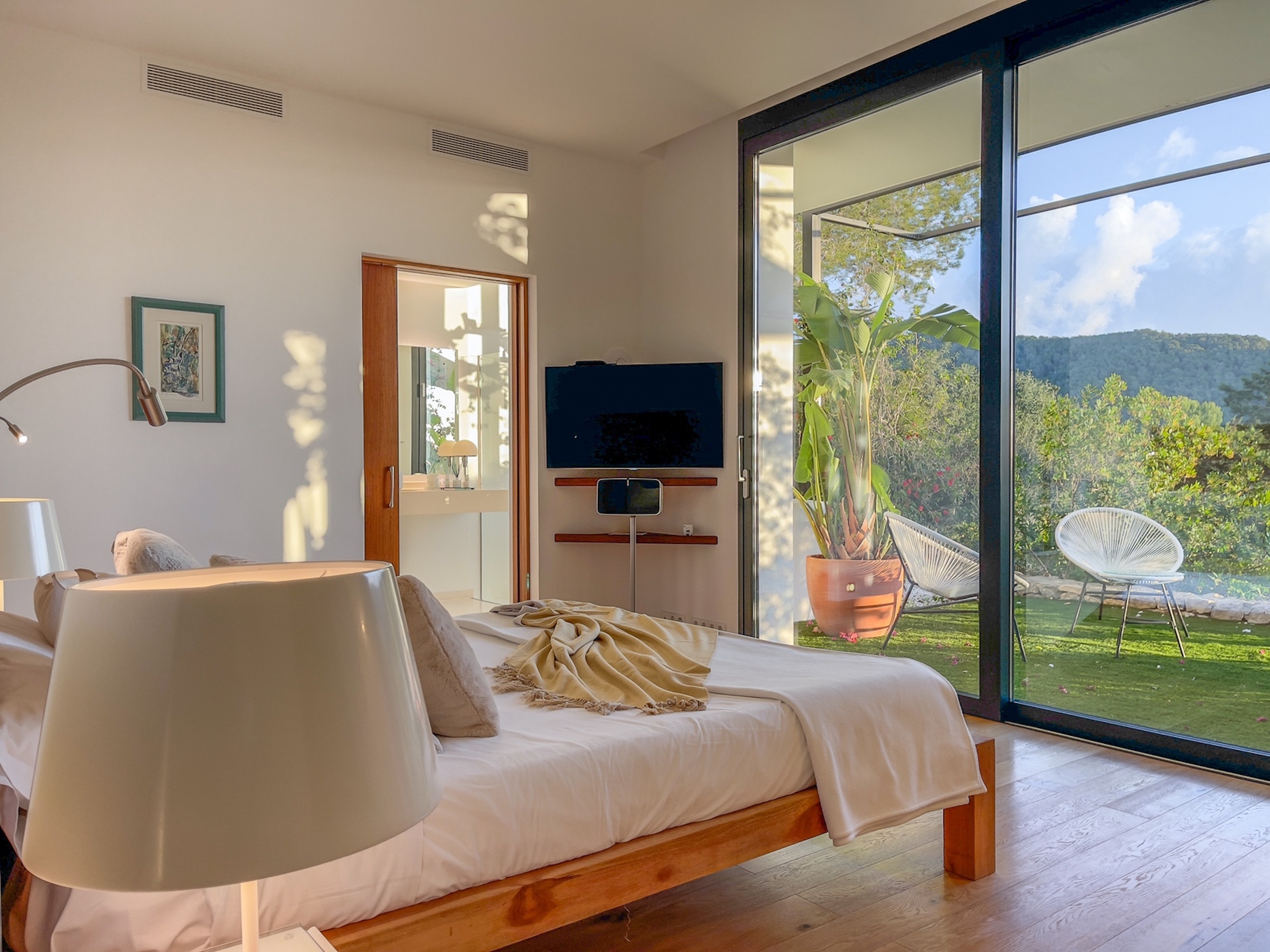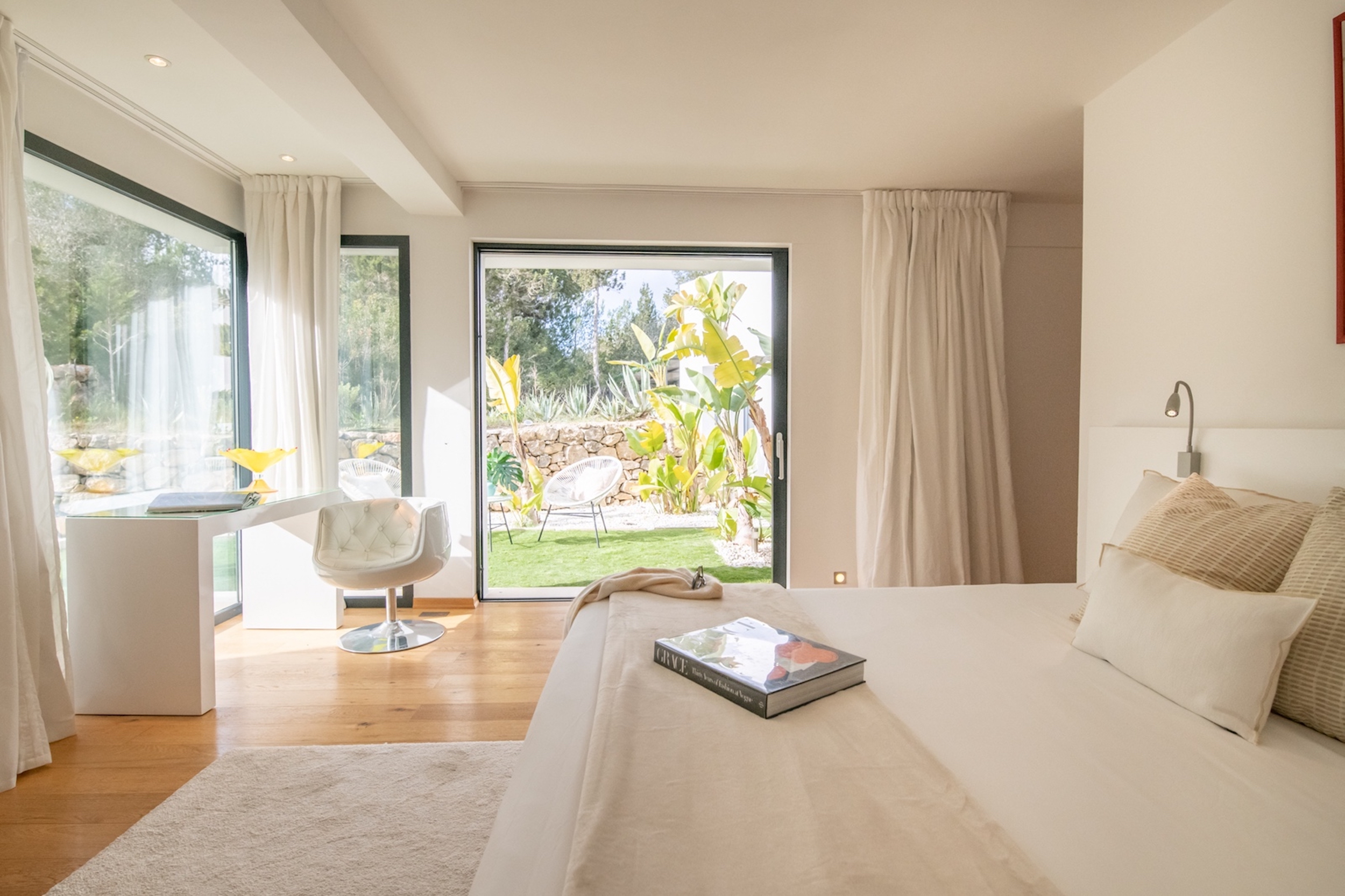 Another spacious sun terrace closer to the house boasts additional al fresco chillout space. Come out here to meet the sunrise, chill by day or, at dusk, enjoy the spectacular colours of an Ibizan sunset.