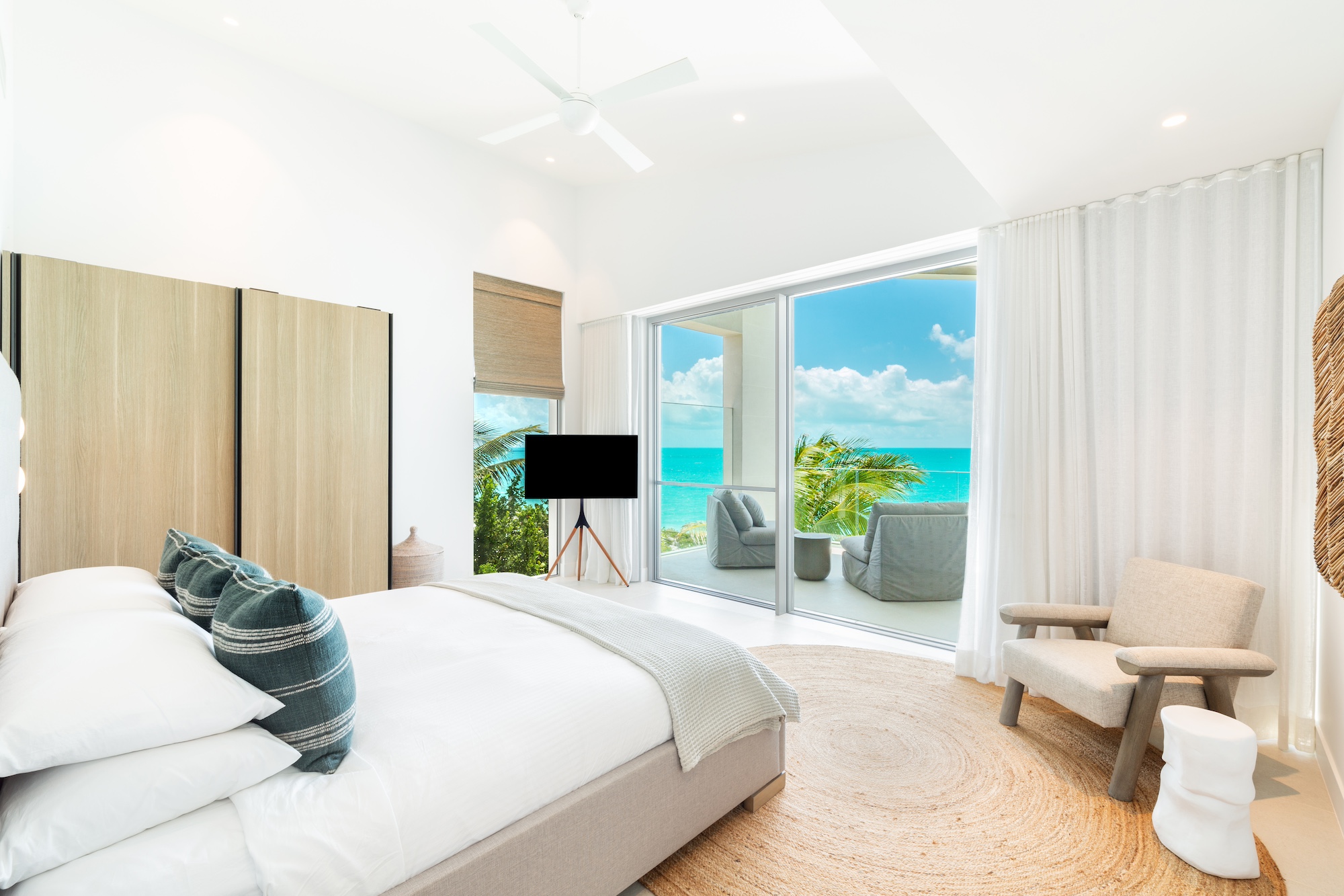 Inside, the estate continues to impress with its spacious and thoughtfully designed living spaces. The gourmet kitchen, equipped with high-end appliances and ample counter space, is perfect for preparing curated meals to enjoy with family and friends. The open-concept dining and living areas provide a seamless flow for both relaxation and entertaining, all while being surrounded by elegant coastal décor that enhances the tranquil atmosphere of the estate. Whether you’re savoring a meal, lounging by the pool, or taking in the ocean views, The Reef Estate offers the ultimate in luxury and serenity.