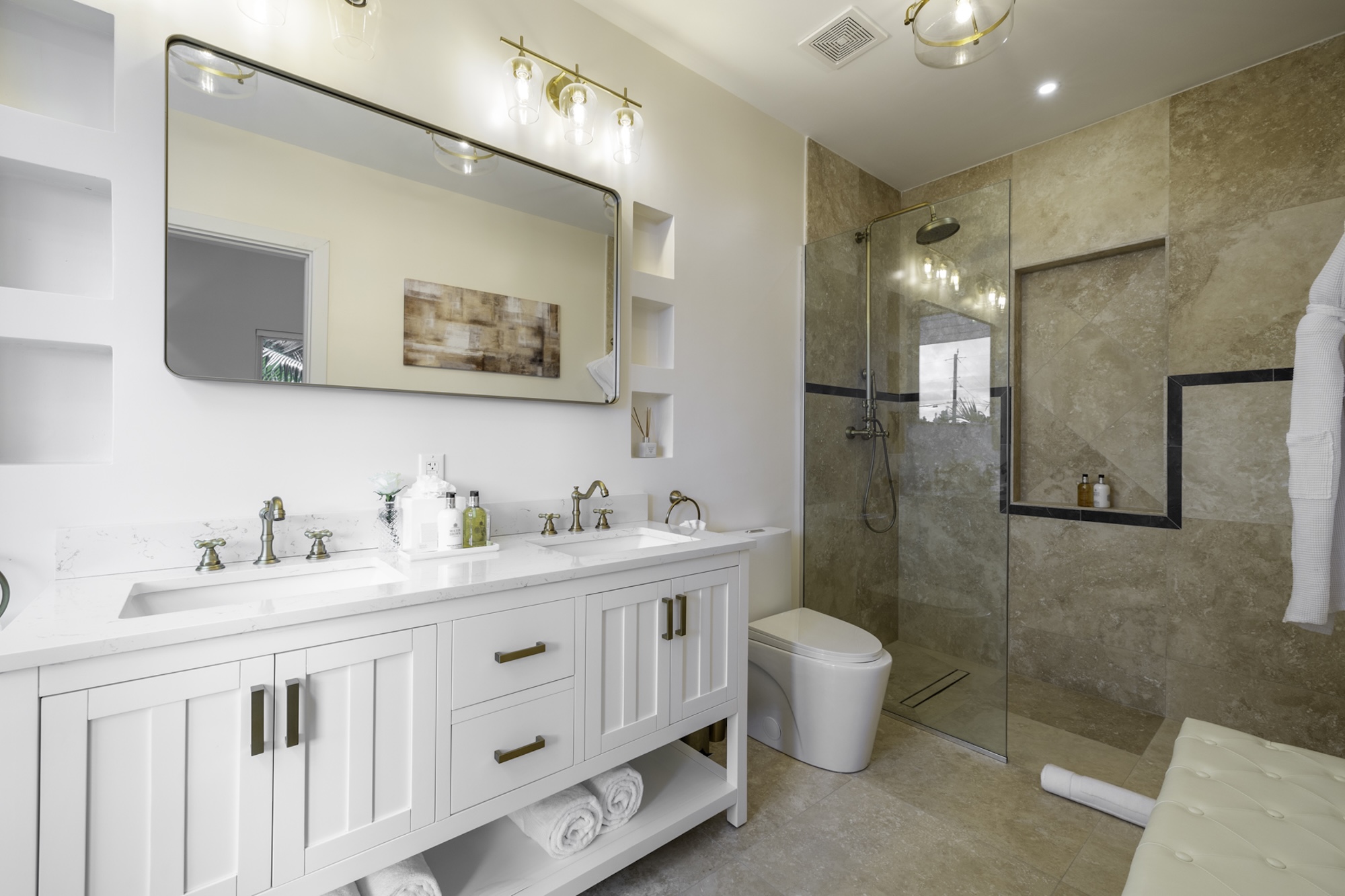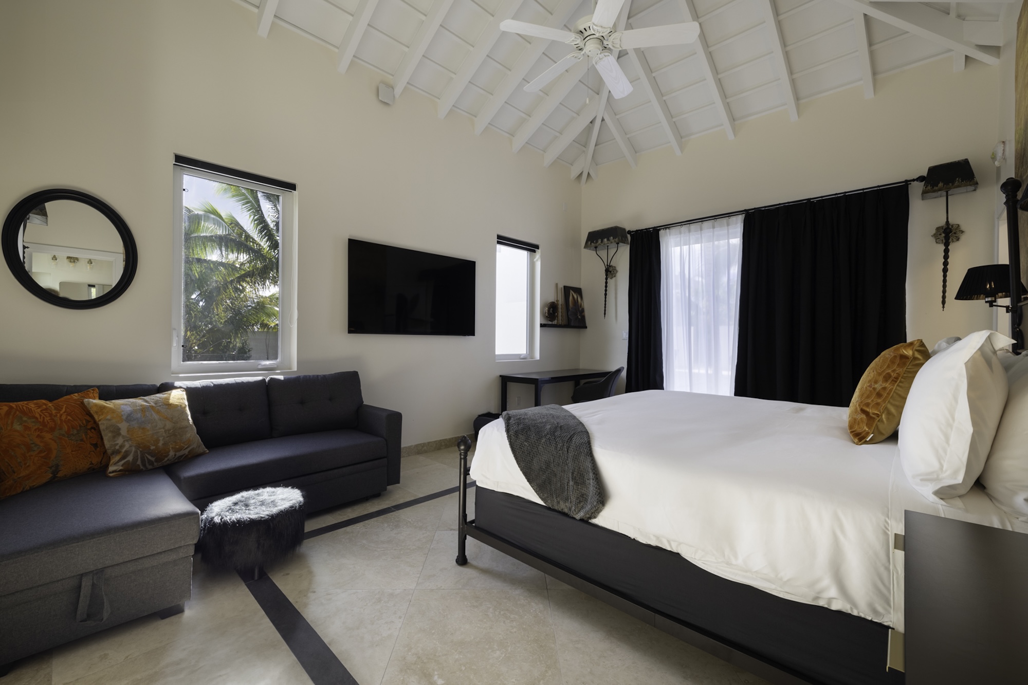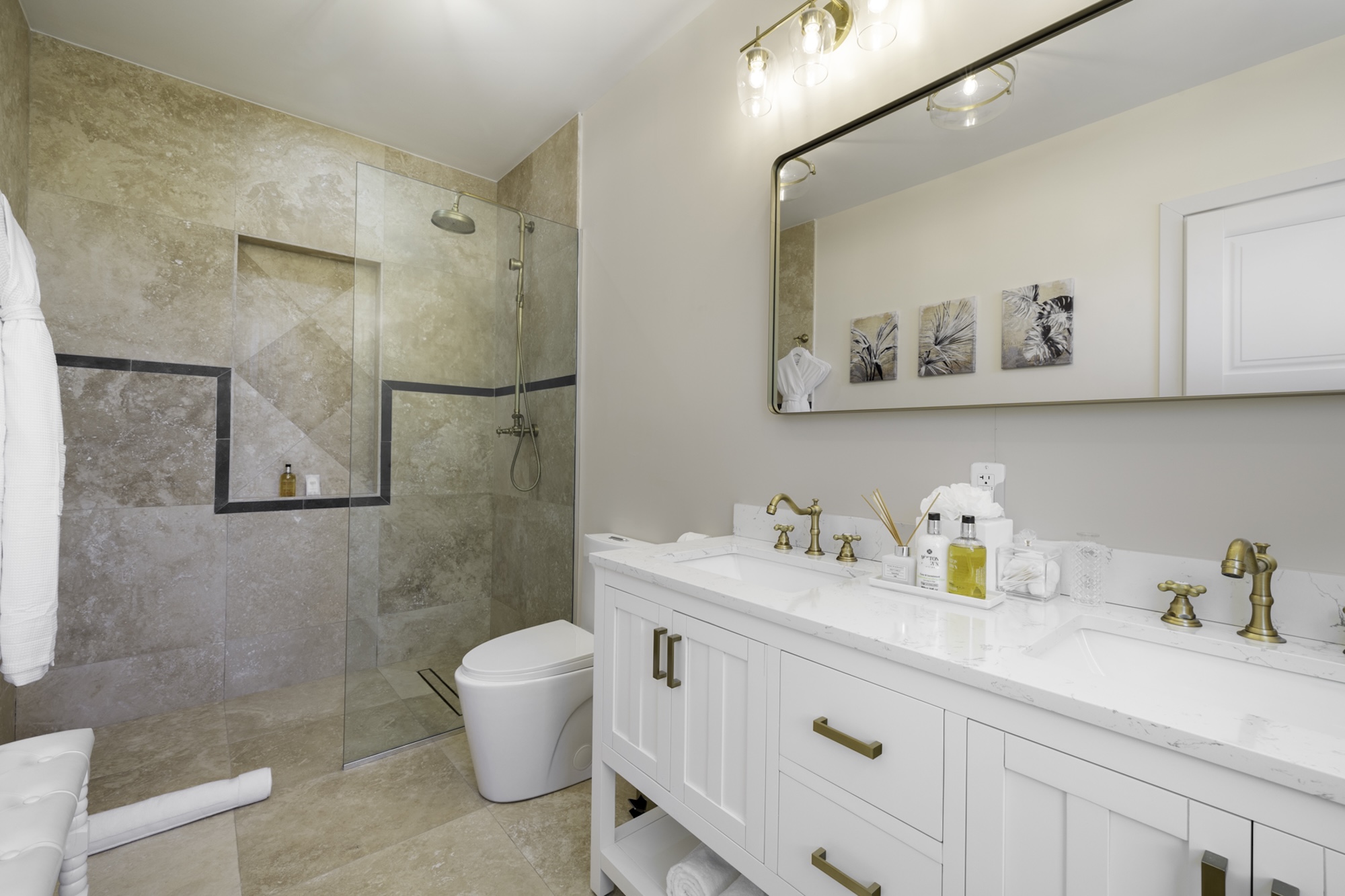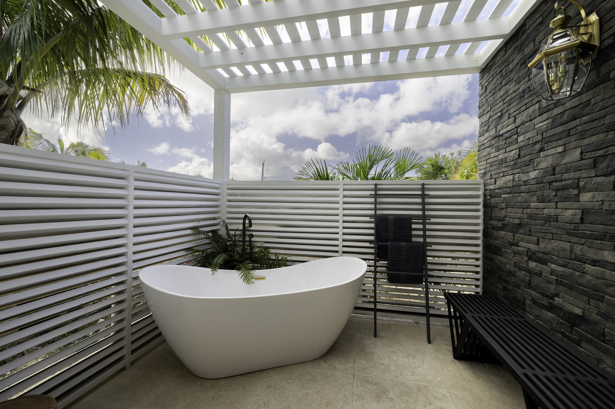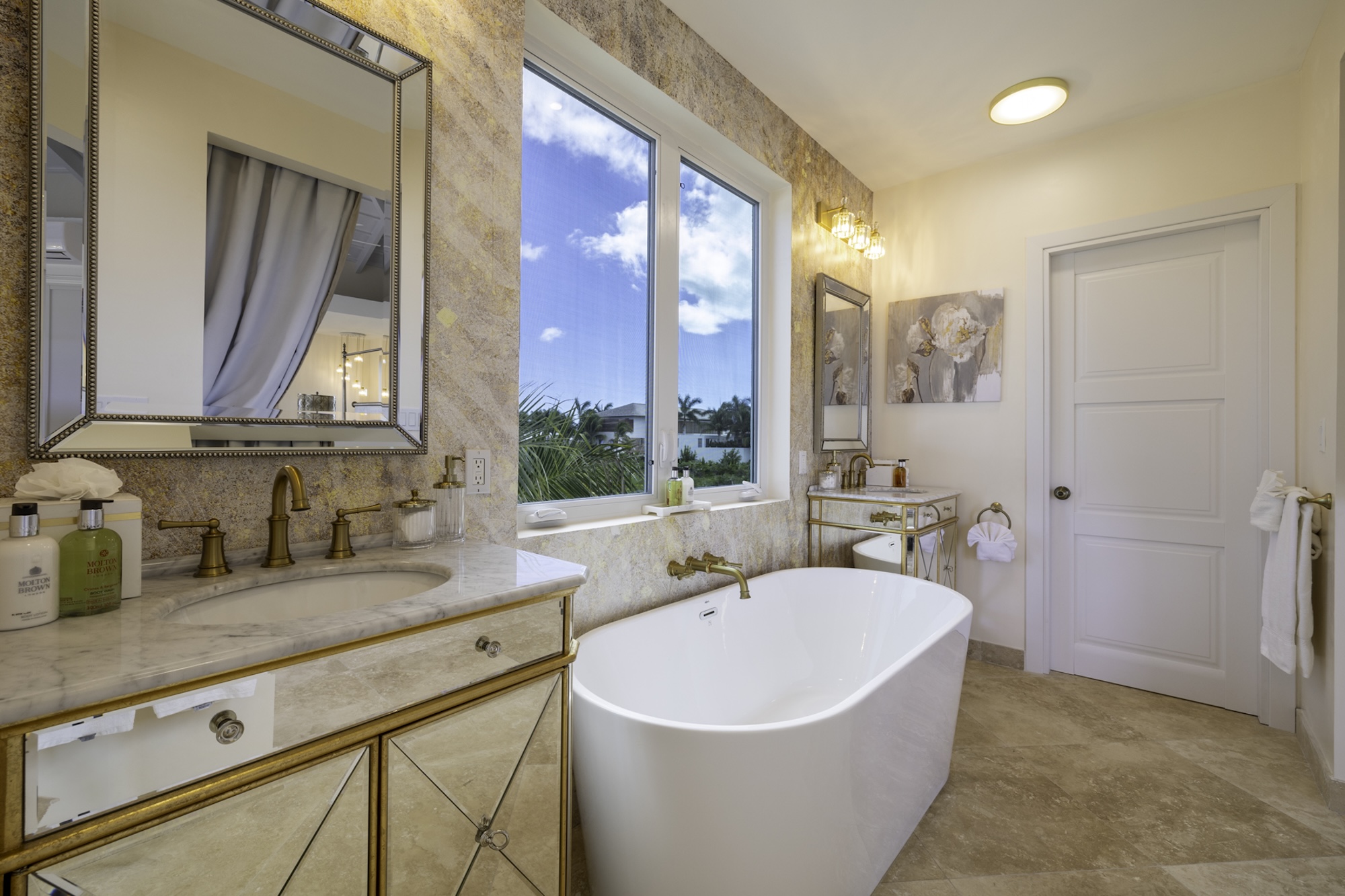 • Ensuite bathroom with stand-alone shower, Dual Vanity, Outdoor bathtub, Molton Brown toiletries, Samsung Smart TV (Amazon Prime, Netflix), Apple TV, AC, ceiling fan, mini-fridge, personal safe.