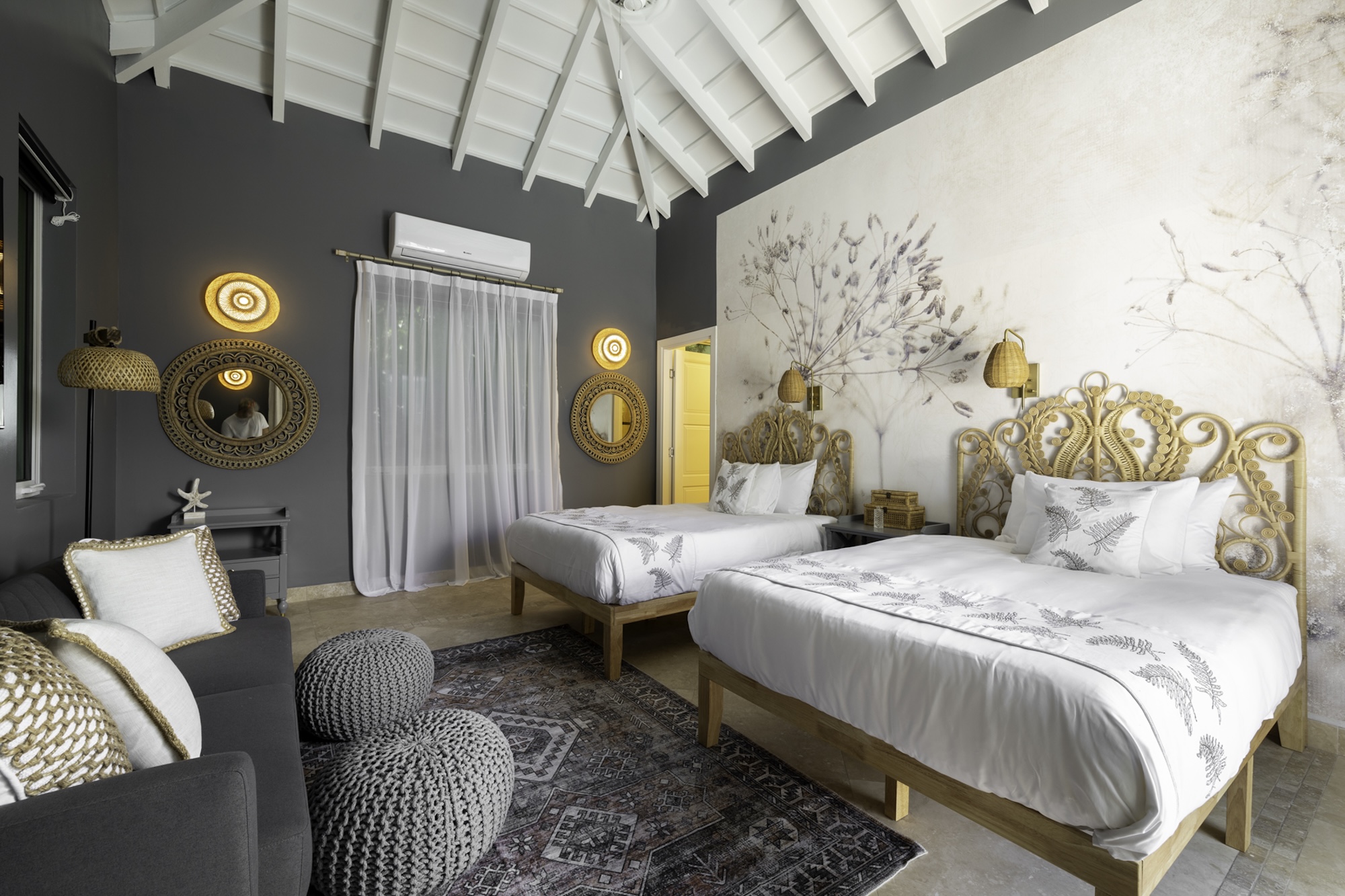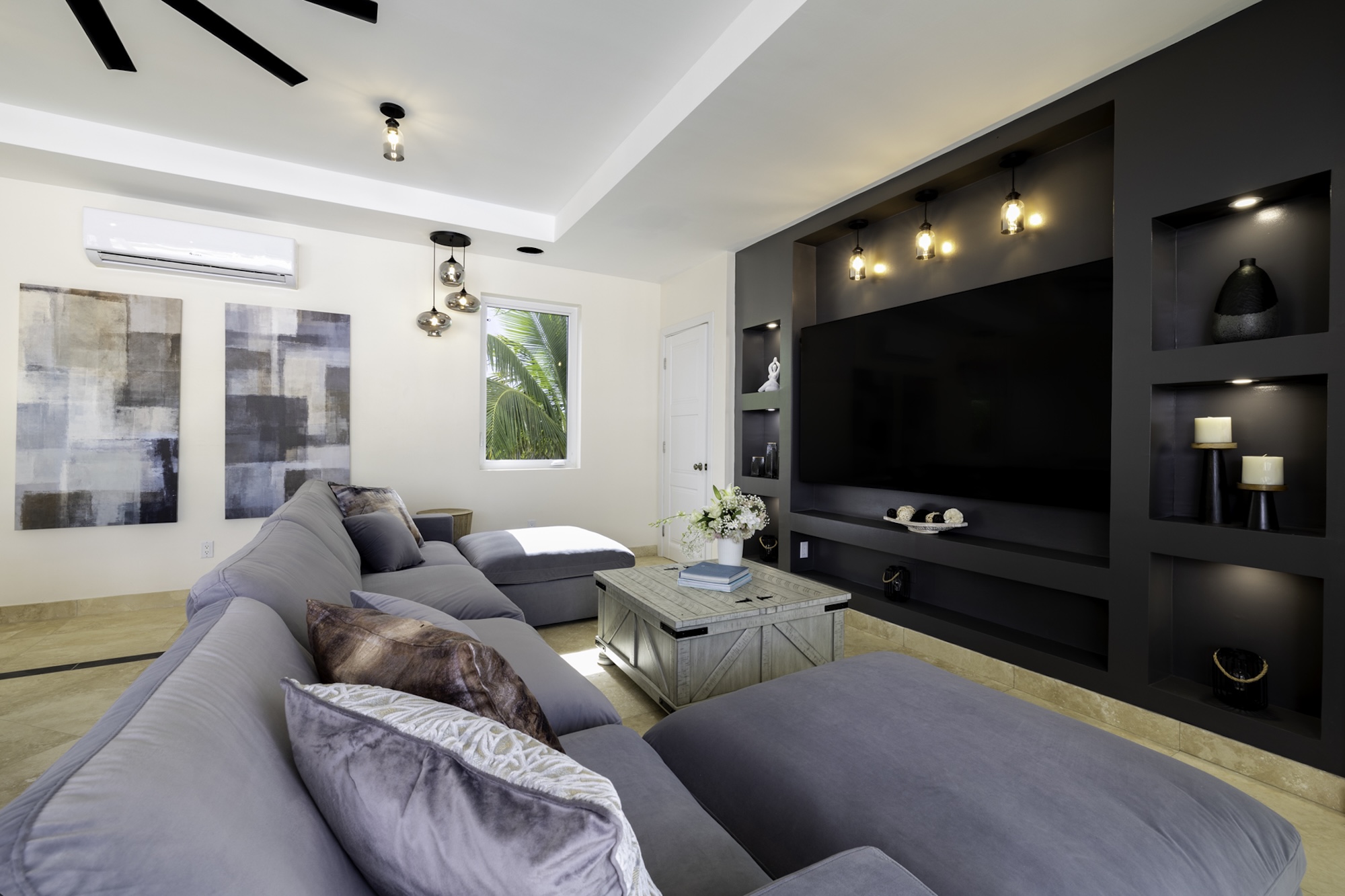 Accommodating up to 32 guests in 2 villas, villas features 13 elegant bedroom suites, each with dual vanities, Smart TVs, cable, Netflix, and Apple TV. Step outside effortlessly and let the soothing sound of ocean waves lull you to sleep. Guests at Pearl West enjoy first-class amenities shared with Pearl East and Lidija’s House, including a state-of-the-art 1,100-square-foot gym, a tennis court, and an alfresco spa for rejuvenating massages. For entertainment, we can arrange private events, or you can unwind with a movie in the indoor cinema room.