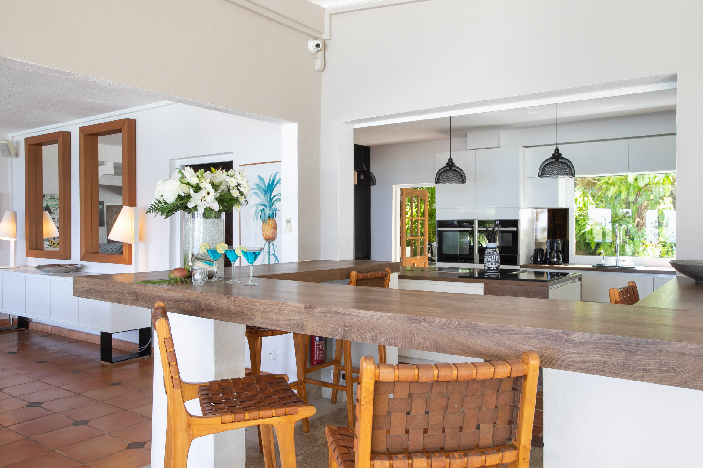 Surrounding the property lies an 8,000-square-meter tropical garden—a vibrant oasis filled with exotic flora, fruit trees, and tranquil water features. Here, the infinity pool seems to blend seamlessly with the ocean, while sun-drenched terraces and shaded lounges invite guests to unwind. As night falls, a wood-fired barbecue transforms the garden into an enchanting dining scene beneath a starlit Caribbean sky.