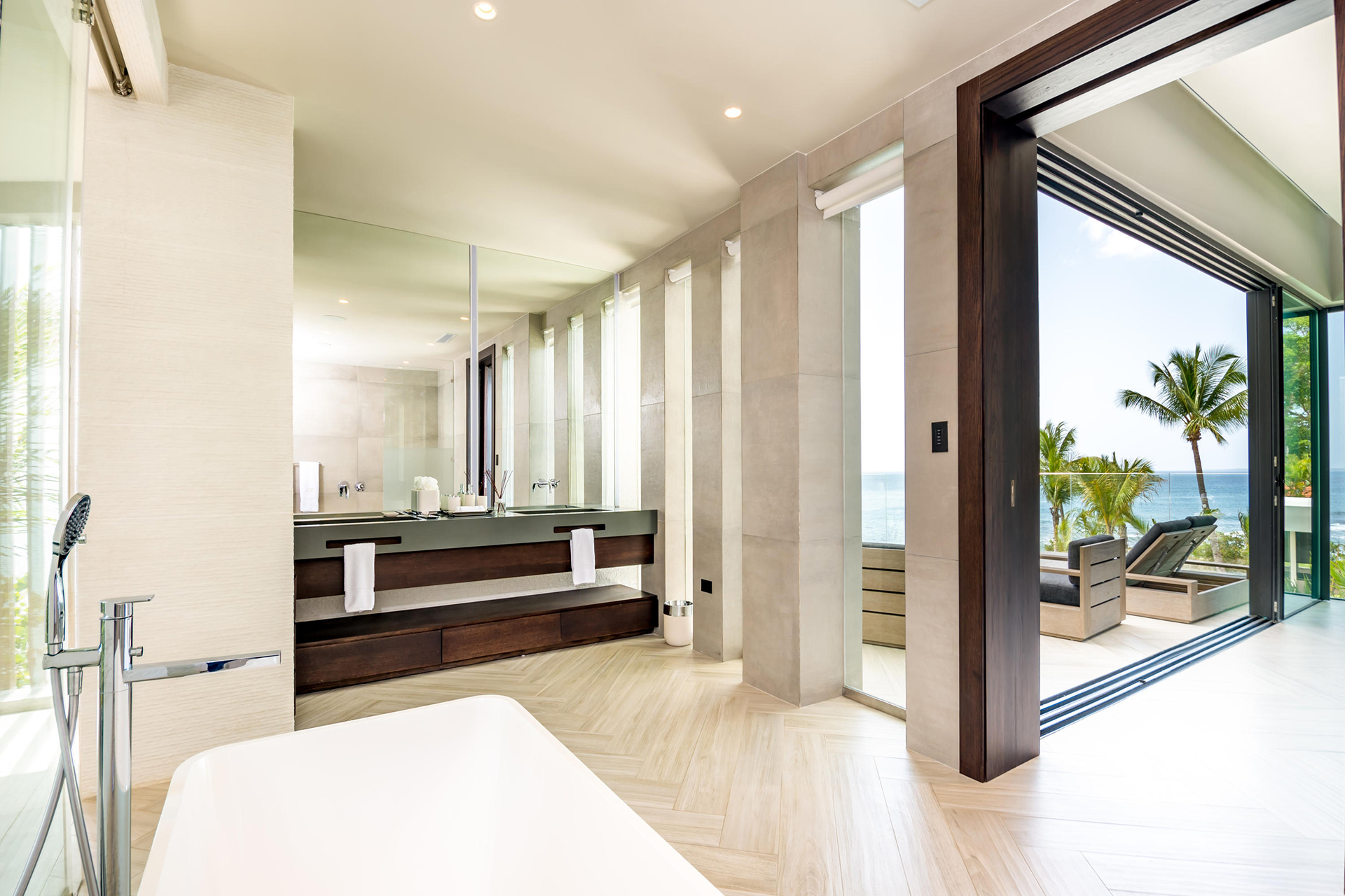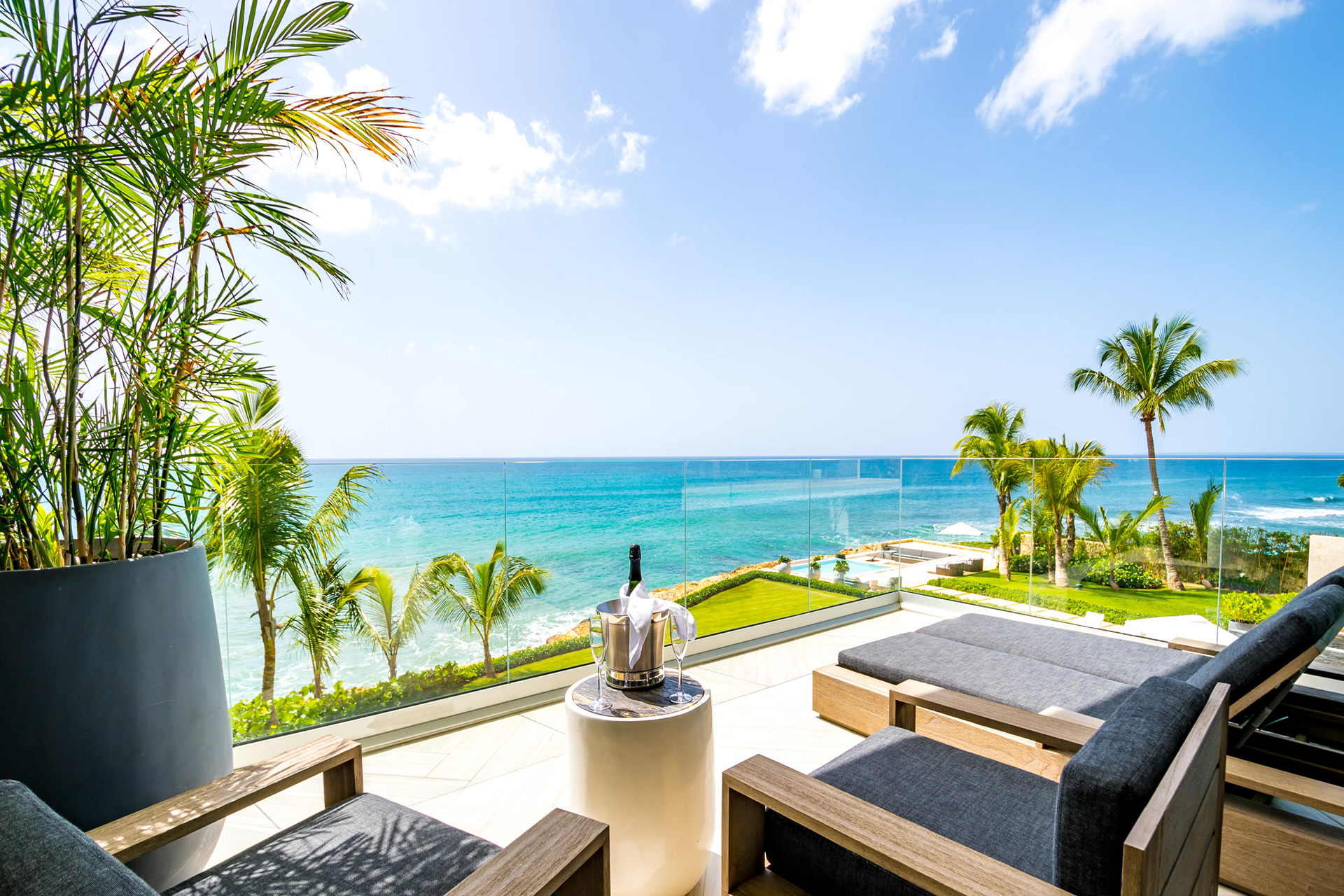 For entertainment and relaxation, the villa offers two media rooms where guests can enjoy movies, music, or games; and an office space for those who need to attend to work matters during their stay. Â All six bedrooms in the villa provide ocean views, private balconies, and lavish bathrooms, creating serene and private retreats for each guest. Outside, guests can enjoy a range of amenities. A large swimming pool and Jacuzzi provide a refreshing oasis. The villa also features a spacious gazebo with an alfresco sitting and dining area, as well as an exterior BBQ, allowing guests to enjoy outdoor meals and socializing in a beautiful setting.