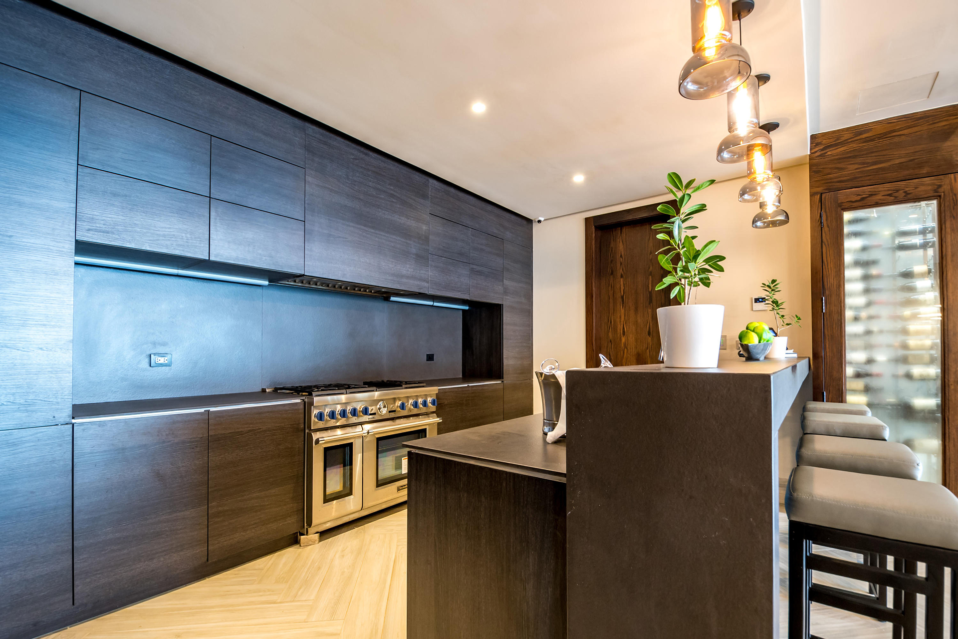 The villa features an open-plan design with spacious living areas, allowing guests to enjoy a sense of openness and freedom. The large formal dining room includes a fully equipped bar and a wall-to-wall wine cooler, perfect for entertaining and enjoying a variety of beverages. This area opens up to an expansive terrace that faces the ocean, providing a spectacular backdrop for gatherings or simply relaxing while taking in the stunning views.