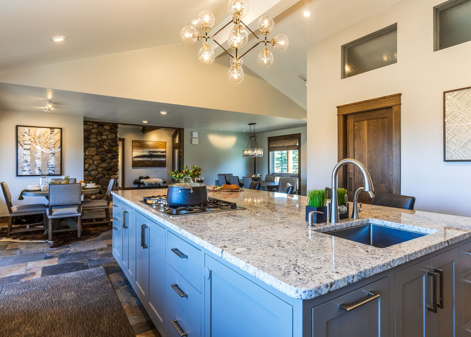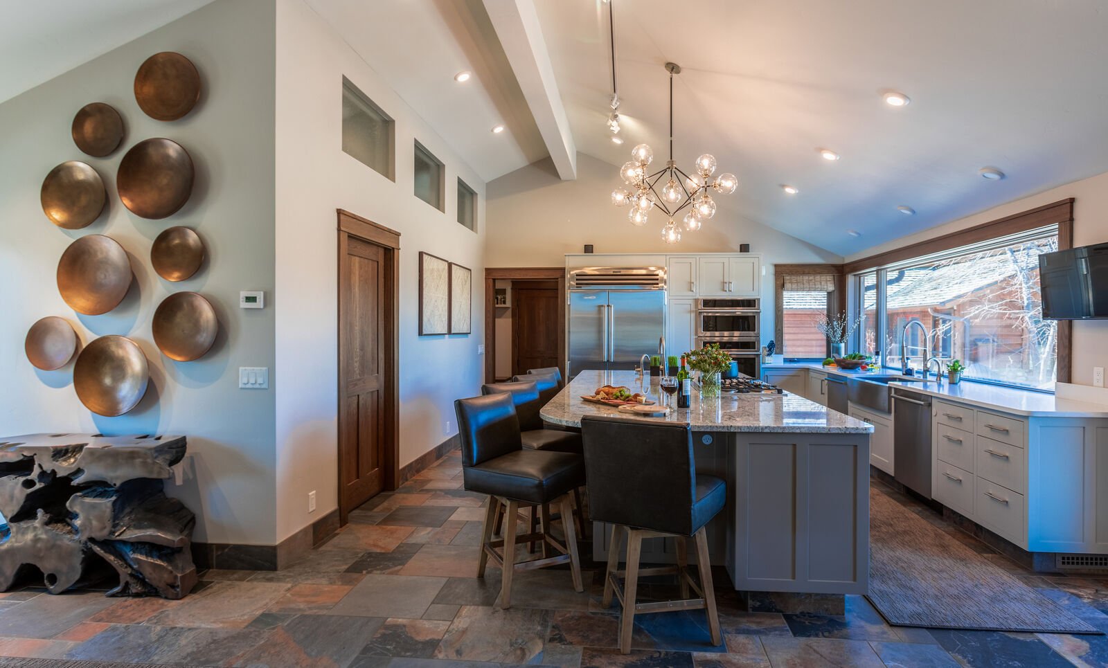 Recently remodelled with contemporary mountain design, this expansive single-level estate comfortably hosts up to 14 guests in beds between the main residence (4 bedrooms) and a private 2-bedroom guest house. With sleeper sofas in both spaces, the property can welcome up to 18 guests in total. Inside the main house, you’re surrounded by uninterrupted Teton vistas—whether cooking in the high-end chef’s kitchen outfitted with Gaggenau appliances, sipping morning coffee in the sunlit breakfast nook, lounging on the outdoor deck with a BBQ setup, or relaxing by the stone-clad gas fireplace in the cozy great room. Even the home office and luxurious primary suite were designed to capture these jaw-dropping views.
