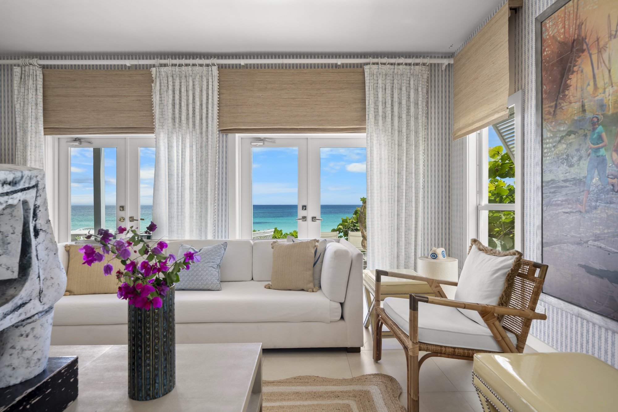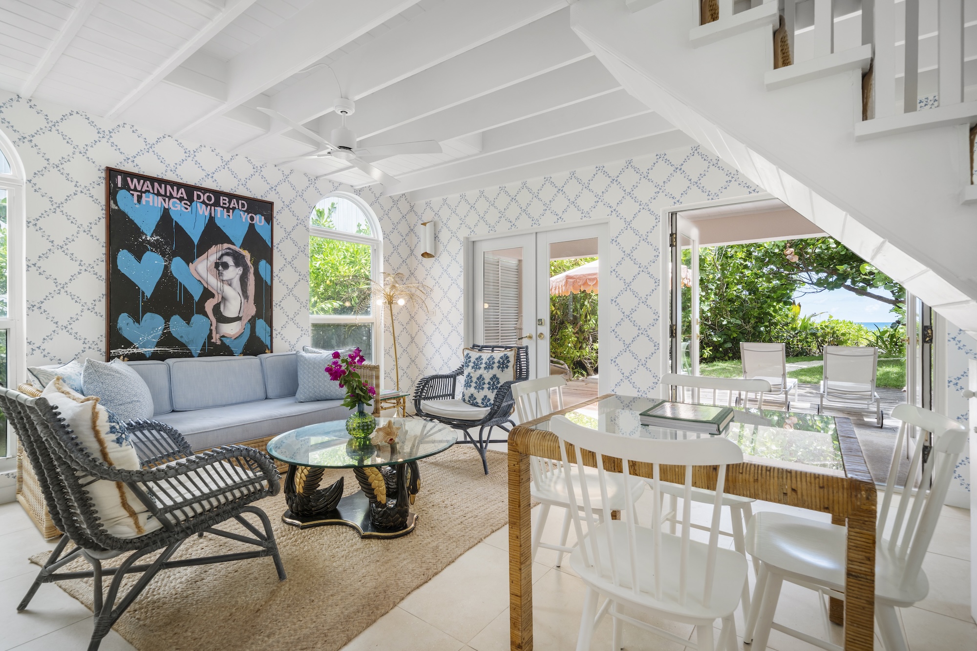 Nestled directly on the famous pink-sanded sweep of Pink Sands Beach, Sea Siren invites you into a world of refined island luxury — where elegance, comfort and seclusion blend seamlessly with sea, sand and turquoise water. The estate comprises a main house (4 bedrooms, 3 baths) plus a separate guest cottage (2 bedrooms, 2 baths), accommodating up to 12 guests. Interiors are thoughtfully curated: furnishings by iconic mid-century designers (e.g. Karl Springer, Curtis Jere, Vladimir Kagan), vintage rattan touches, and contemporary art from the owner’s private collection. Sleep in comfort on plush 300-thread-count linens. Kitchens are fully equipped with modern appliances; indoor and outdoor dining / living spaces offer flexibility for both relaxed and formal gatherings.