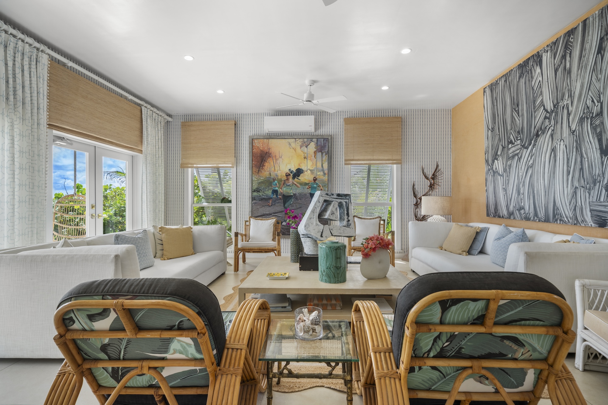Nestled directly on the famous pink-sanded sweep of Pink Sands Beach, Sea Siren invites you into a world of refined island luxury — where elegance, comfort and seclusion blend seamlessly with sea, sand and turquoise water. The estate comprises a main house (4 bedrooms, 3 baths) plus a separate guest cottage (2 bedrooms, 2 baths), accommodating up to 12 guests. Interiors are thoughtfully curated: furnishings by iconic mid-century designers (e.g. Karl Springer, Curtis Jere, Vladimir Kagan), vintage rattan touches, and contemporary art from the owner’s private collection. Sleep in comfort on plush 300-thread-count linens. Kitchens are fully equipped with modern appliances; indoor and outdoor dining / living spaces offer flexibility for both relaxed and formal gatherings.