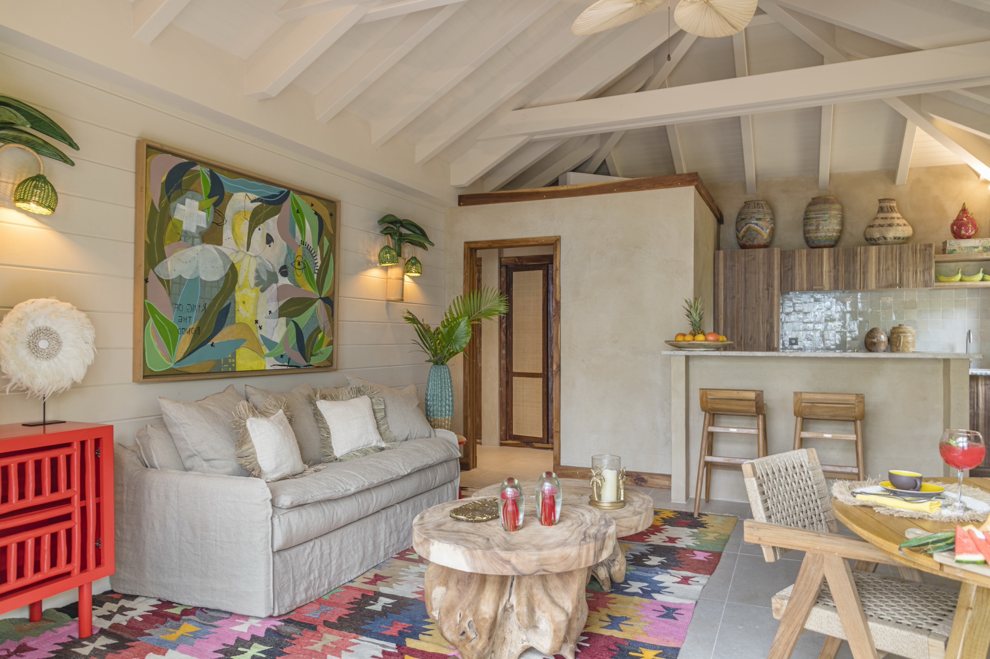 The single-story villa comprises one spacious bedroom with an en-suite bathroom, all adorned in the warm and inviting style characteristic of the Caribbean, ensuring a refreshing change of ambiance.