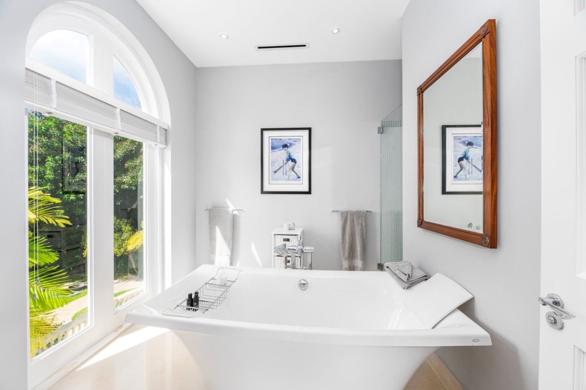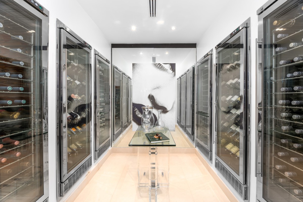 The property features internationally sourced statement pieces and an impressive range of facilities, including a cottage-sized wine room, cinema, spa, multi-level gym, and private tennis court.