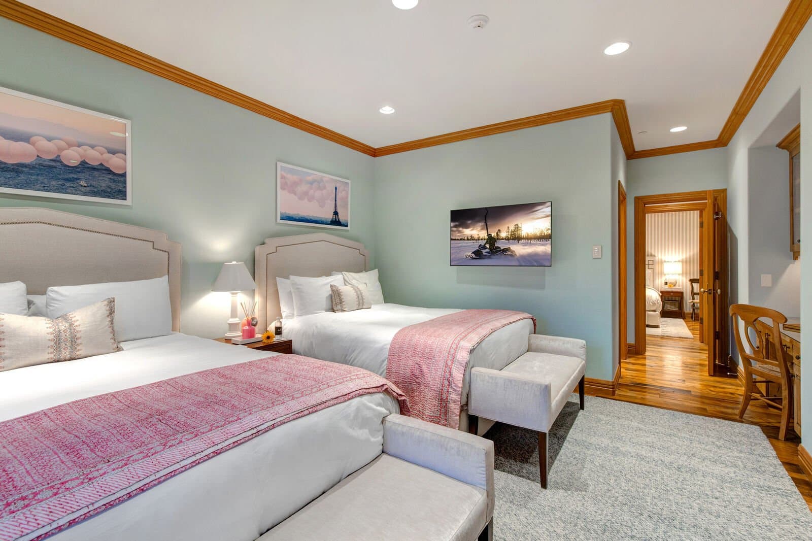 The slopes in the distance are tempting at all hours of the day and all times of the year, from just about every room in the house – though the comfort and amenities of this home make it just as desirable to spend the nights in! Five of the well-appointed bedrooms are located on the lower level. Another two are in an upstairs wing of the home – ideal for the kids to call home with cozy bean bag chairs and gaming console! Finally, you’ll find the expansive master suite in it’s own upstairs wing of the home – boasting a king bed, gas fireplace, vaulted ceilings with built in audio, a sprawling spa-like bathroom with large walk-in closet, and of course – those Bald Eagle views!! – from your private balcony.
