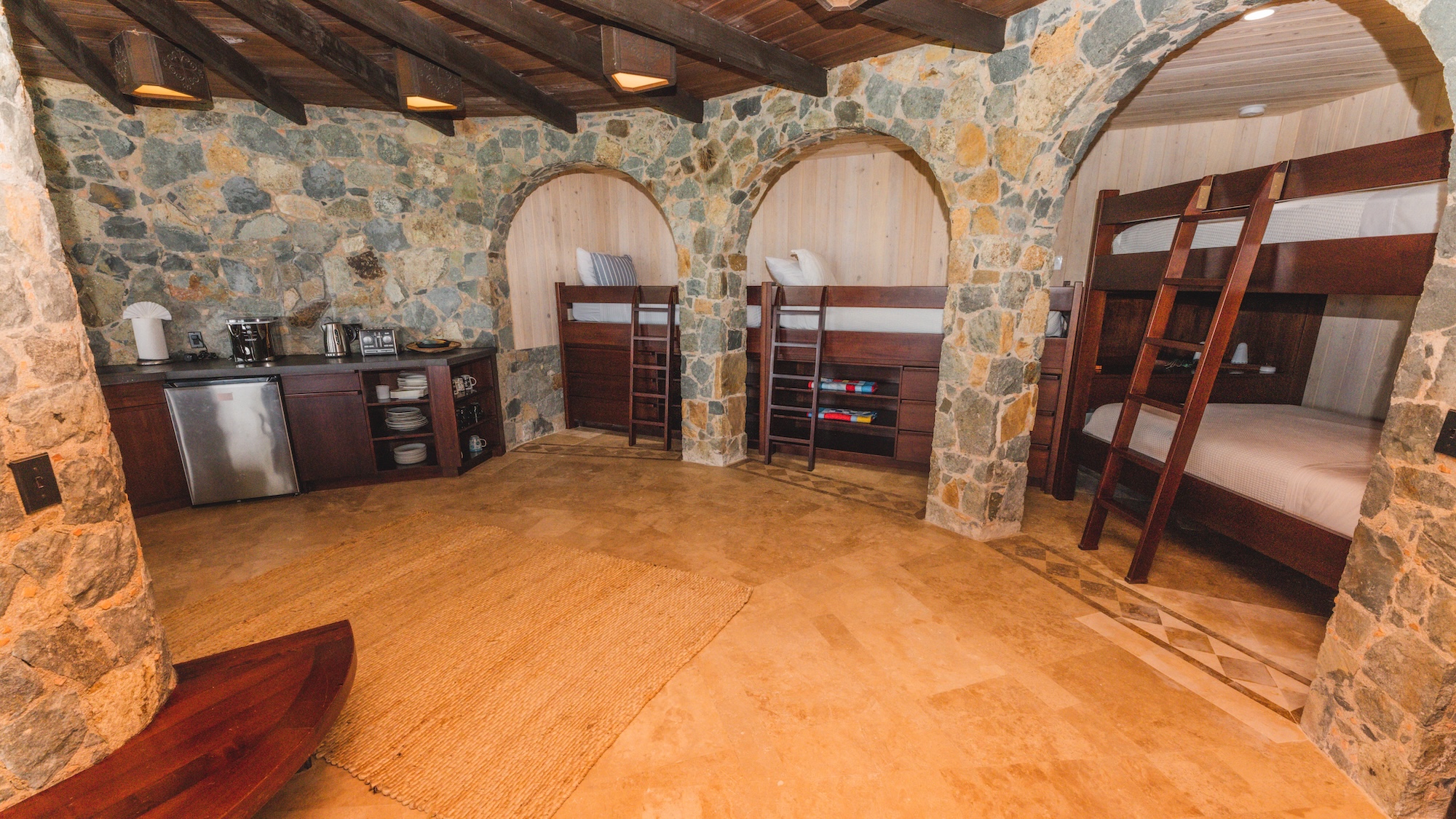 he villa features five air-conditioned bedroom suites—each with a king bed—plus a custom bunk room designed to sleep up to six children comfortably, making it ideal for large families or multi-generational gatherings.