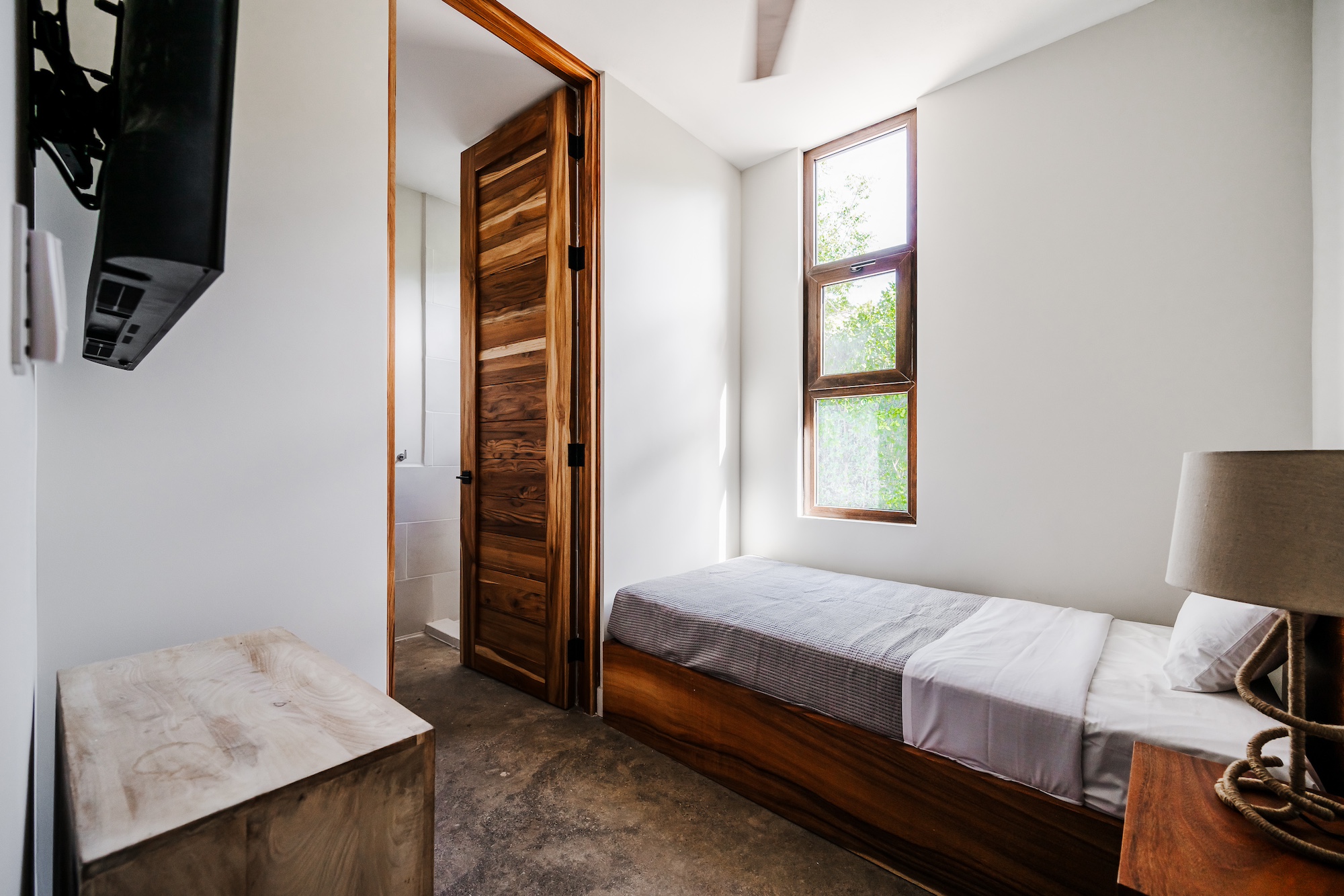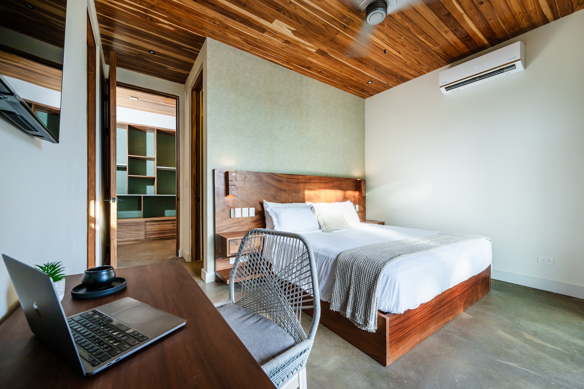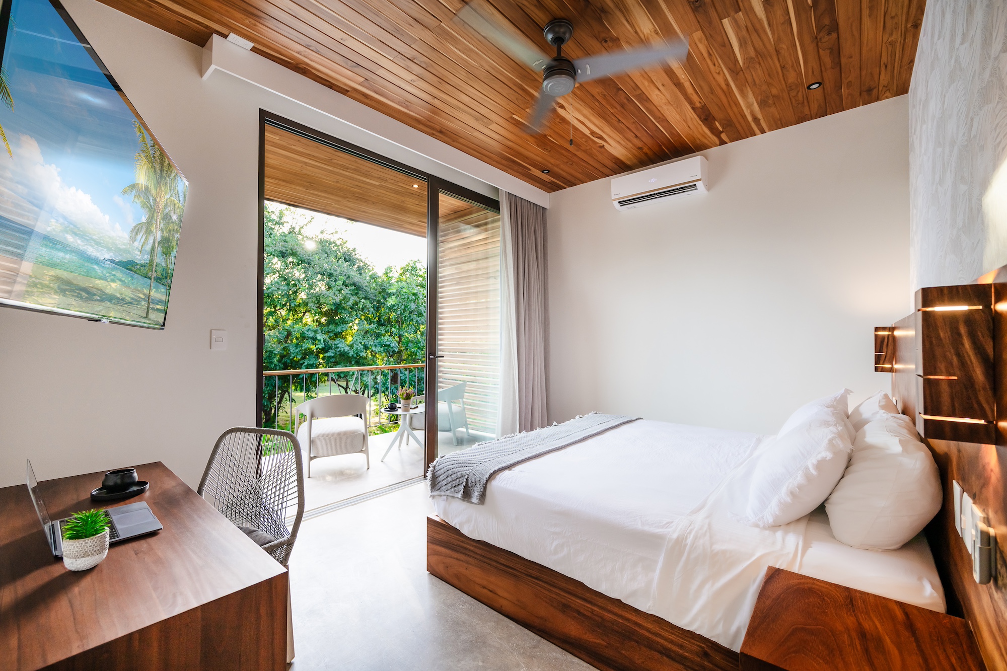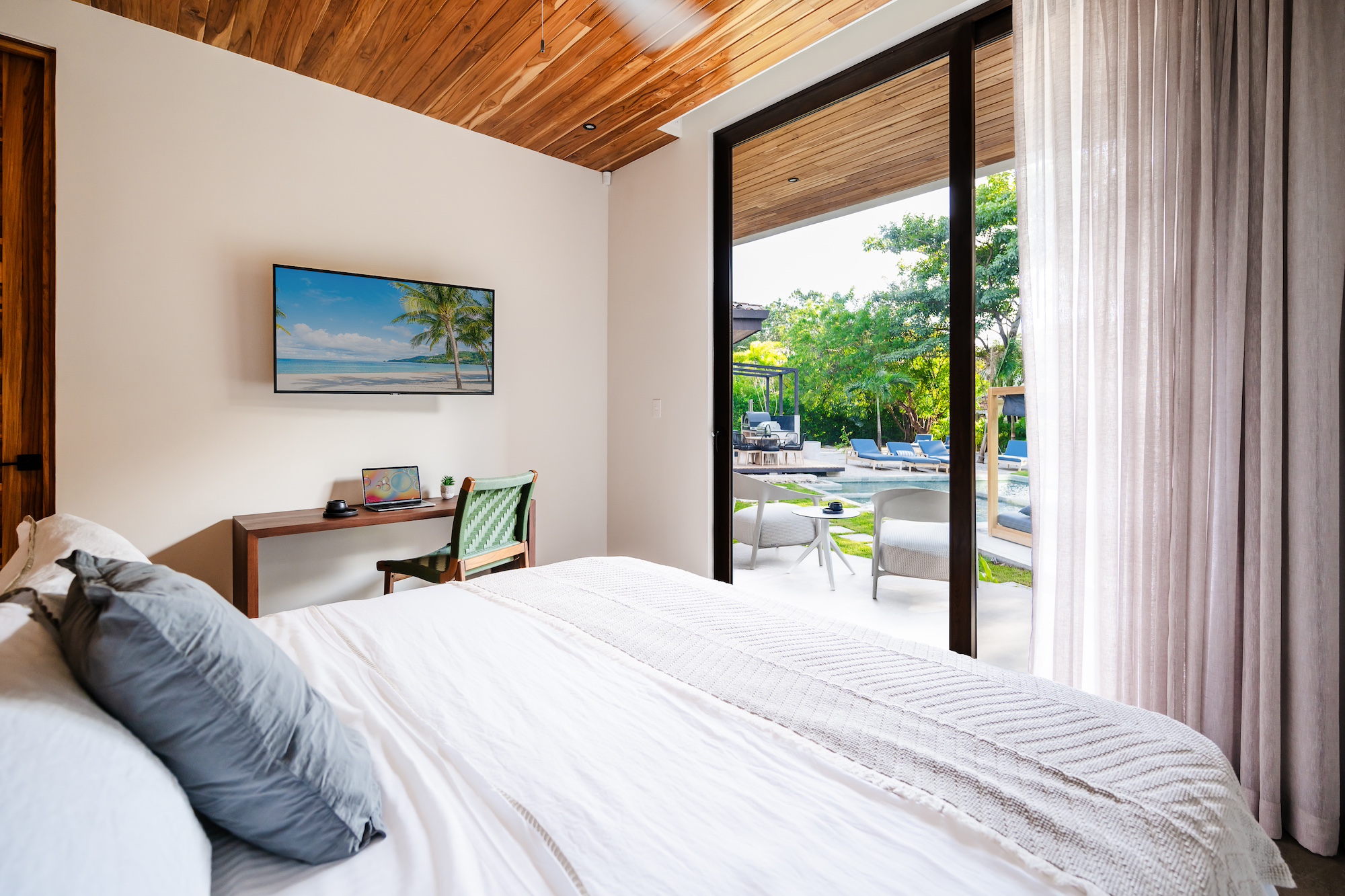 The excellence does not end there. Each master bedroom offers a stunning pool view and includes its own balcony or mini terrace. Imagine waking up, sliding open the door, and being greeted by a serene paradise right outside your room. For the younger guests, the children’s bedroom is essentially a playroom: featuring three bunk beds, a mini climbing wall, and a mezzanine, it is designed for the ultimate sleepover adventures.