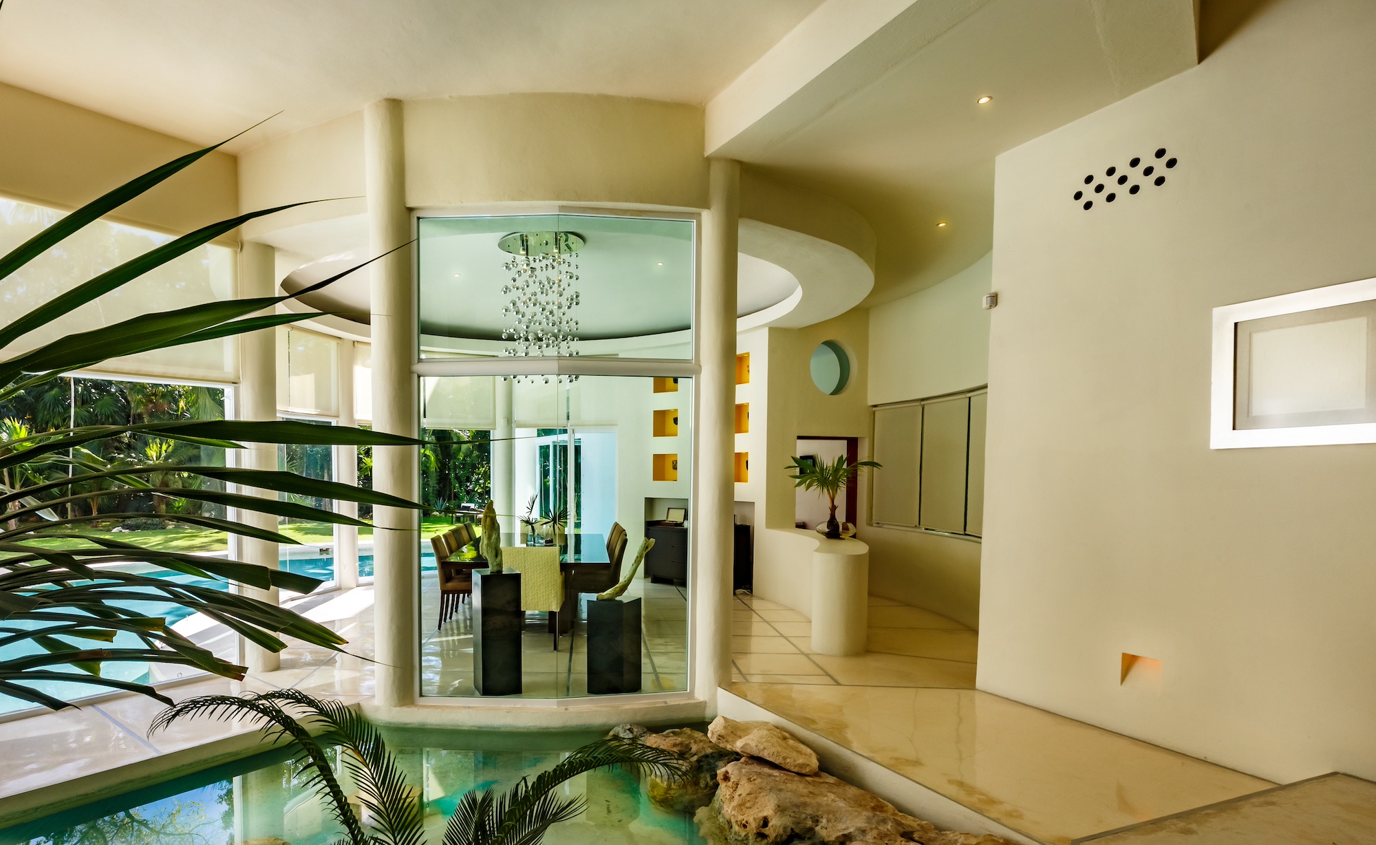 Brimming with personality at every turn, this five-bedroom villa in Playa del Carmen transforms playful design into a full sensory experience—think indoor palms, a wood-fired oven, a squash court, and a sunken lounge that makes unwinding feel effortless.