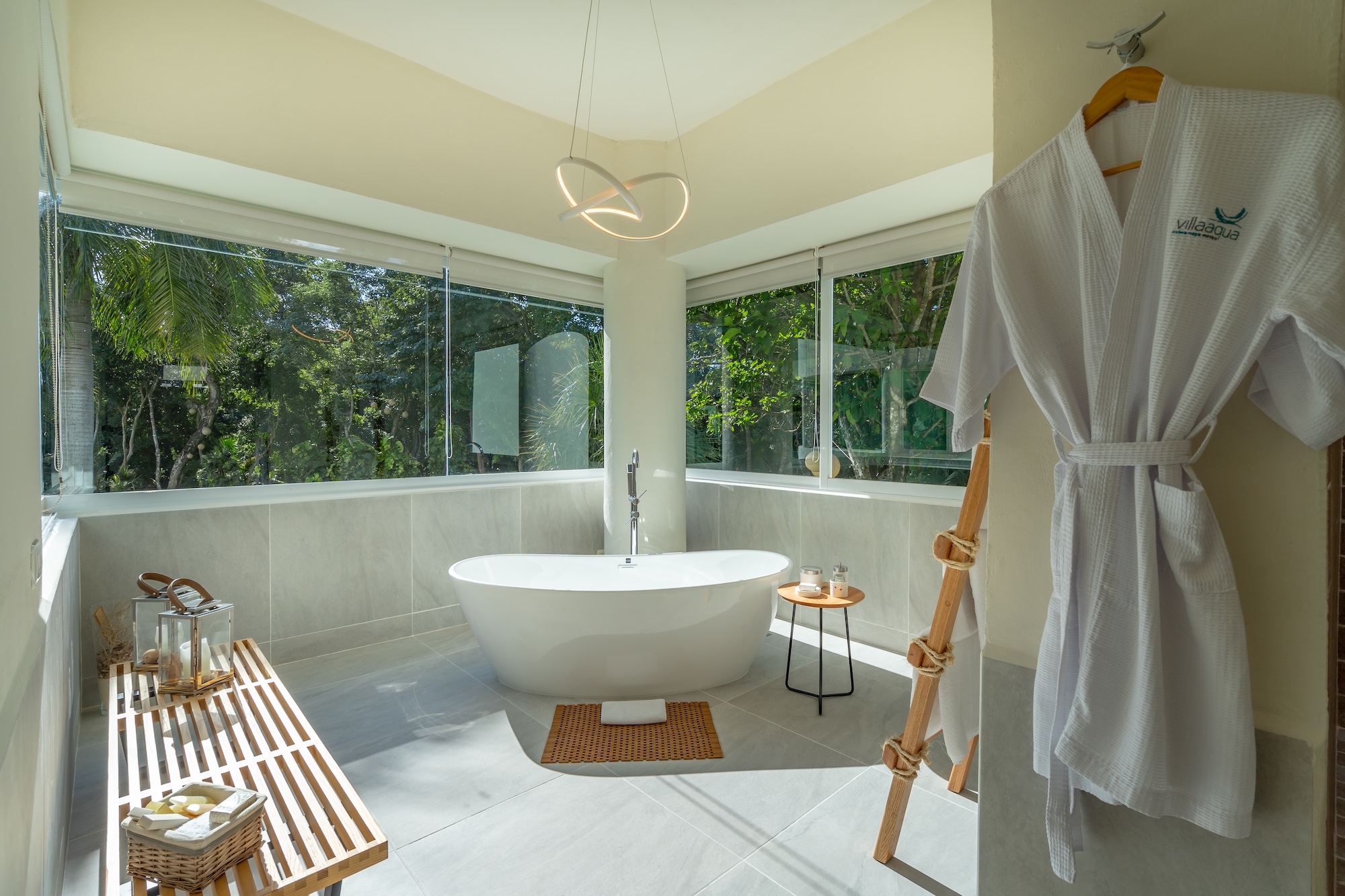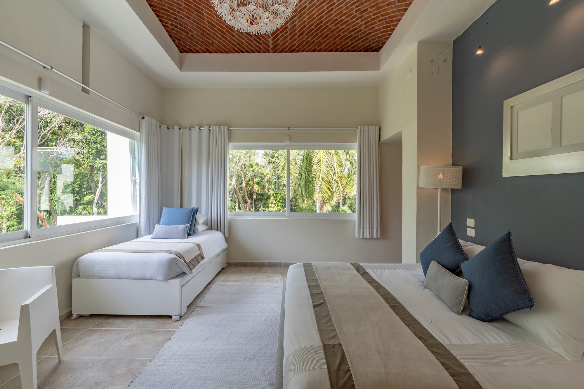 Each bedroom offers generous space and en-suite privacy, with the primary suite featuring a standalone soaking tub. Set within Playacar—Playa del Carmen’s most prestigious neighborhood—the villa is just a 15-minute stroll from both the beach and bustling Quinta Avenida. Villa Aqua delivers a private, joy-filled escape for guests looking for a stay that’s anything but ordinary.