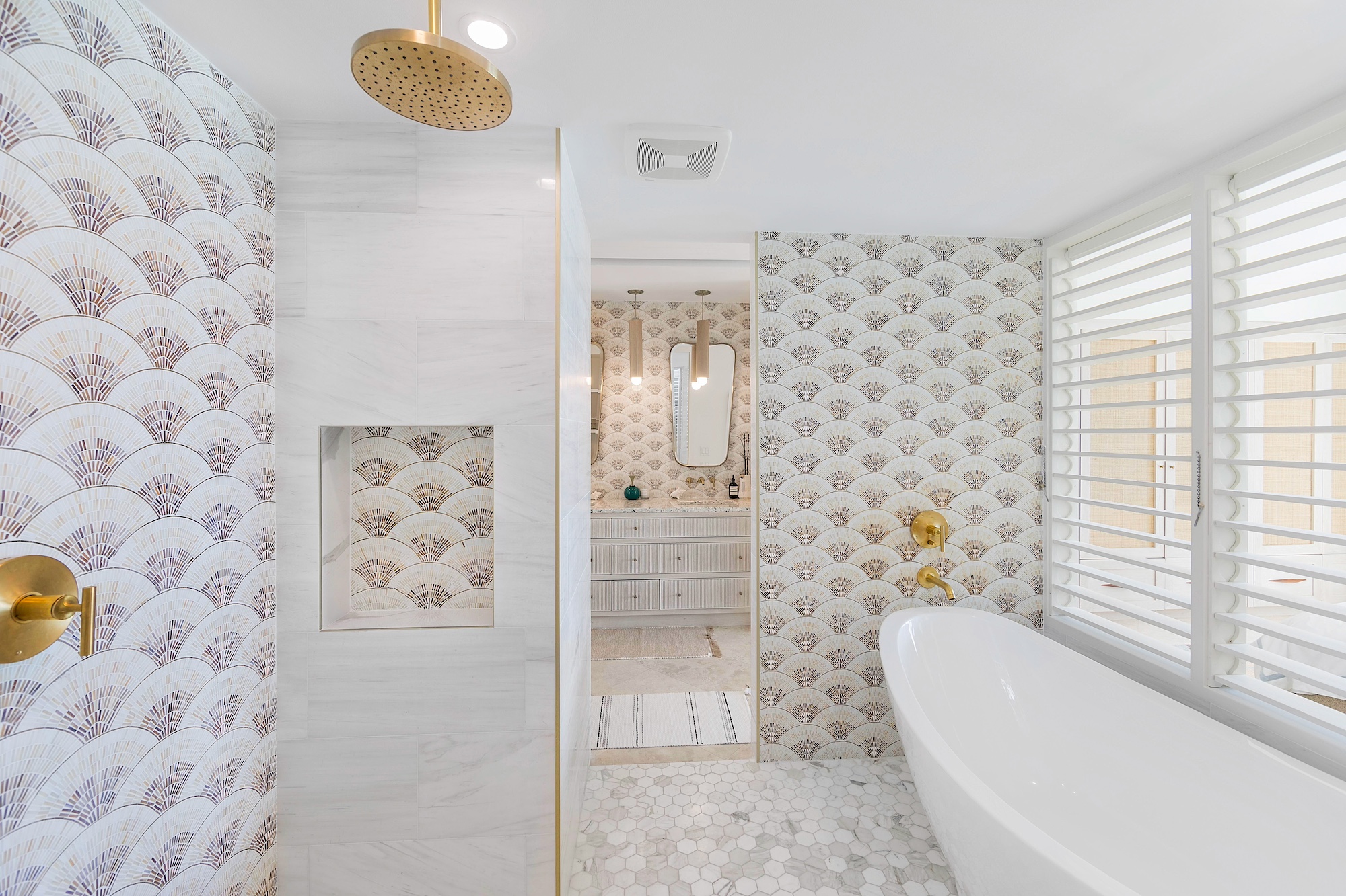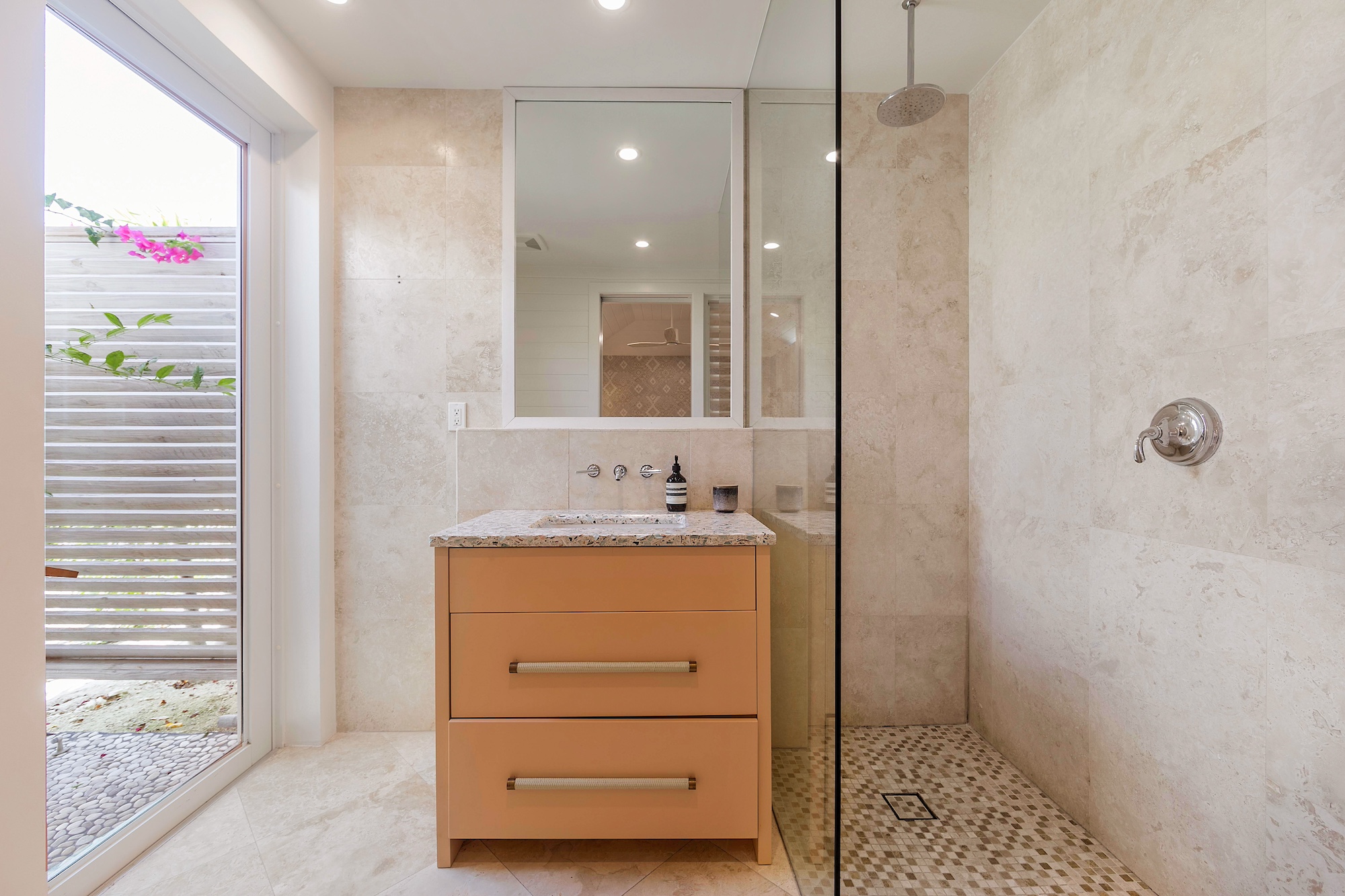 • Primary: front ocean view, ceiling fan, ensuite bathroom with bathtub and outdoor shower.