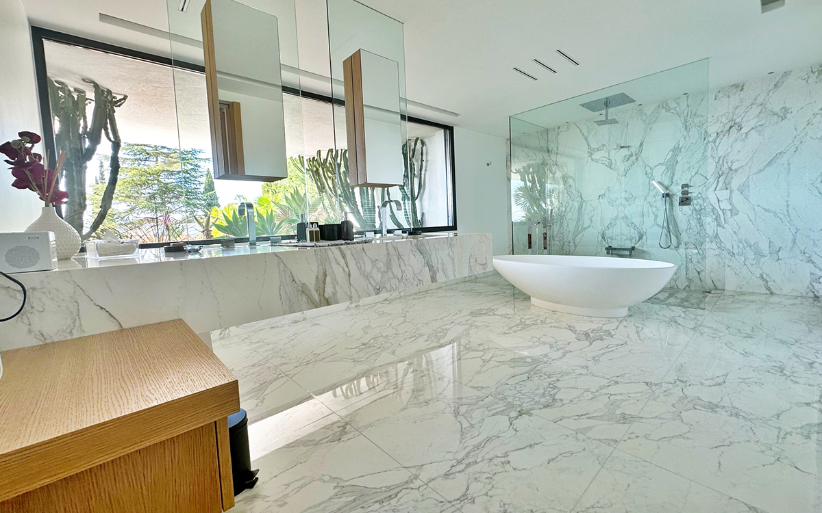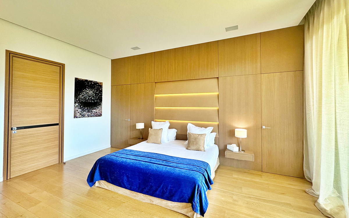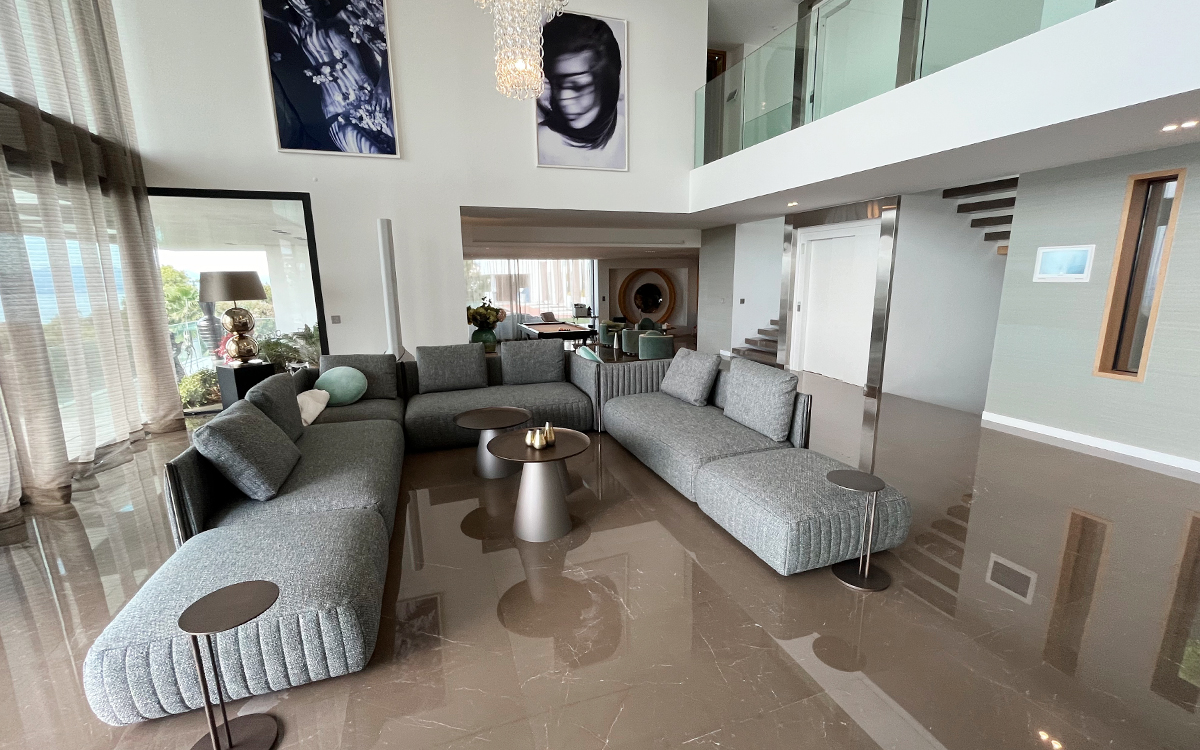 Full-length glass doors seamlessly connect indoor and outdoor living spaces, ensuring panoramic vistas of the Mediterranean and surrounding landscape from all three floors. Designed to evoke the elegance of a 5-star hotel, each of the eight ensuite bedrooms serves as a serene retreat.