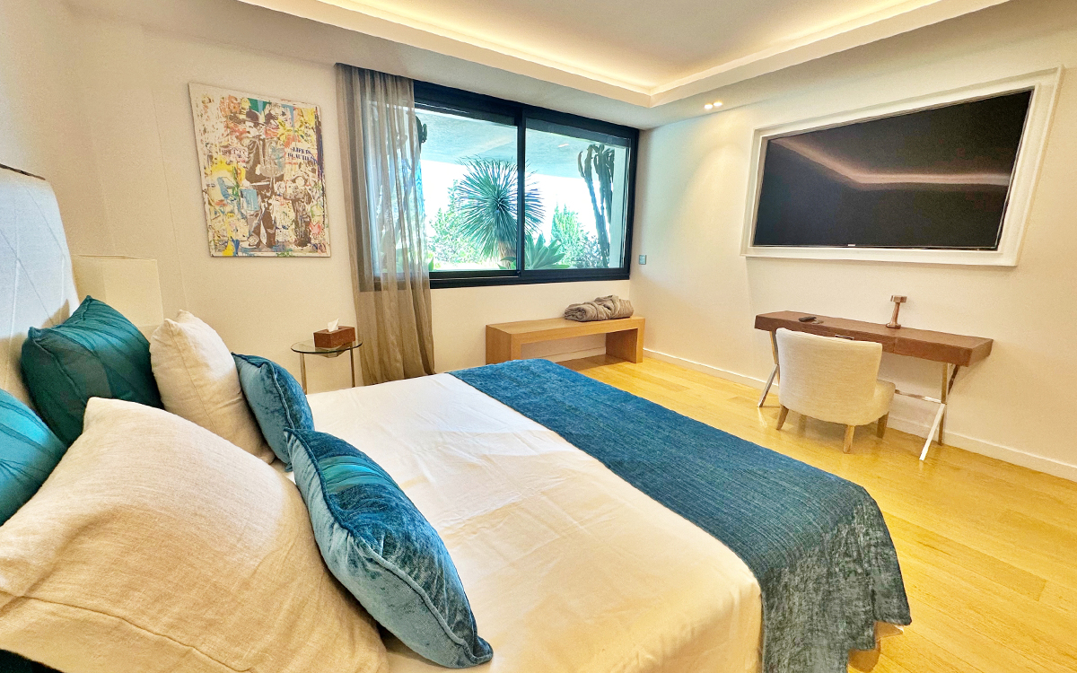 Spanning 1,400m² and set within expansive grounds, it offers unparalleled views of the Bay, Îles de Lérins, and the majestic Esterel Mountains. Impeccably designed with luxurious furnishings and top-tier homeware, the villa spares no expense in providing ultimate comfort.