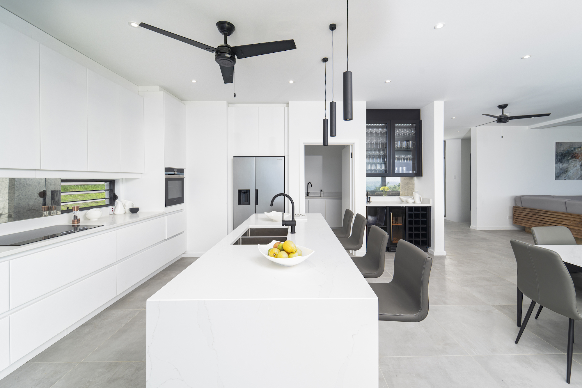 Accommodations within Villa Elan are exquisitely appointed, with all bedrooms featuring air conditioning and king-size beds. Two ground-floor bedrooms offer the flexibility of converting the king beds into twin-sized configurations. Each bedroom is complemented by a spacious walk-in closet and an en-suite bathroom. For those seeking utmost privacy, the primary bedroom and two ground-floor bedrooms boast private terraces, providing an exclusive haven within the villa.