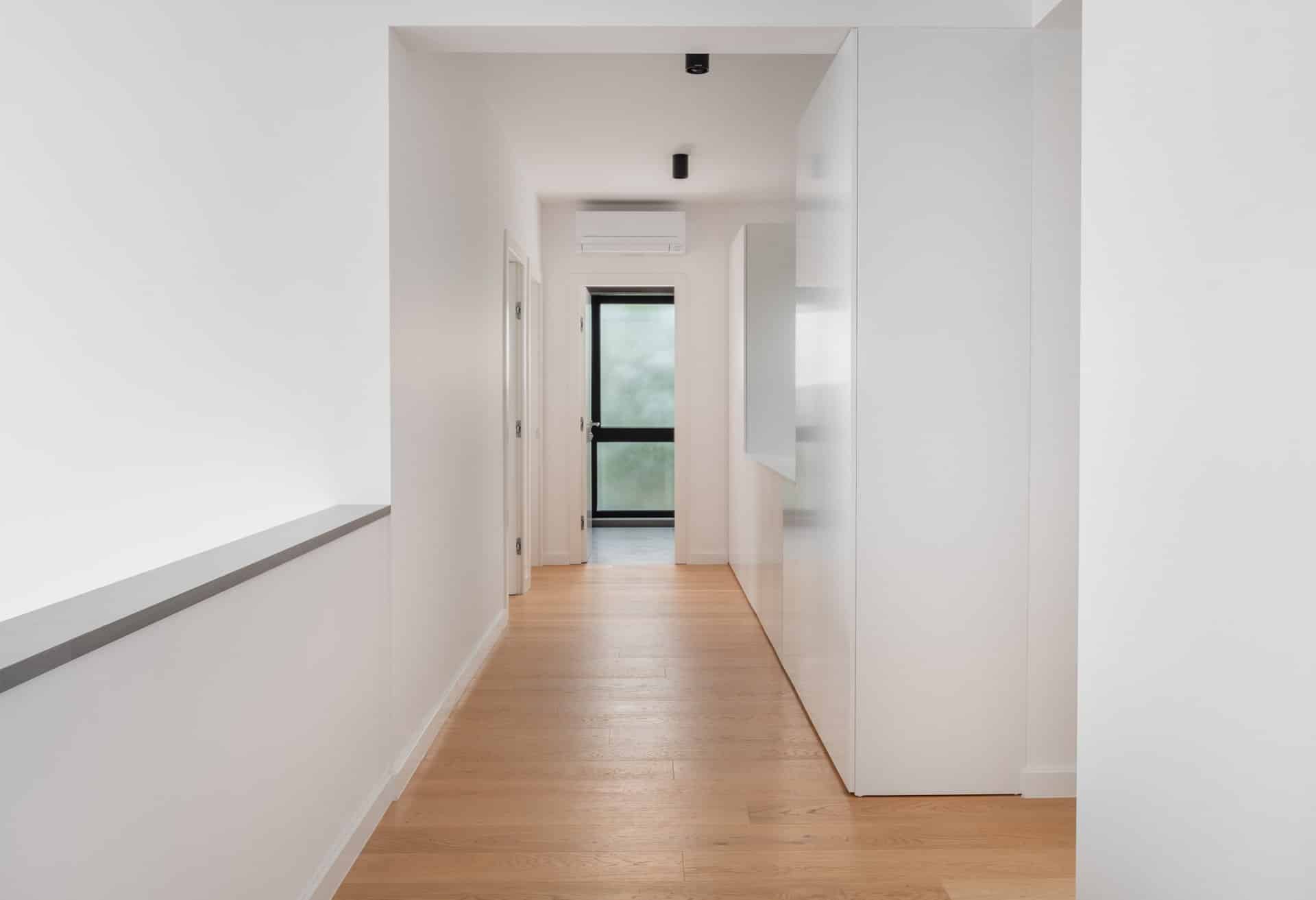 The wooden stairs lead upstairs. Here you will find a bathroom and three cozy bedrooms in neutral tones and with a balcony. The ground level of the house features a bathroom and another two bedrooms where the double bed can be separated into two twin beds. The fitness enthusiast will be thrilled to hear that this villa has a private gym. After your daily exercise, there is no better place than a sauna which is also right here.
