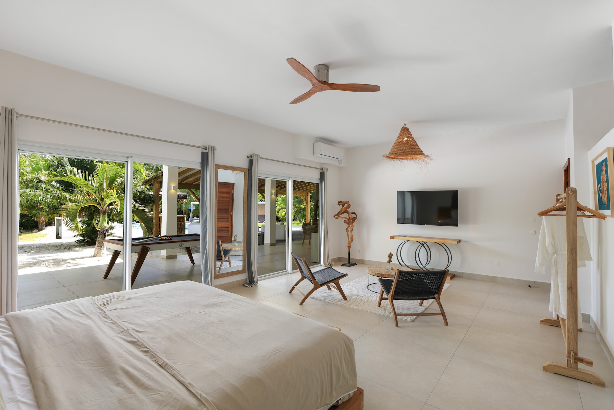 Blending Caribbean charm with contemporary design and a breezy beachside feel, this villa offers the perfect setting for an unforgettable island escape with family or friends. Generous, sunlit living spaces flow effortlessly onto the terraces, creating a seamless indoor-outdoor lifestyle. The inviting pool area, framed by lush tropical gardens, offers both sunny loungers and shaded daybeds—ideal for soaking up the warmth of the Caribbean or enjoying a peaceful afternoon nap beneath the palms.