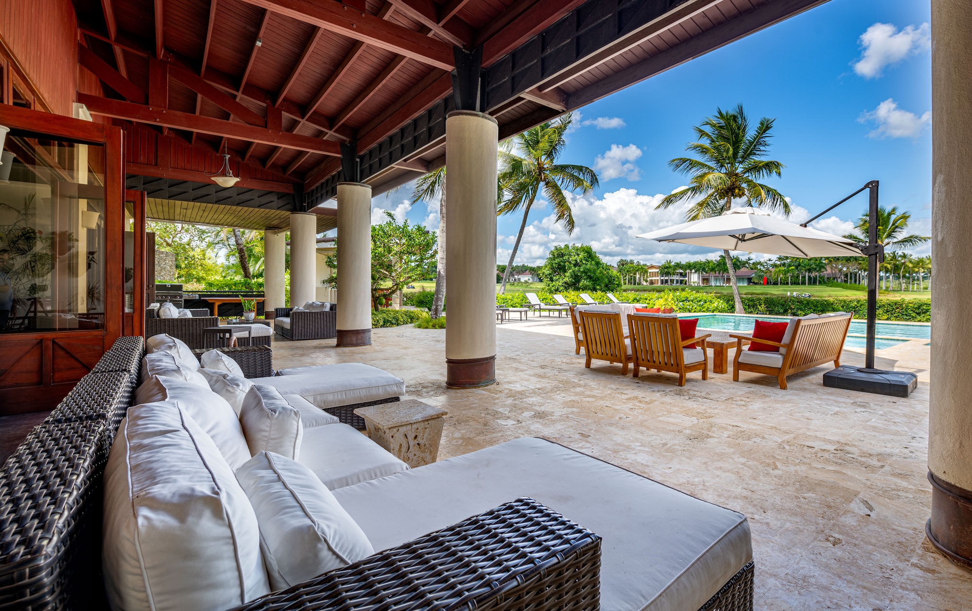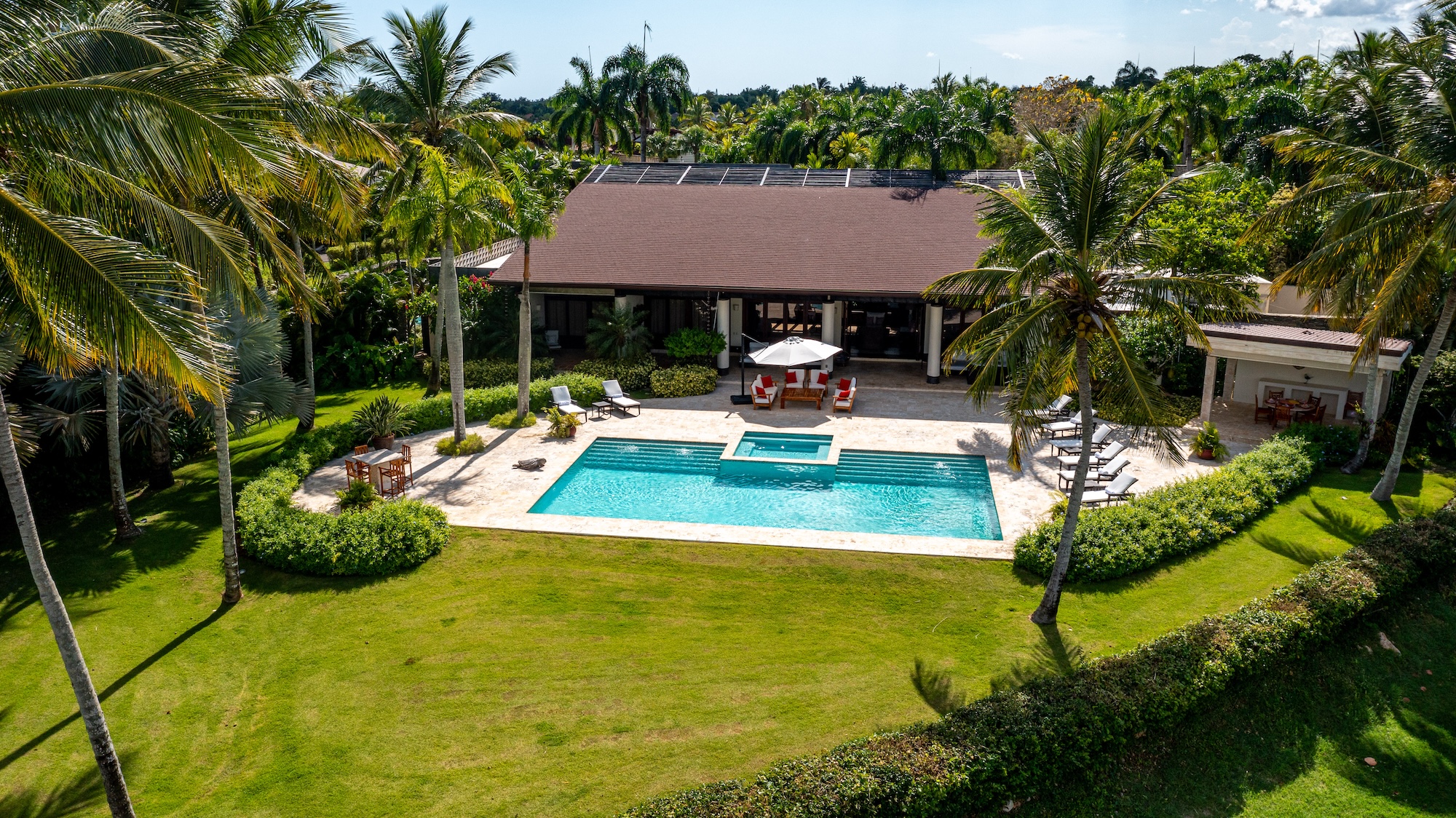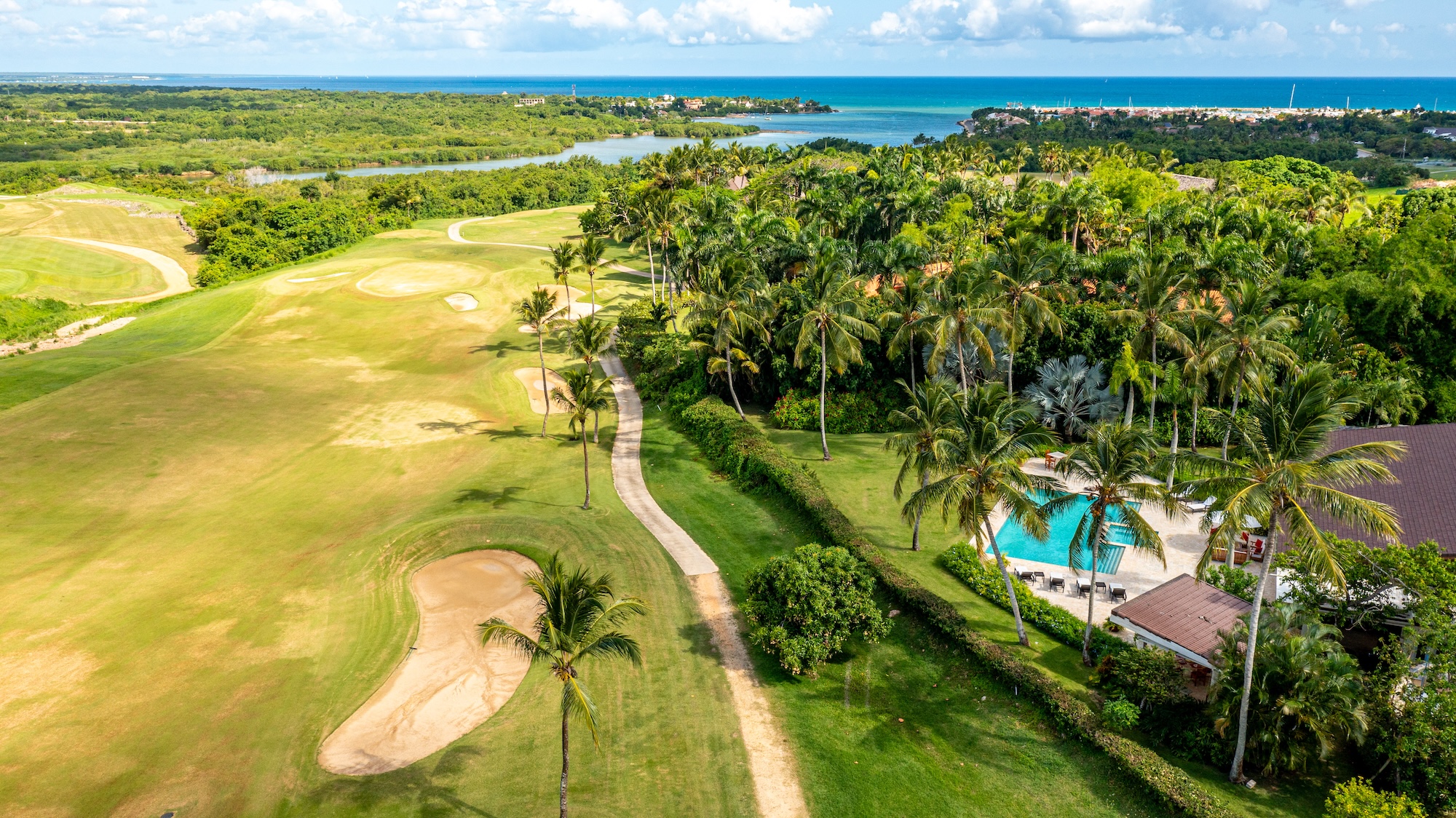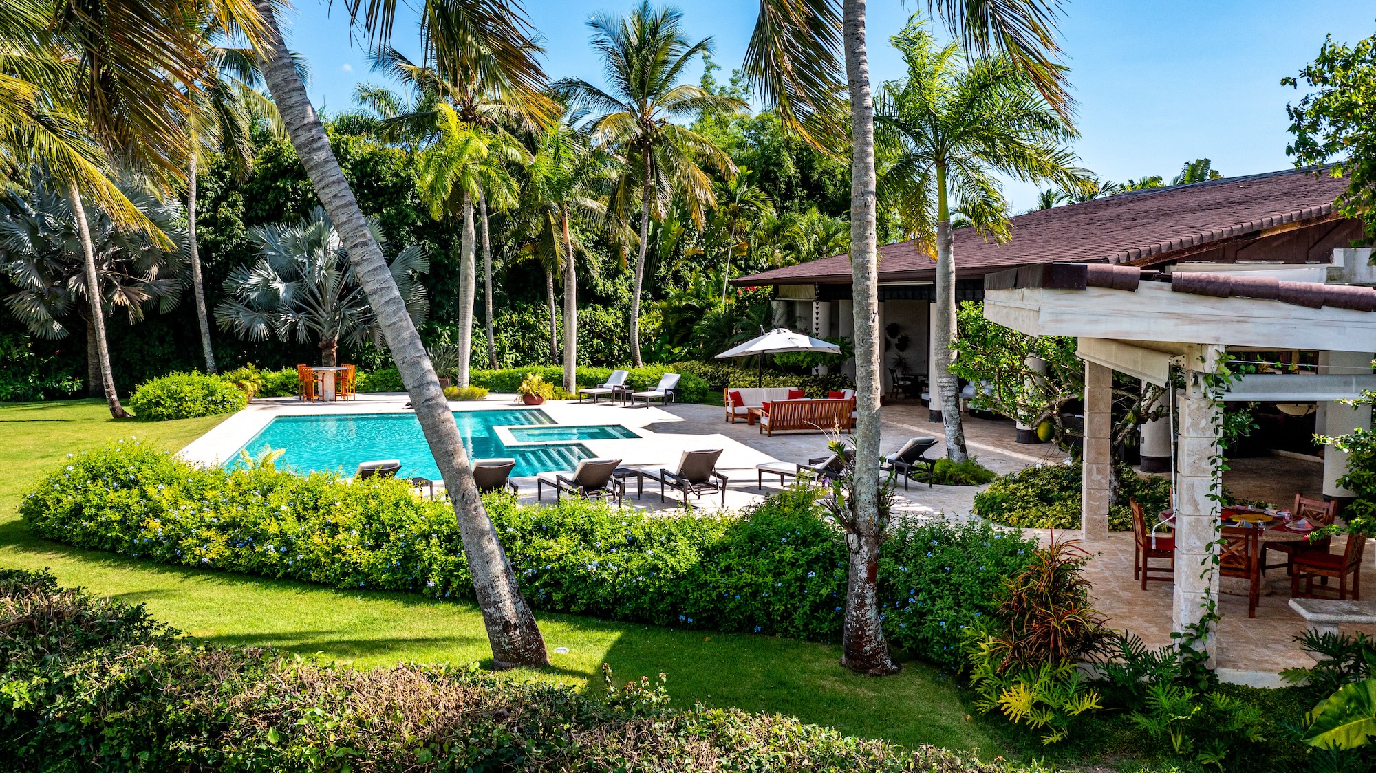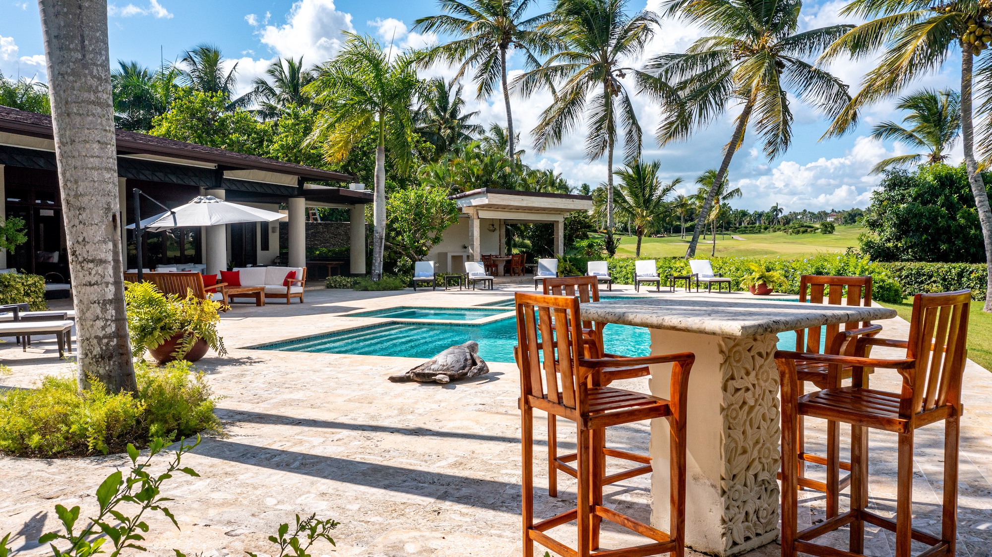 Lush tropical gardens surround the home, enhancing the sense of seclusion and natural beauty. A spacious porch, expansive terrace, and oversized pool with jacuzzi all overlook the first hole of the exclusive La Romana Country Club golf course. A charming gazebo offers the perfect retreat for yoga or an outdoor massage.