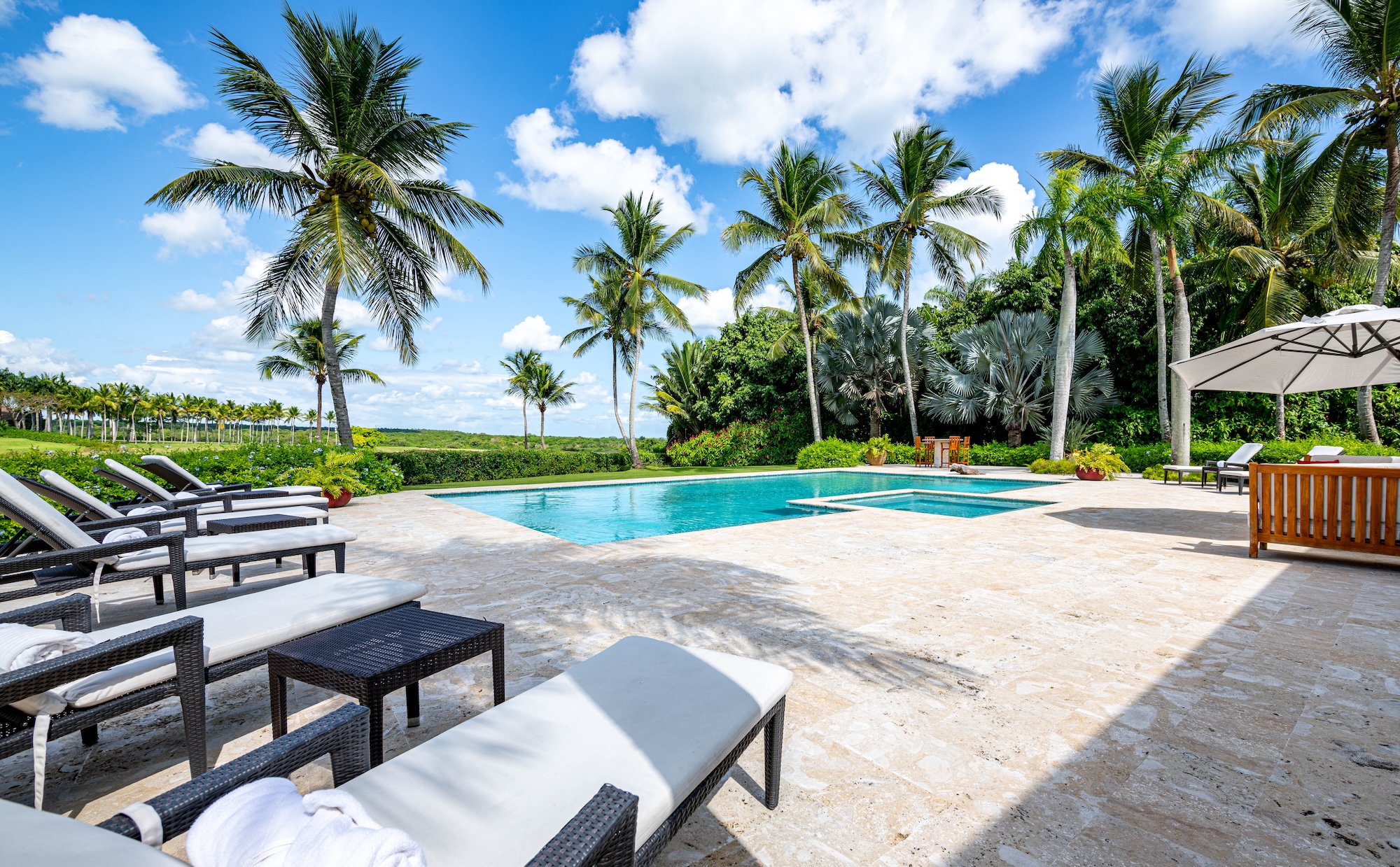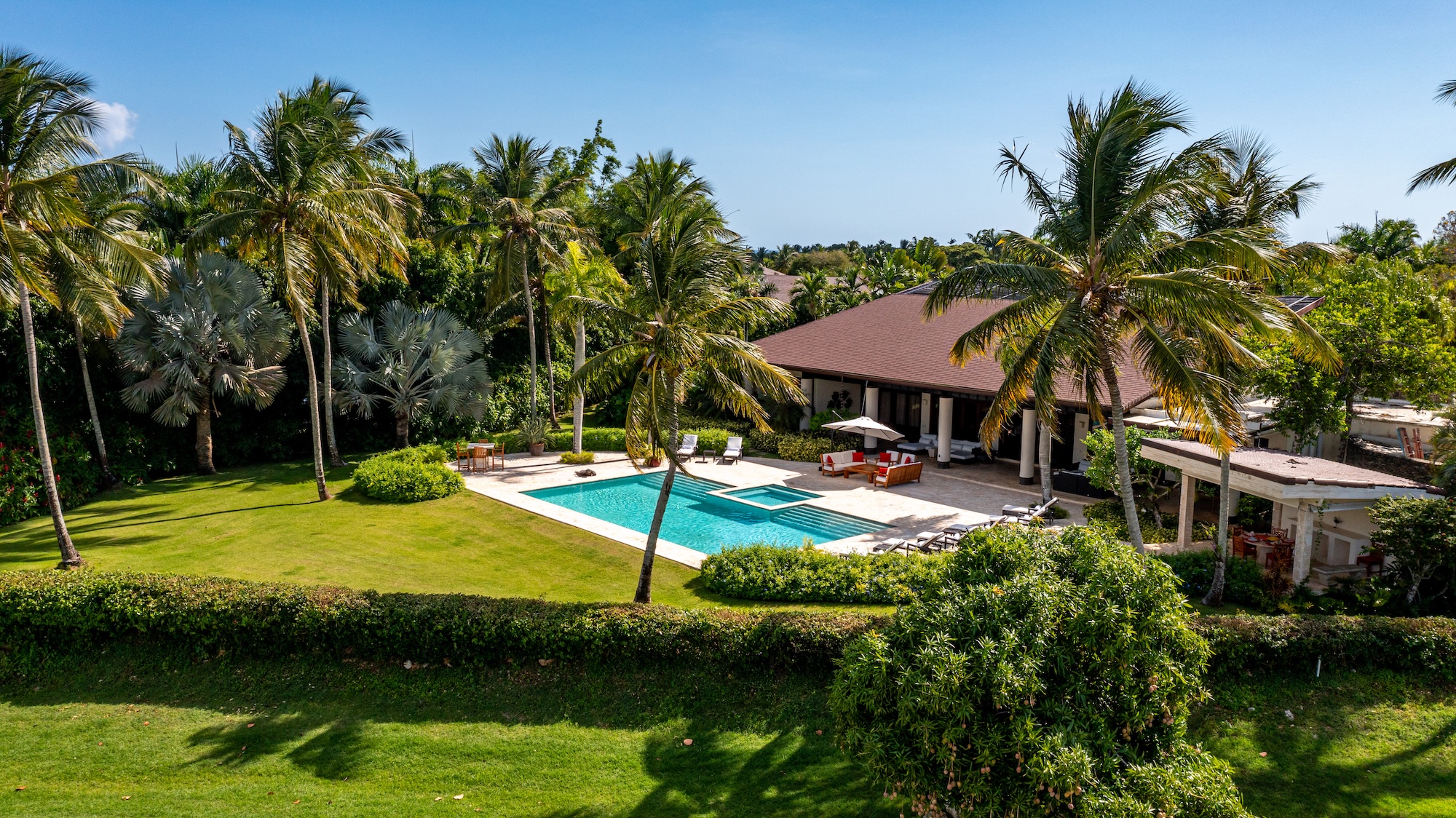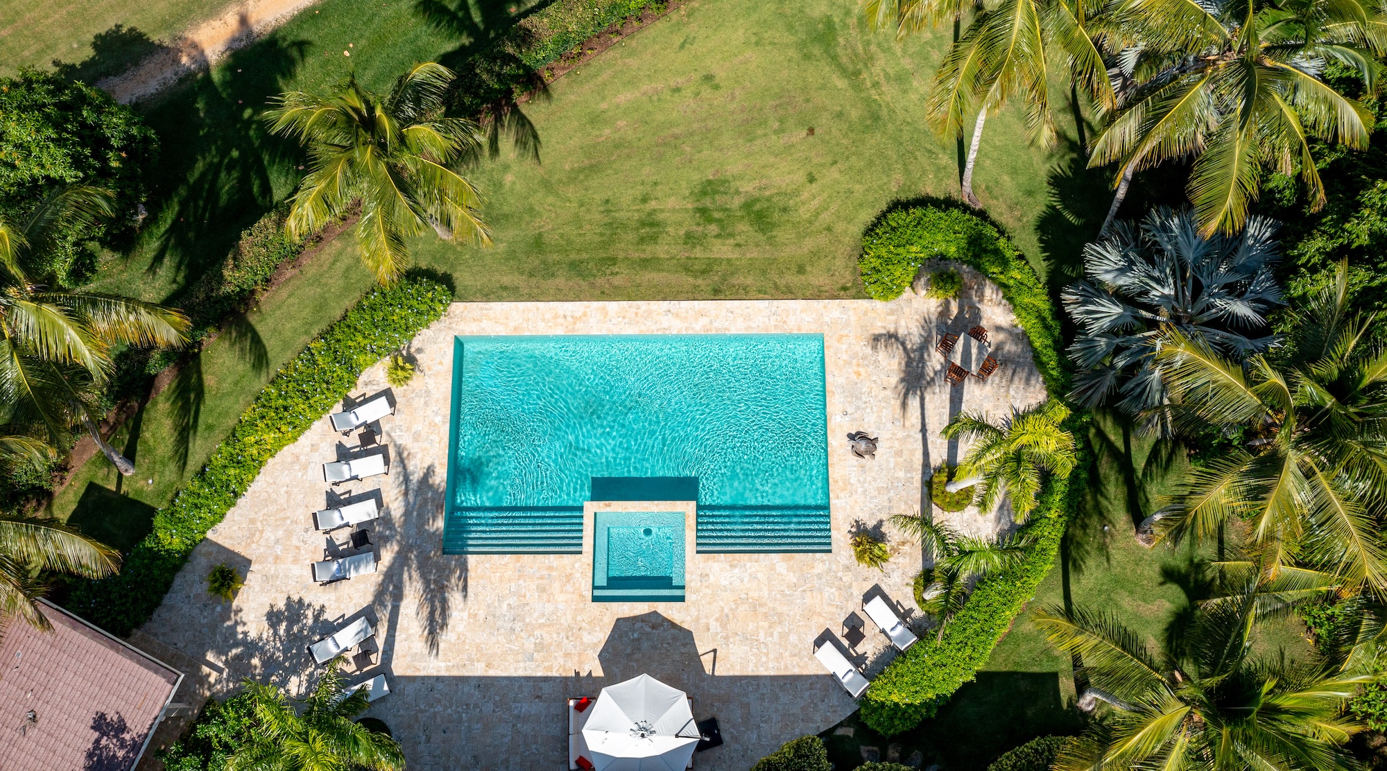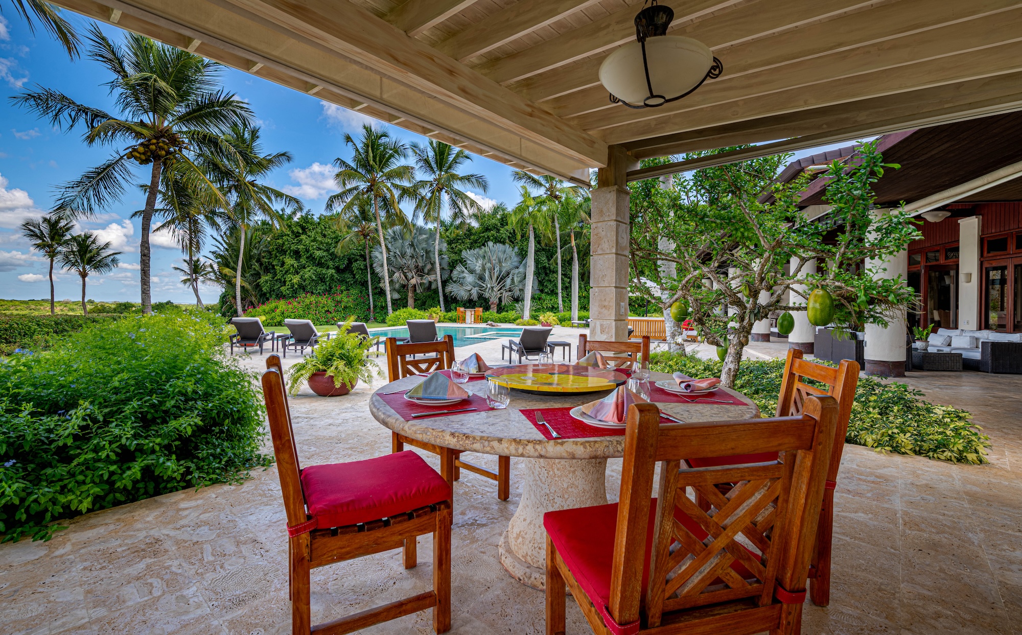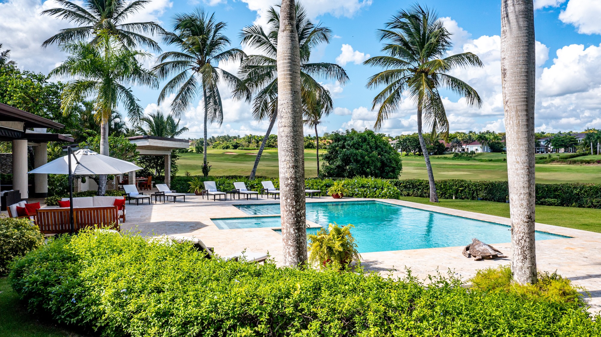 Lush tropical gardens surround the home, enhancing the sense of seclusion and natural beauty. A spacious porch, expansive terrace, and oversized pool with jacuzzi all overlook the first hole of the exclusive La Romana Country Club golf course. A charming gazebo offers the perfect retreat for yoga or an outdoor massage.