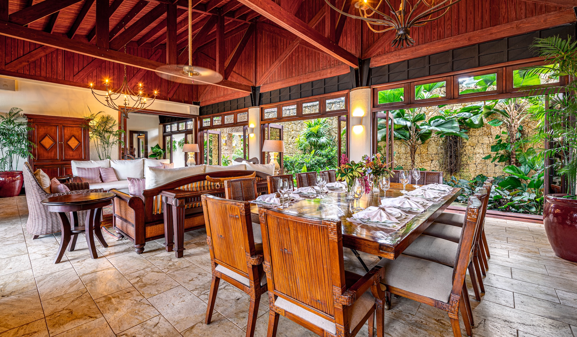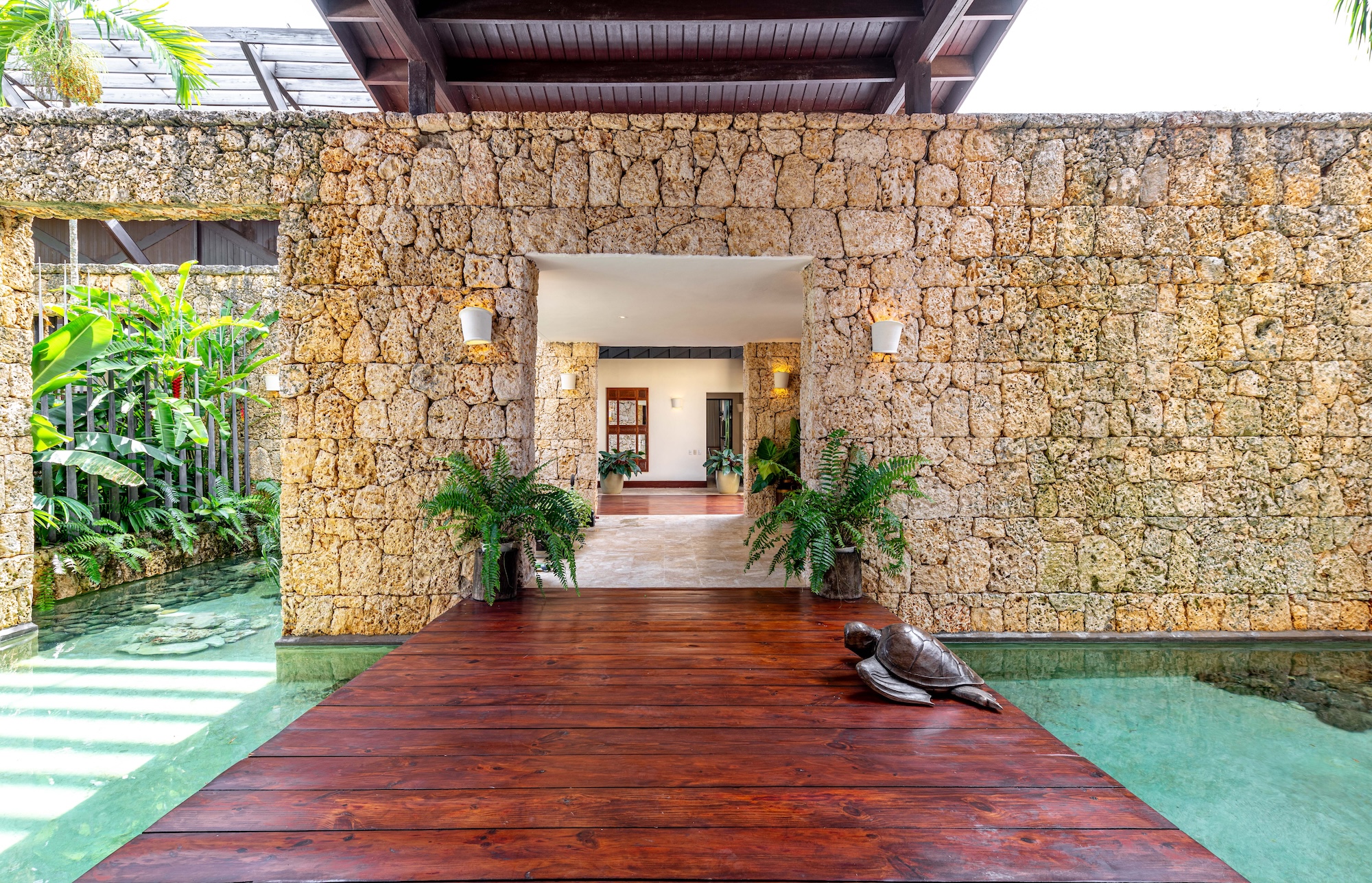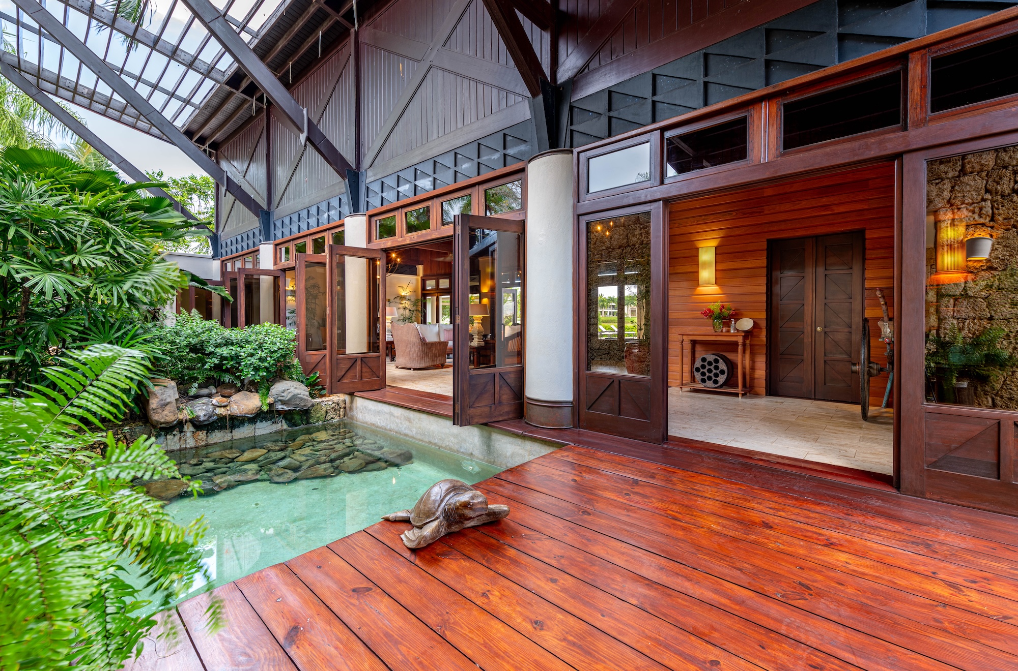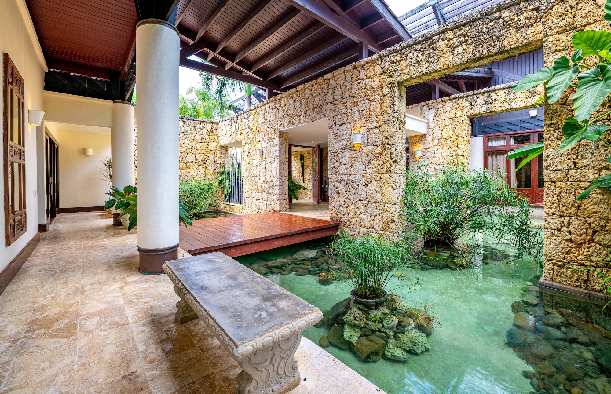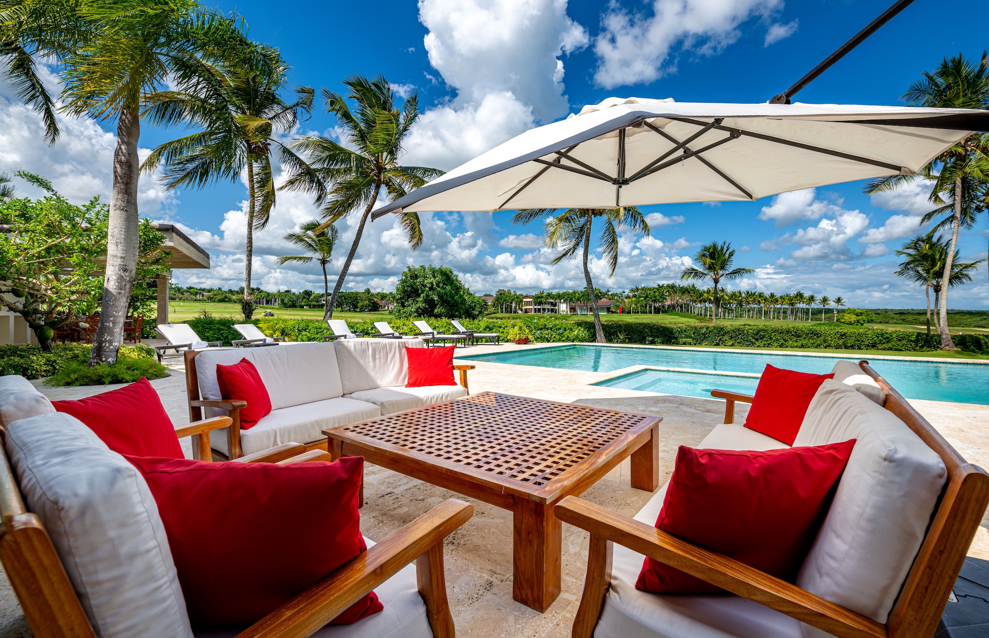 Lush tropical gardens surround the home, enhancing the sense of seclusion and natural beauty. A spacious porch, expansive terrace, and oversized pool with jacuzzi all overlook the first hole of the exclusive La Romana Country Club golf course. A charming gazebo offers the perfect retreat for yoga or an outdoor massage.