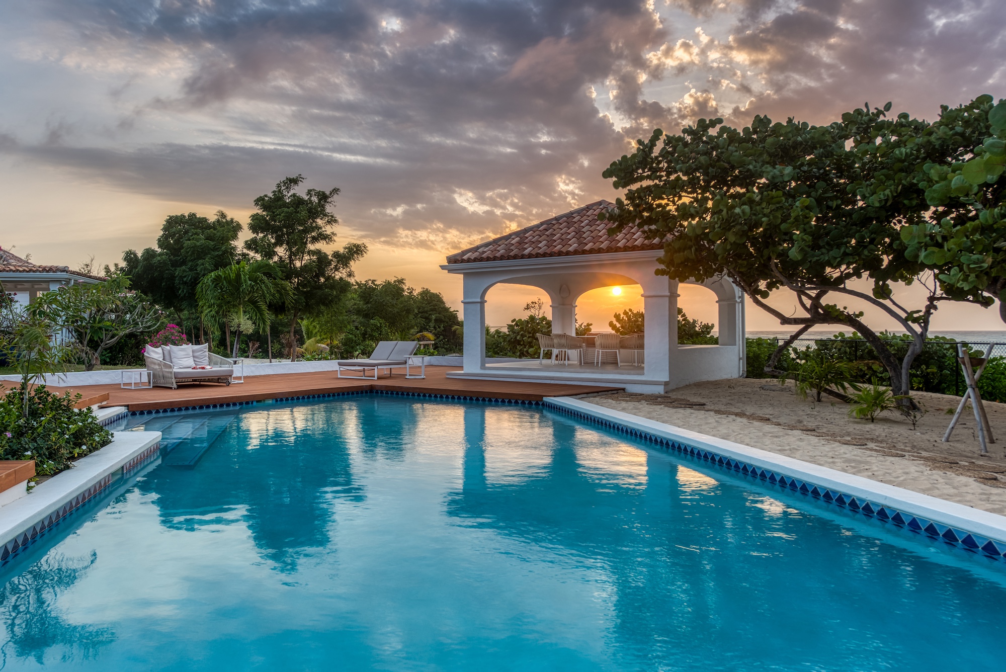 Discover the enchanting Villa La Riviera, an exquisite St. Martin villa rental boasting over 6 bedrooms, nestled on the captivating Plum Bay Beach. The villa showcases a charming outdoor terrace complemented by a spacious pool and a poolside gazebo, providing a picturesque vista of the beach. As an added luxury, relish in your private tennis court right on the sandy shore.
