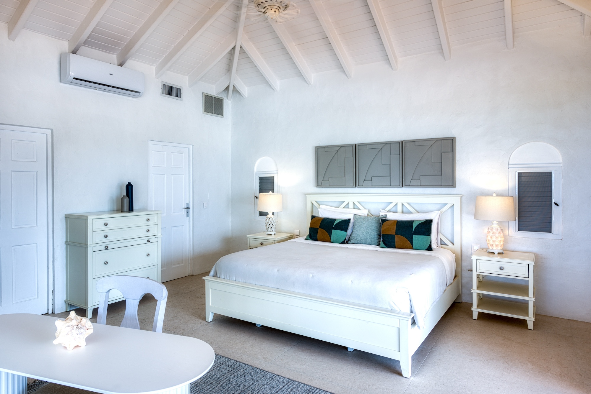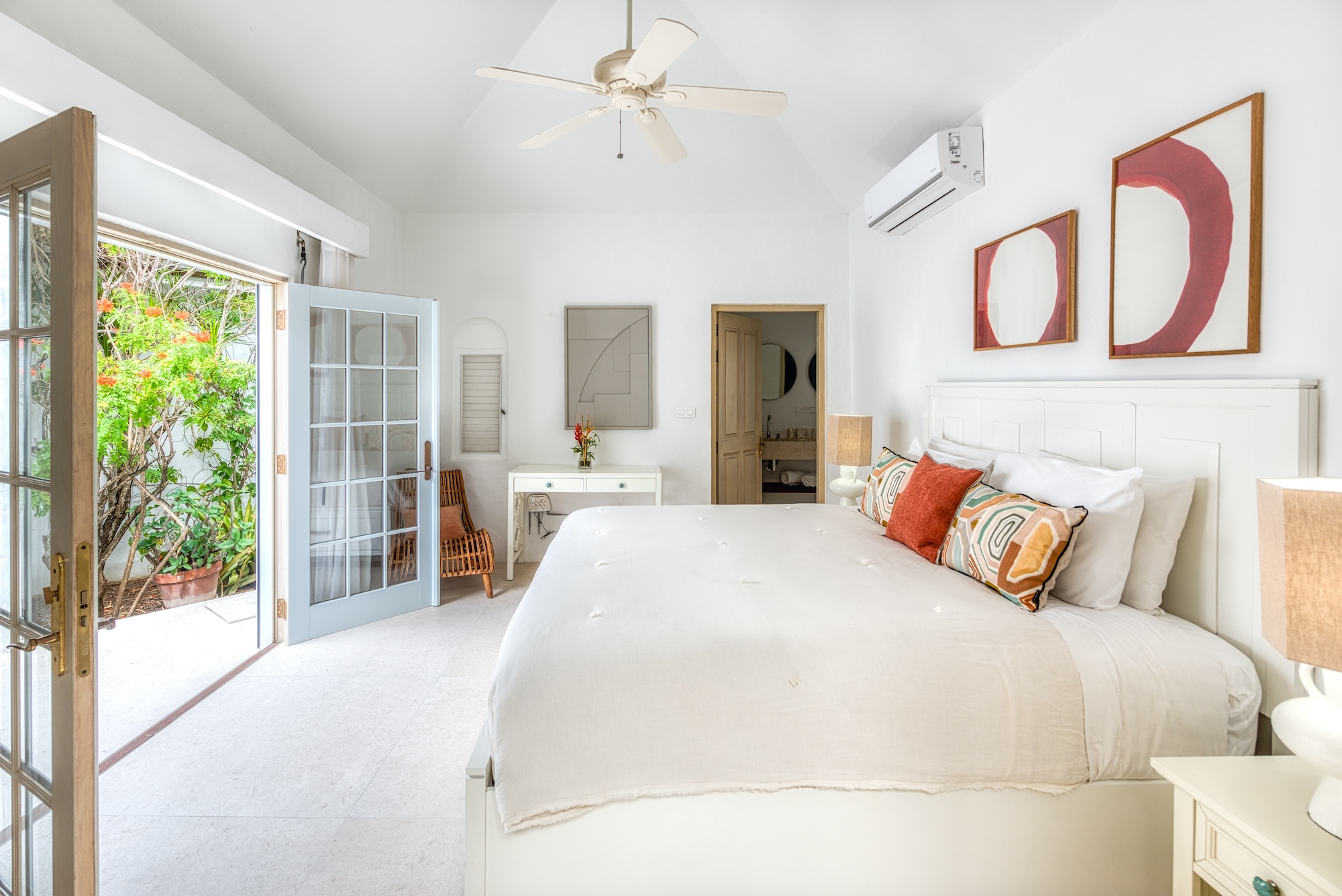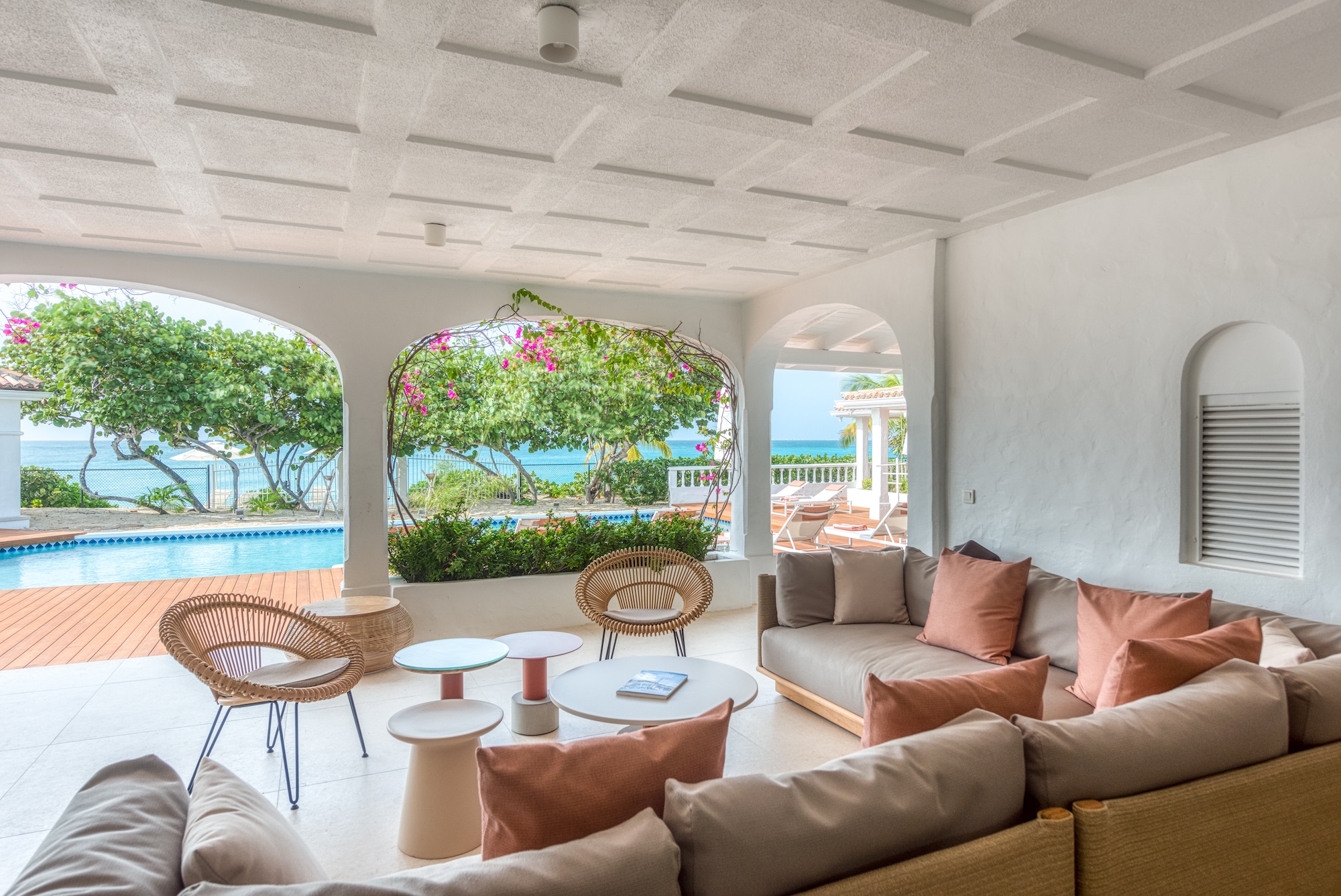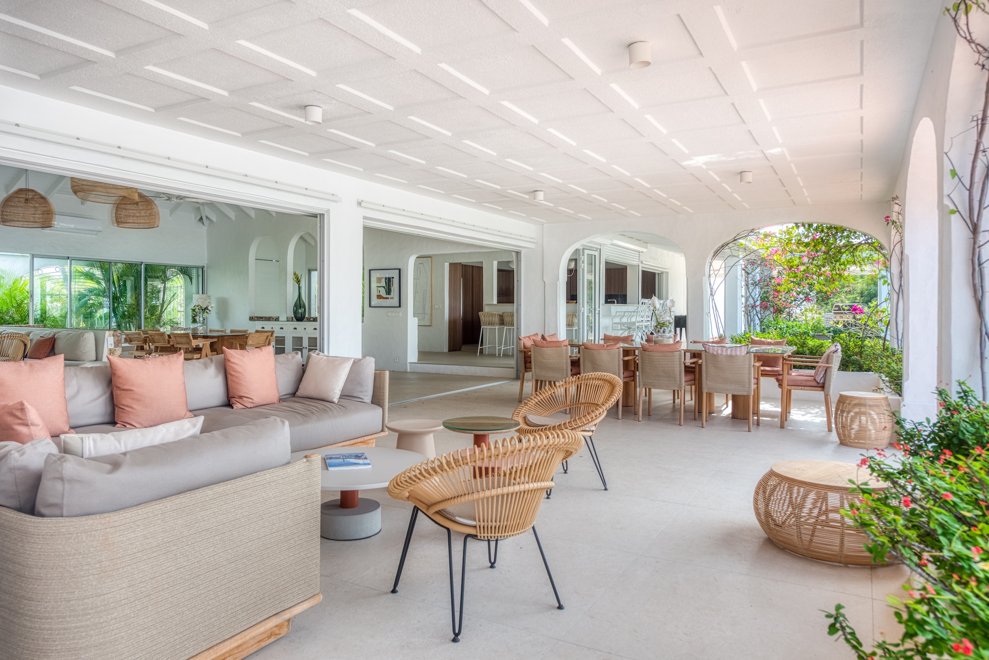 The expansive living and dining area, along with the well-appointed gourmet kitchen, seamlessly connect to the terrace, allowing you to bask in the mesmerizing ocean view. Each of the 6+ bedrooms in this Saint Martin villa rental features en-suite bathrooms and air-conditioning, opening onto the inviting pool terrace. Bedroom 2 even includes a cozy adjoining room suitable for a baby or small child. Flexibility abounds, as the villa can be rented as a 4, 5, or 6-bedroom retreat.