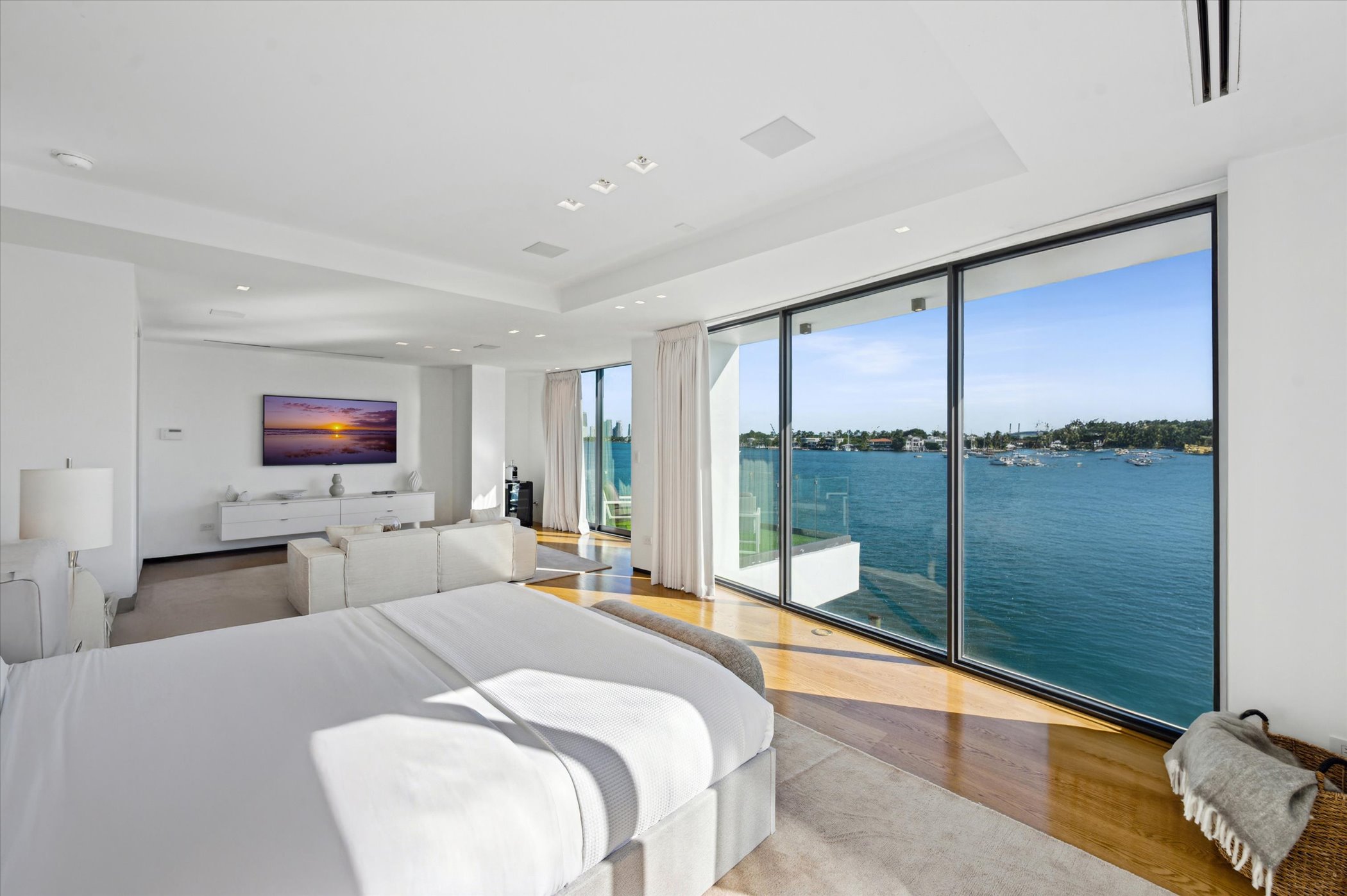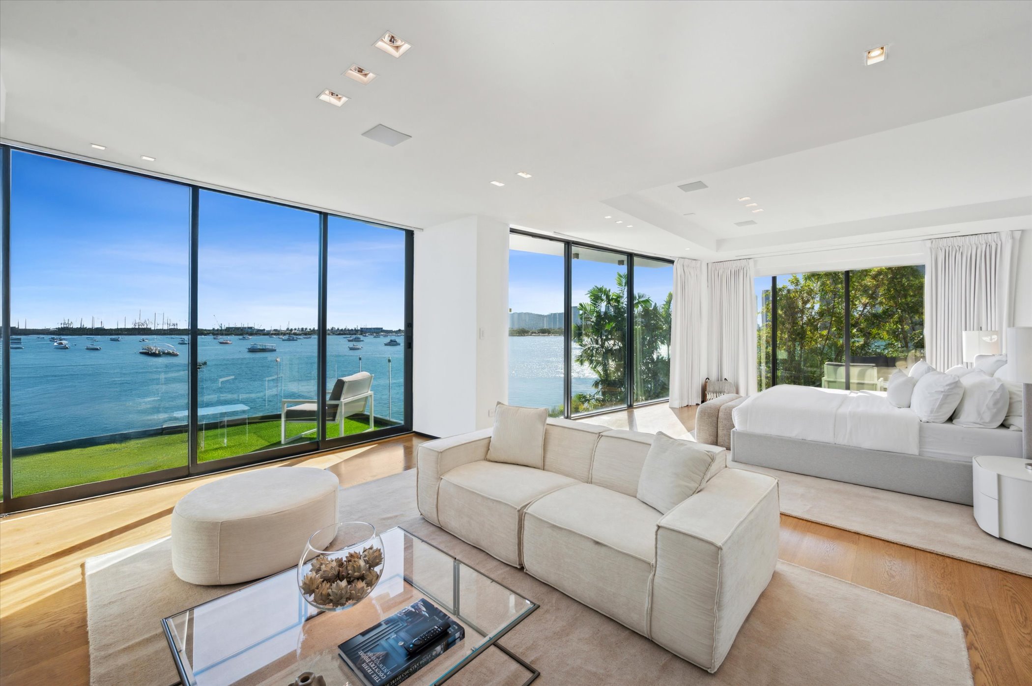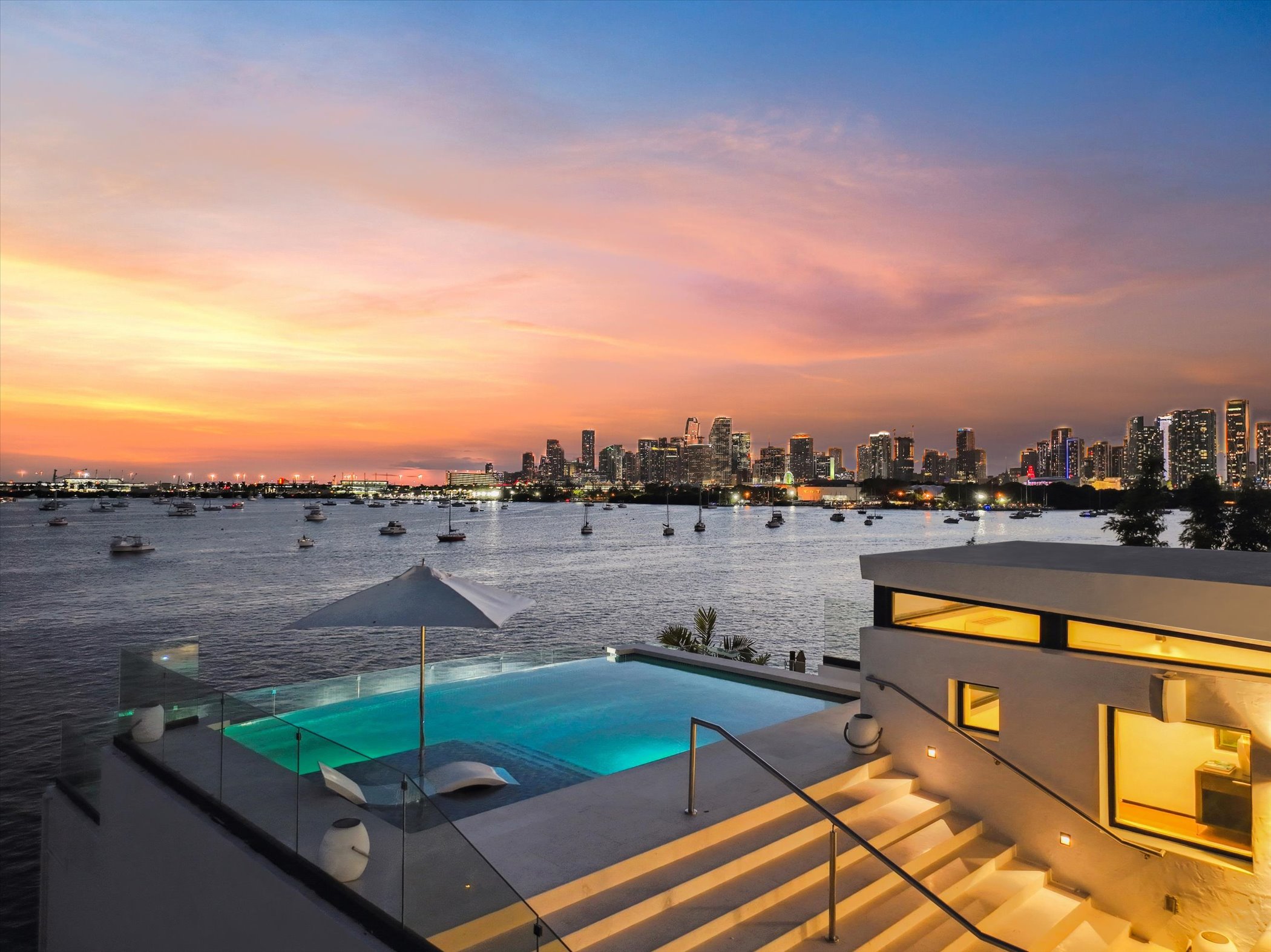 The rooftop is a world of its own, complete with a bubbling jacuzzi, chic bar setup, and expansive terraces crafted for twilight drinks and intimate outdoor dinners. Inside, the villa invites relaxation and entertainment with its private screening room, wellness spa with sauna, and airy living spaces that flow seamlessly into the outdoors. Tucked between Miami’s vibrant scene and its iconic beaches, this bayfront retreat is only minutes from Lincoln Road, Sunset Harbour, and the city’s most notable hotspots — offering a rare combination of exclusivity, style, and sweeping panoramic beauty.