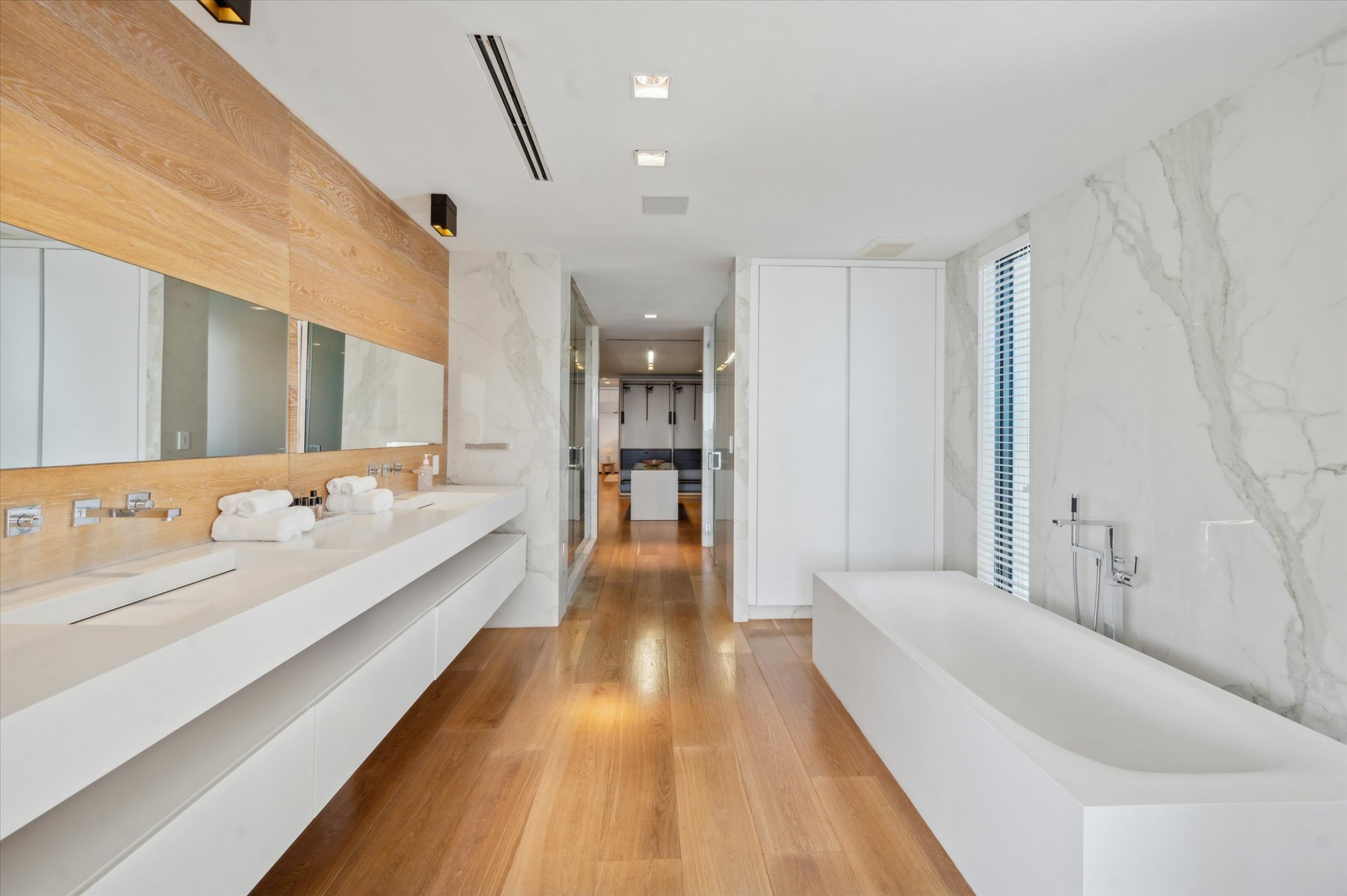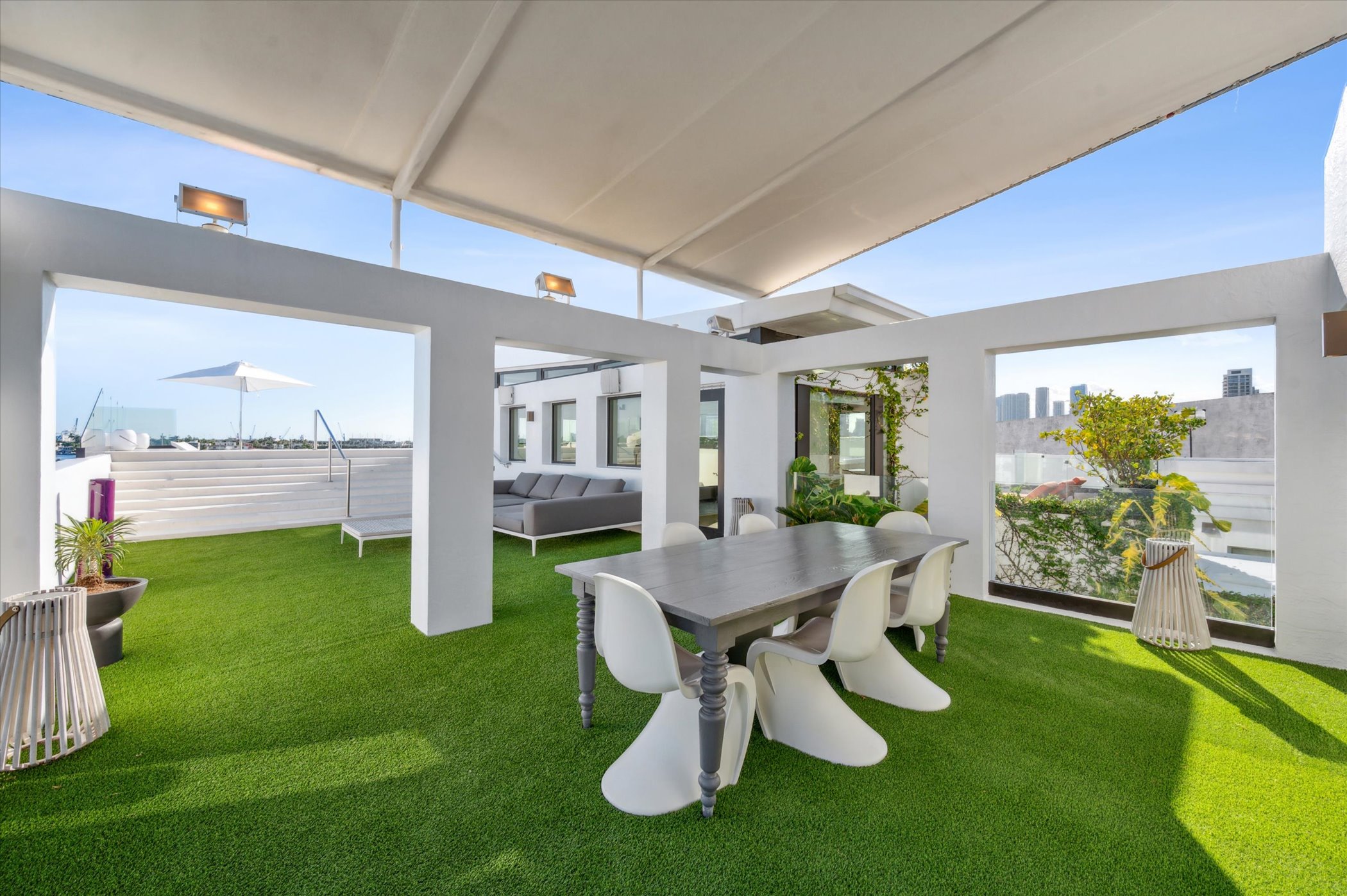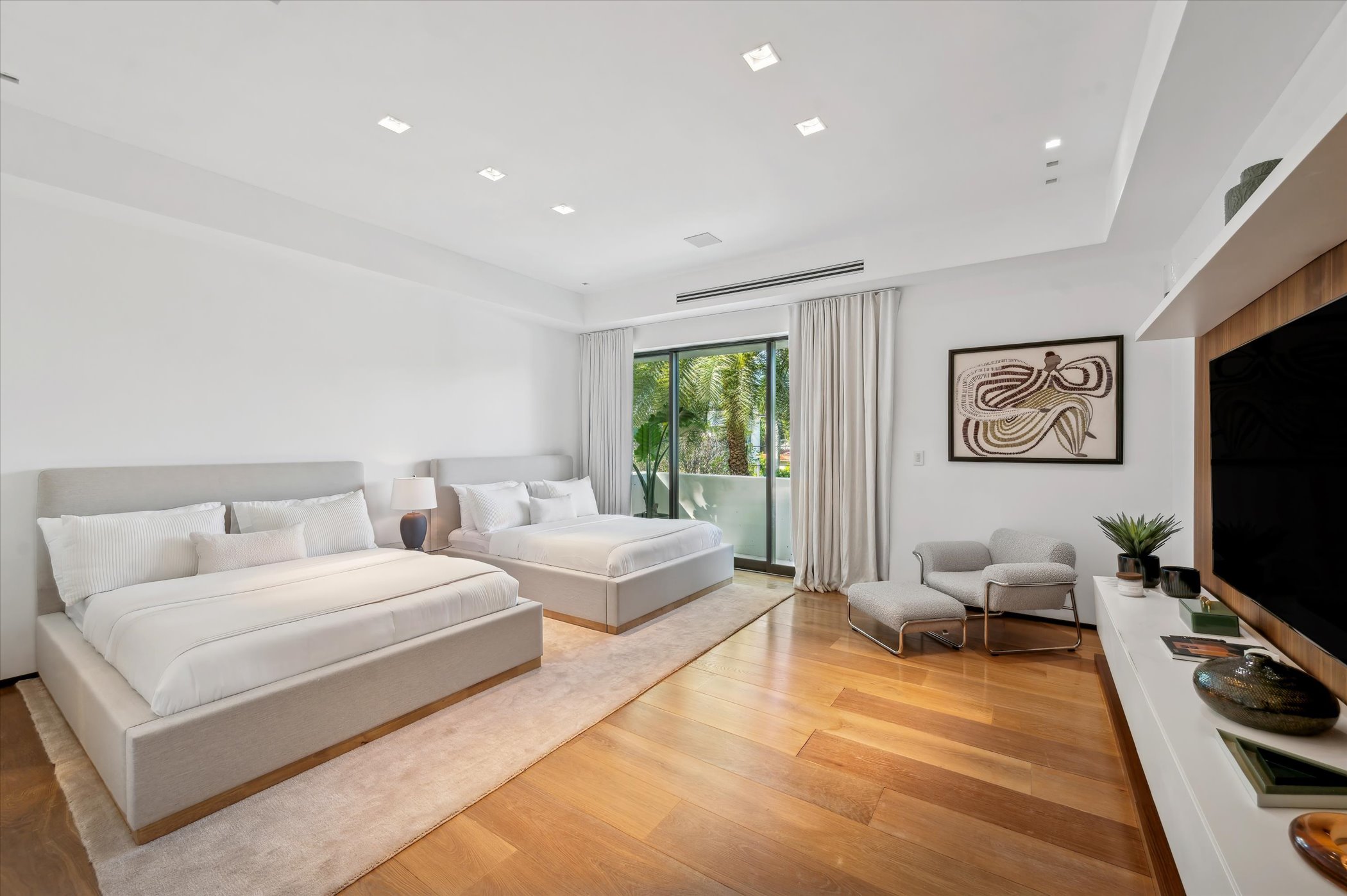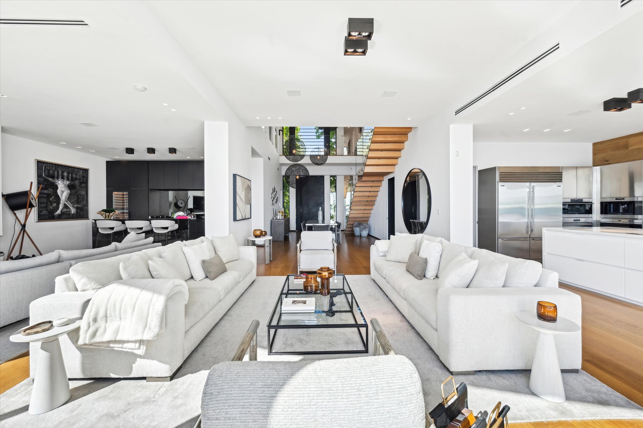 The rooftop is a world of its own, complete with a bubbling jacuzzi, chic bar setup, and expansive terraces crafted for twilight drinks and intimate outdoor dinners. Inside, the villa invites relaxation and entertainment with its private screening room, wellness spa with sauna, and airy living spaces that flow seamlessly into the outdoors. Tucked between Miami’s vibrant scene and its iconic beaches, this bayfront retreat is only minutes from Lincoln Road, Sunset Harbour, and the city’s most notable hotspots — offering a rare combination of exclusivity, style, and sweeping panoramic beauty.