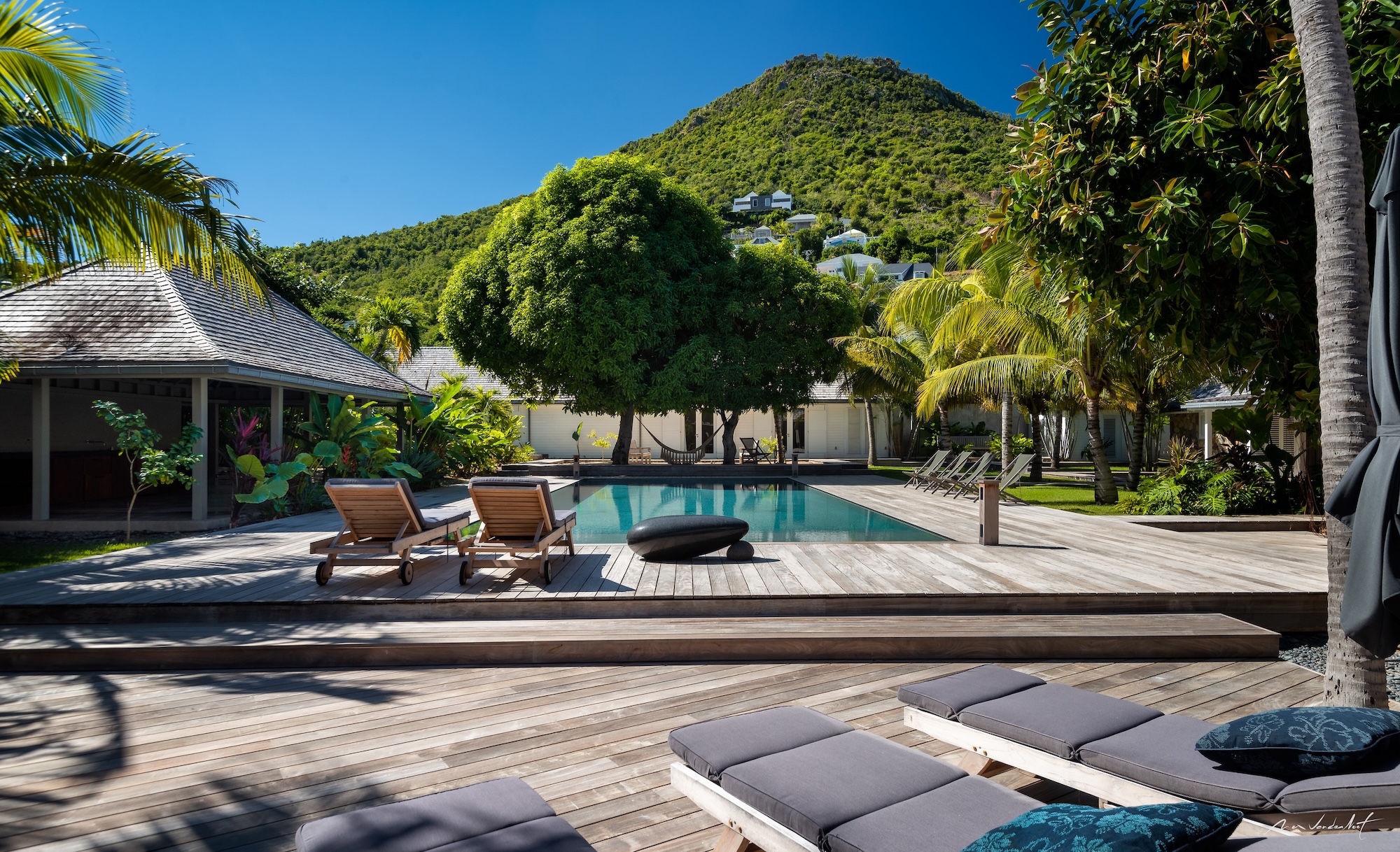 Nestled in a natural haven near Lorient Beach, this extraordinary villa guarantees a magical sojourn, perfect for cherished moments with family or friends.