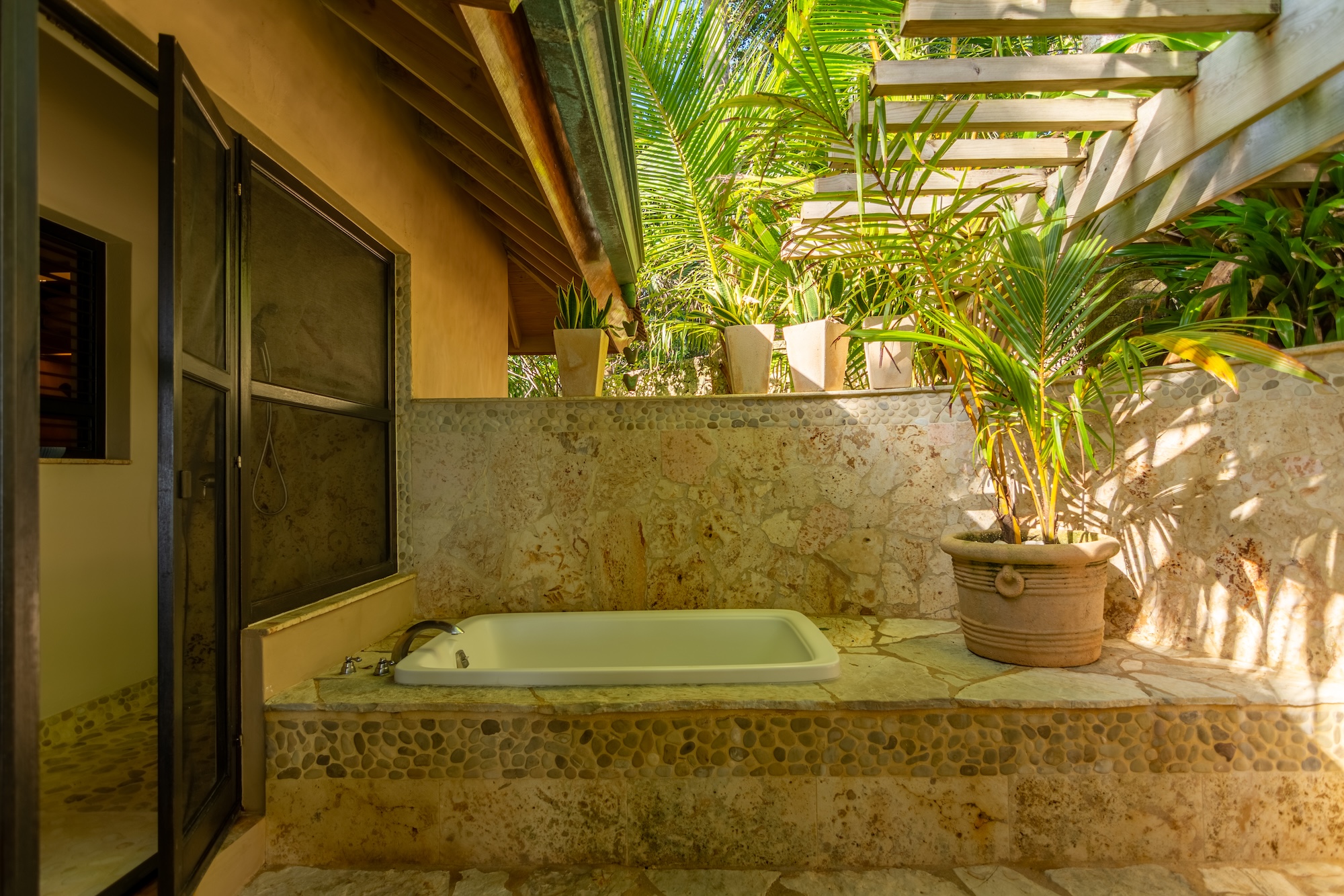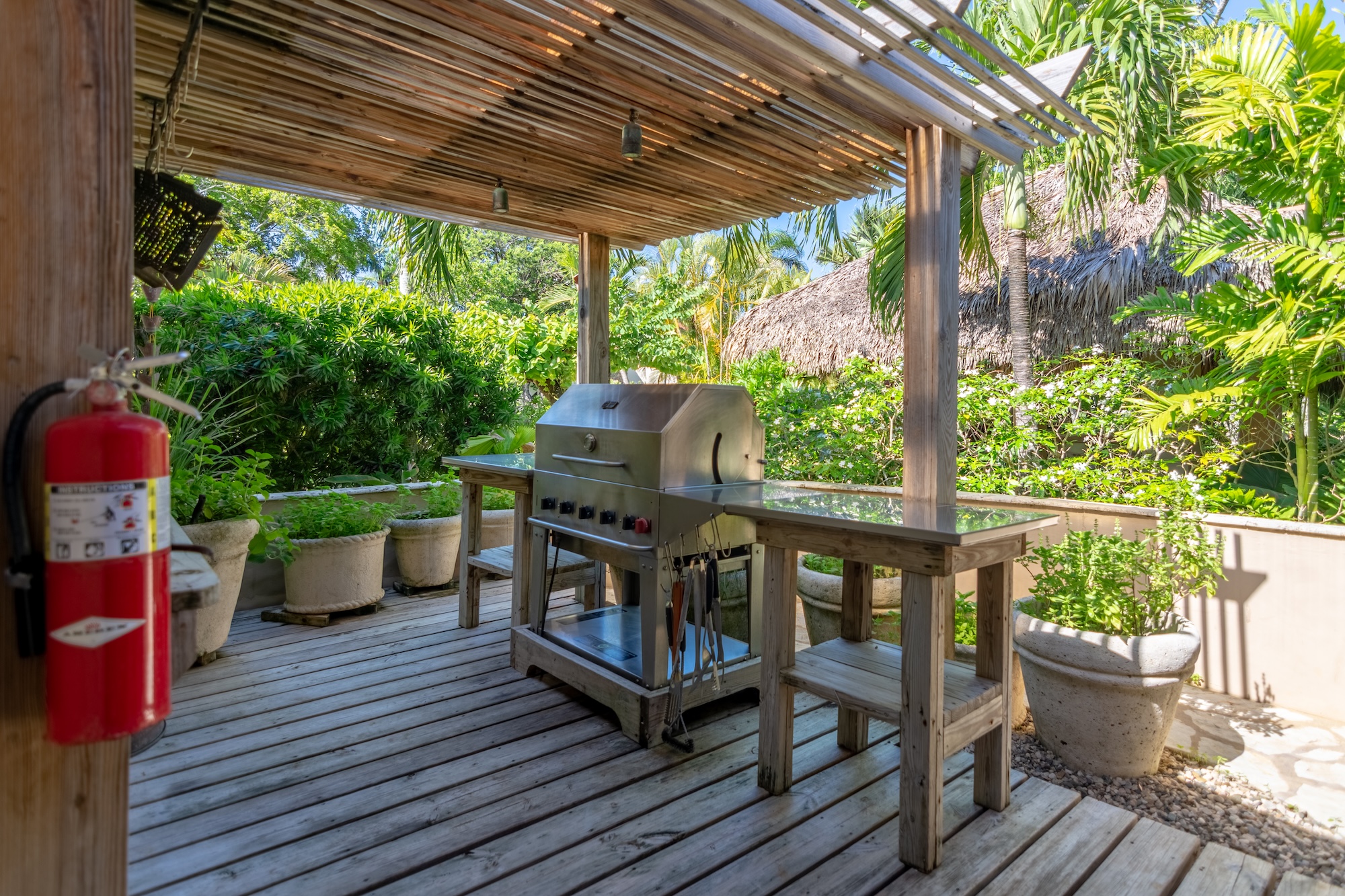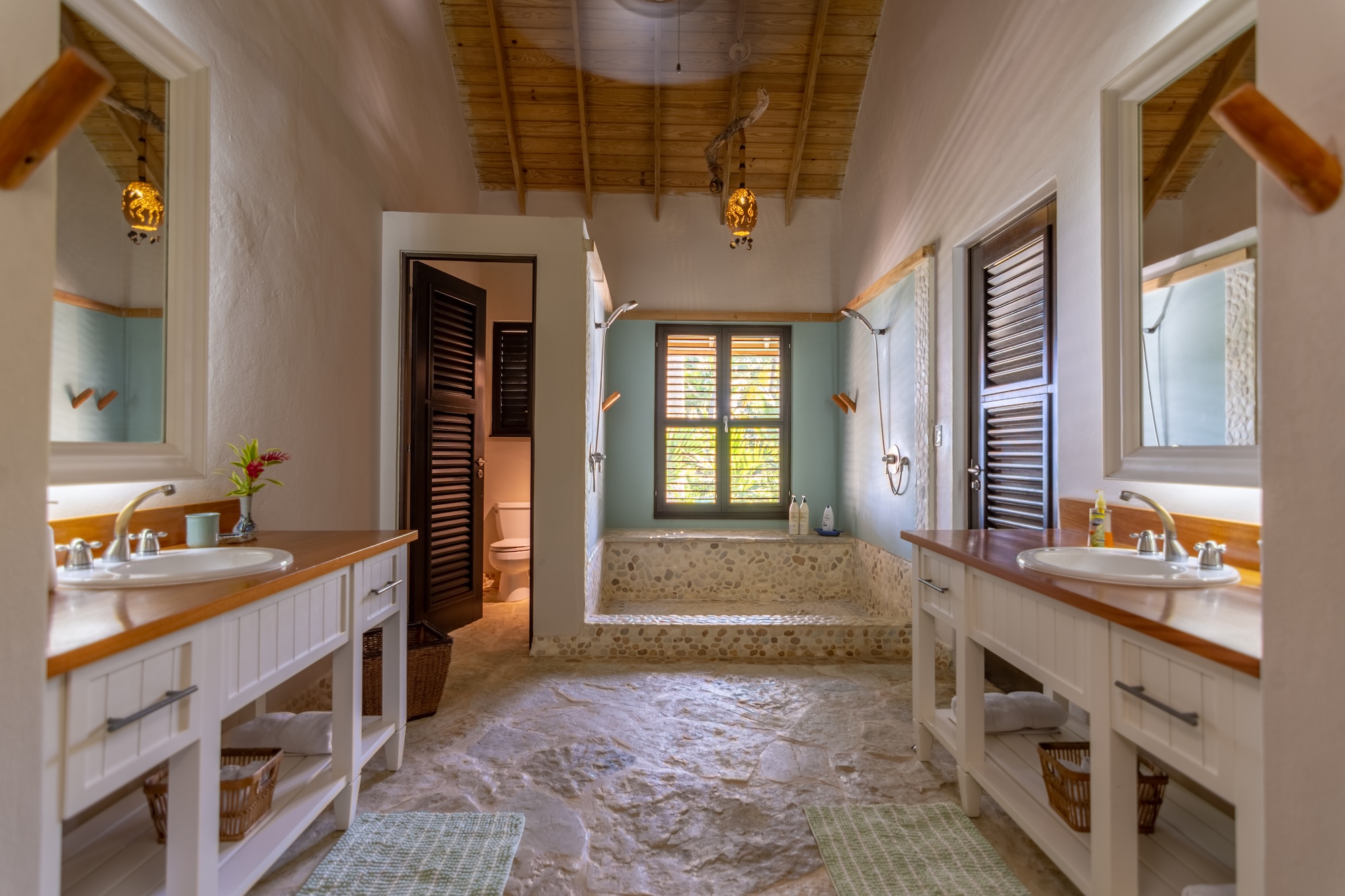Tucked within lush tropical gardens, Villa Wind Song boasts a stunning swimming pool and a vibrant green lawn that extends seamlessly onto the soft sands of Laguna Beach. Spend your days swimming in the ocean and enjoying your favorite water activities, then refresh under the open-air shower before unwinding in the beachfront gazebo with a glass of fresh coconut water. After a day at the beach, lounge by the pool under the Caribbean sun or find shade beneath palapa parasols, before retreating to the villa’s elegant indoor spaces. Enjoy al fresco dining by the ocean, where the gentle breeze enhances every meal.