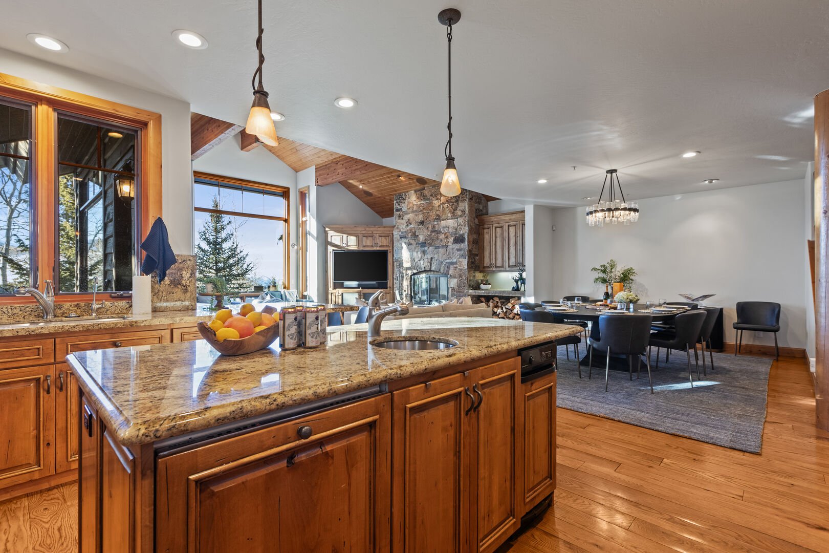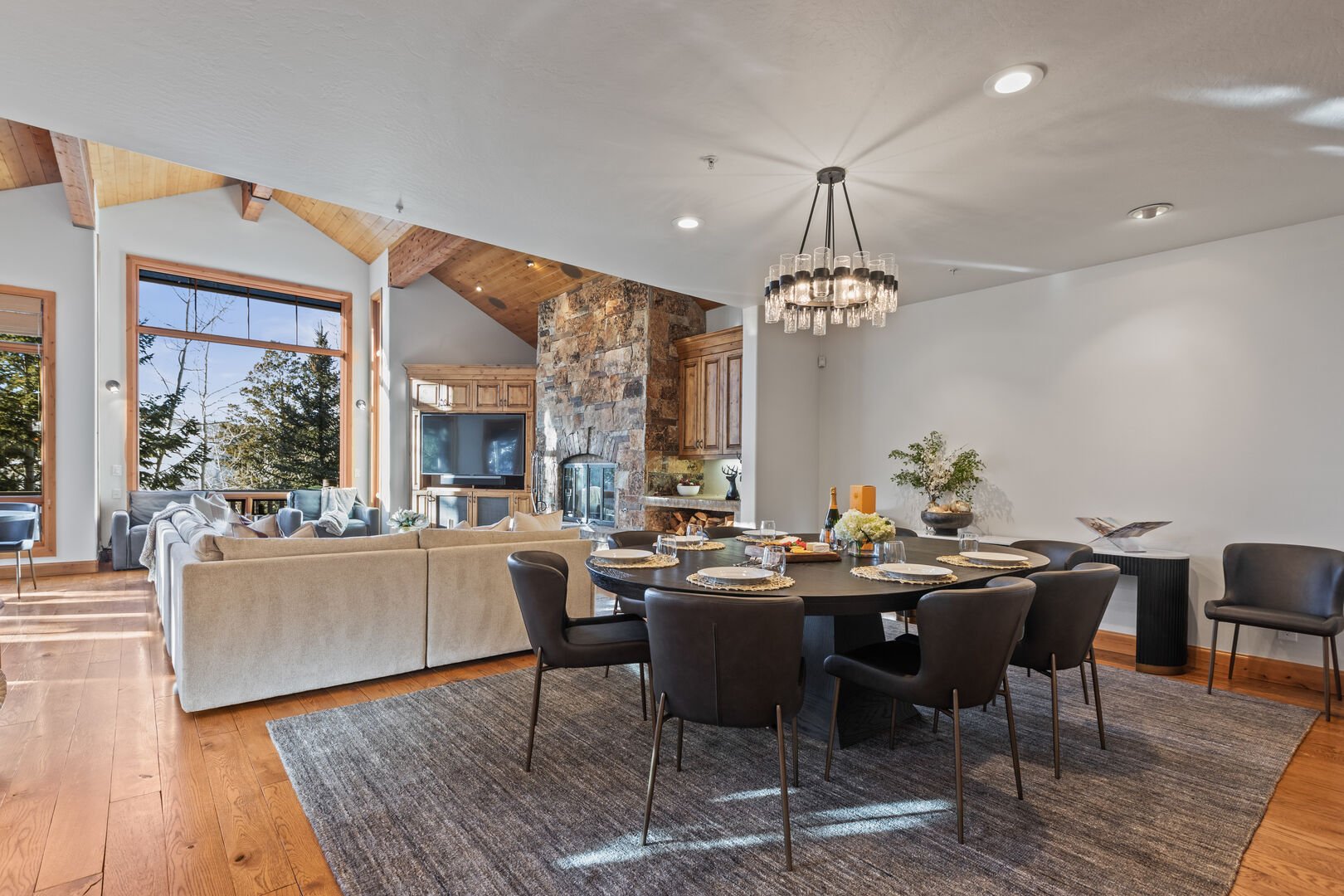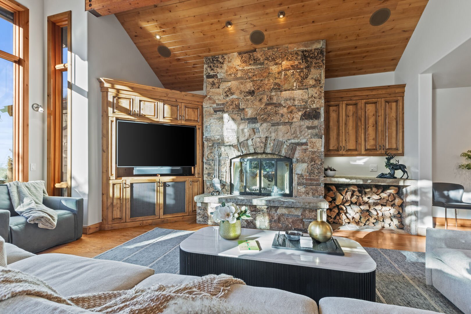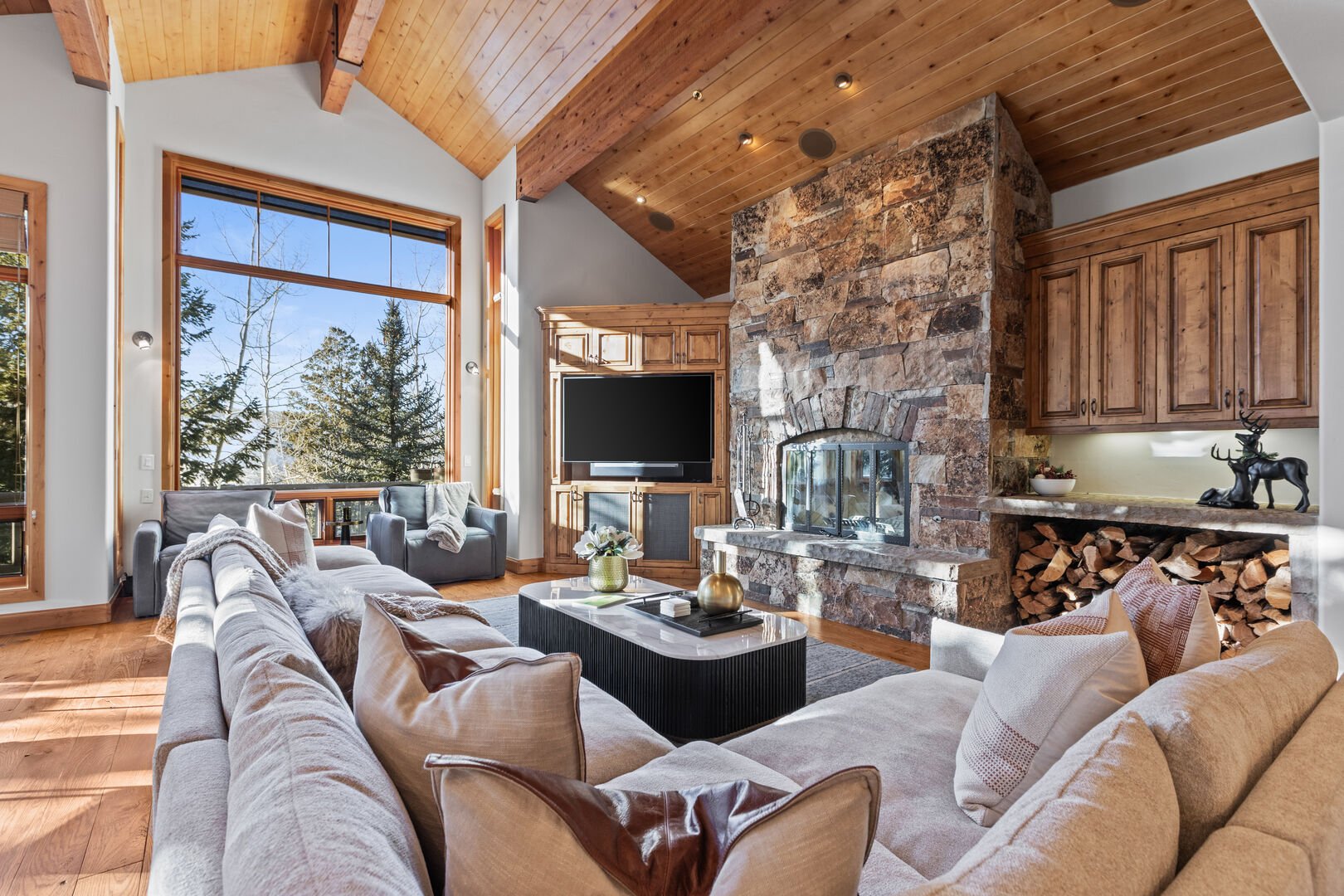 After a full day of outdoor adventures, unwind around the floor-to-ceiling natural rock fireplace in the inviting second-level living room, where high ceilings and expansive windows bring the mountain scenery indoors. Or slip into the private hot tub and enjoy sweeping Deer Valley views with an evening drink in hand.