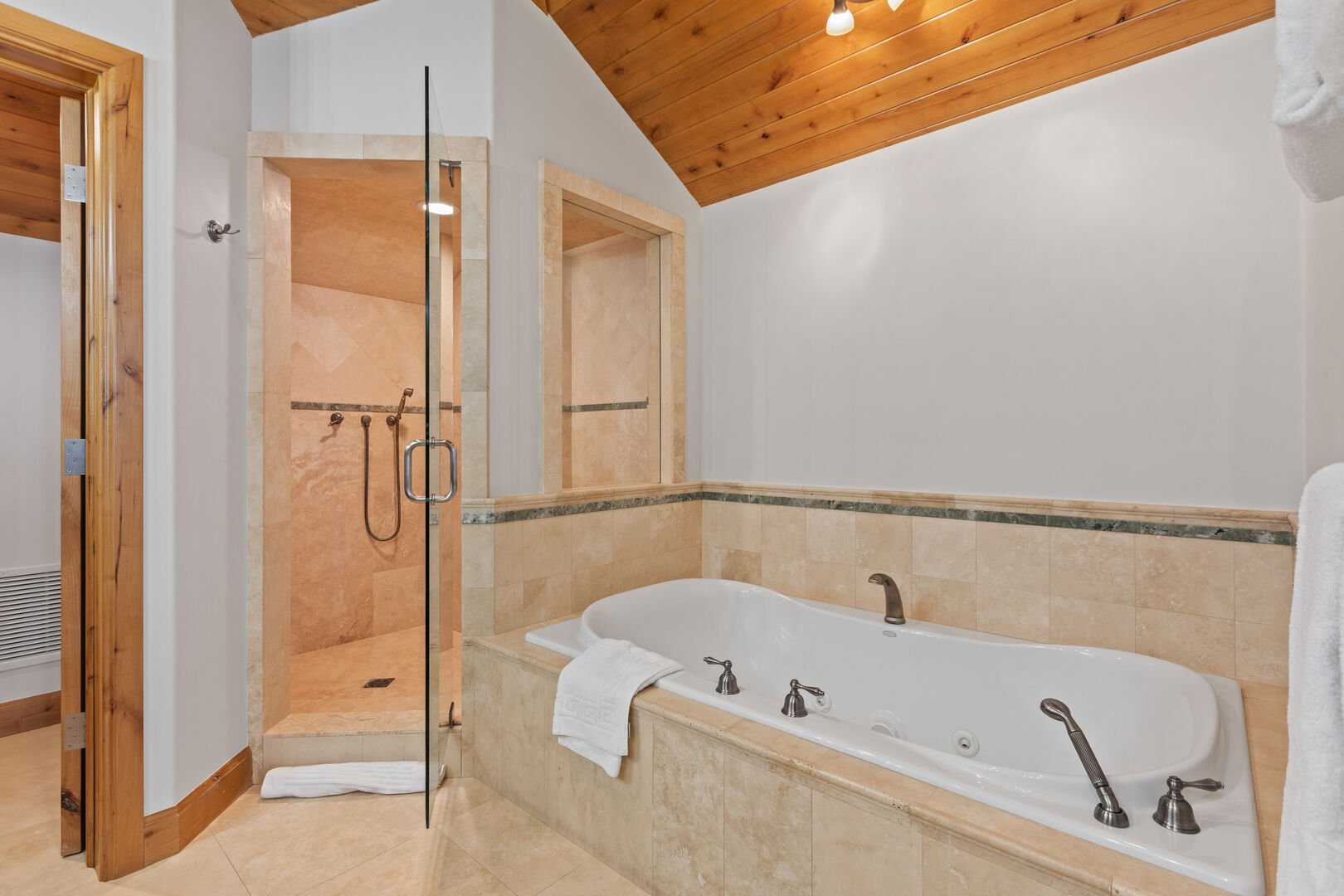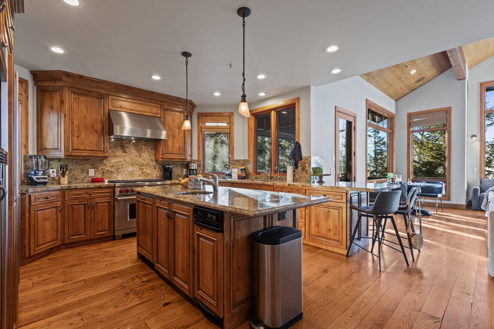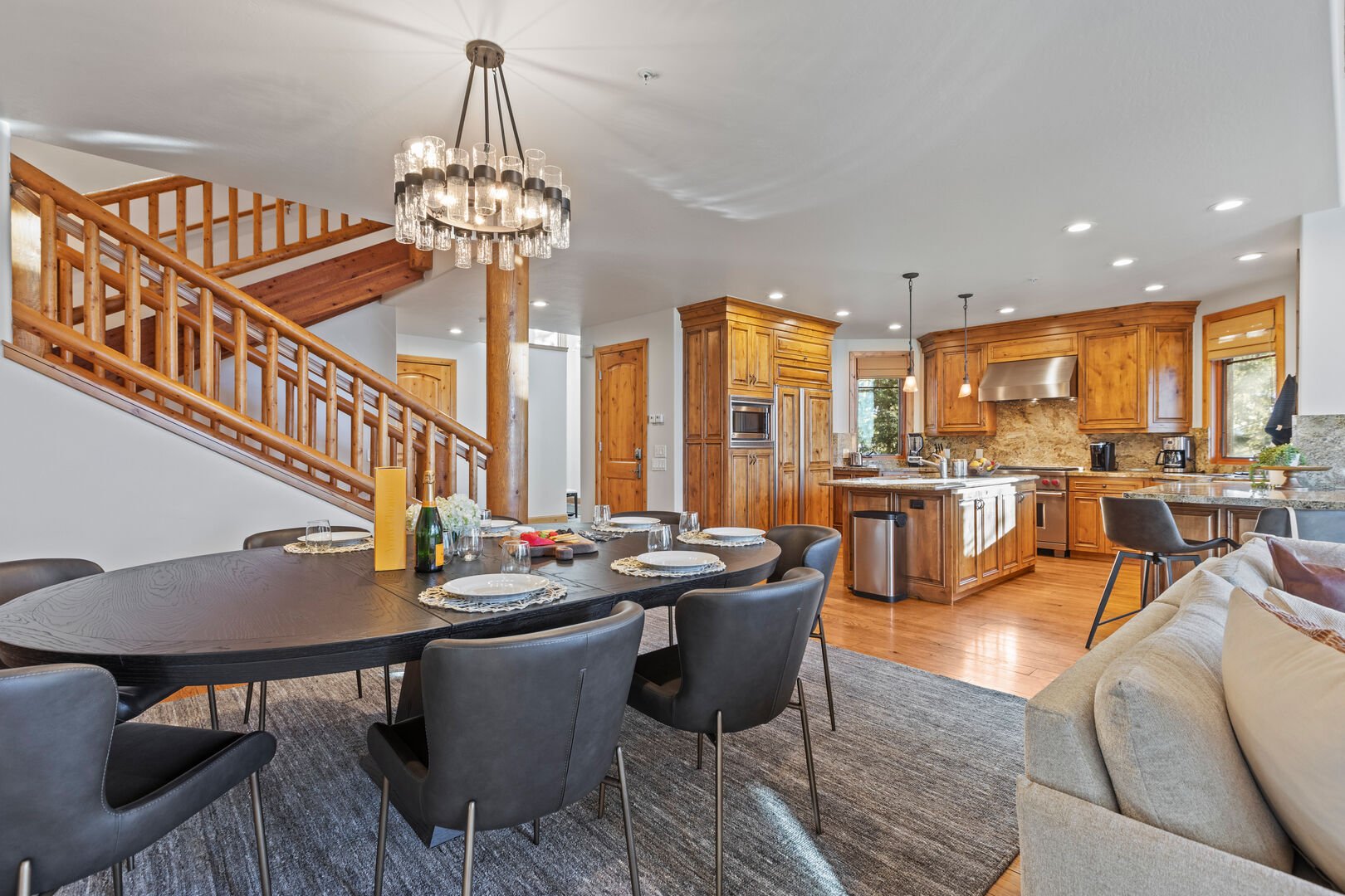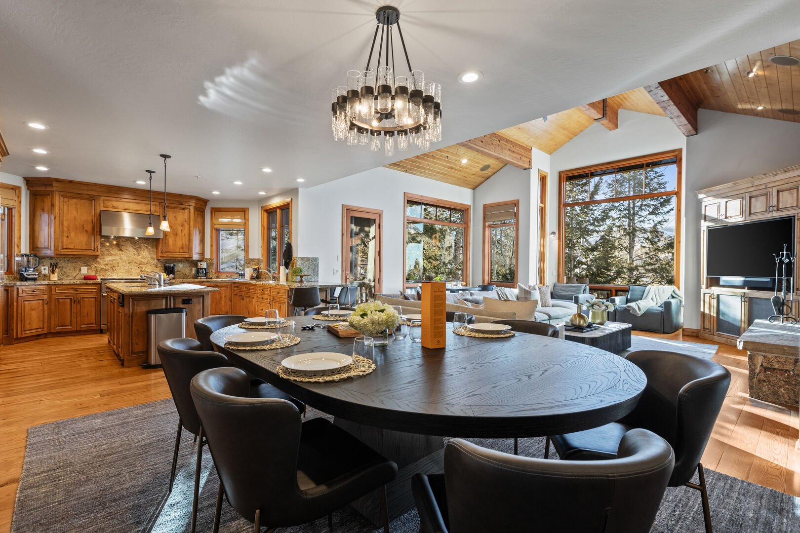 After a full day of outdoor adventures, unwind around the floor-to-ceiling natural rock fireplace in the inviting second-level living room, where high ceilings and expansive windows bring the mountain scenery indoors. Or slip into the private hot tub and enjoy sweeping Deer Valley views with an evening drink in hand.