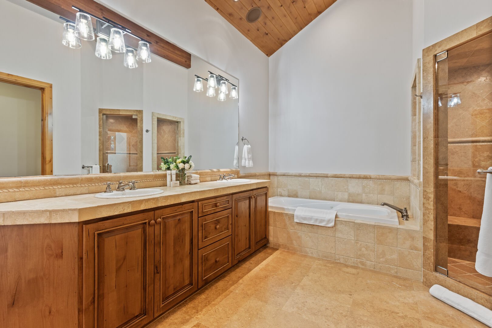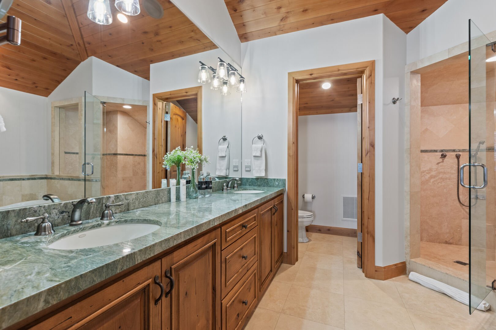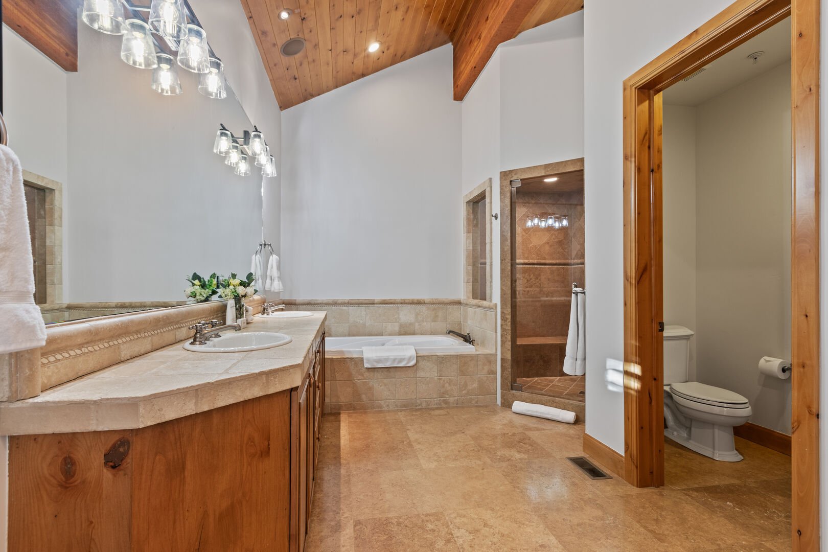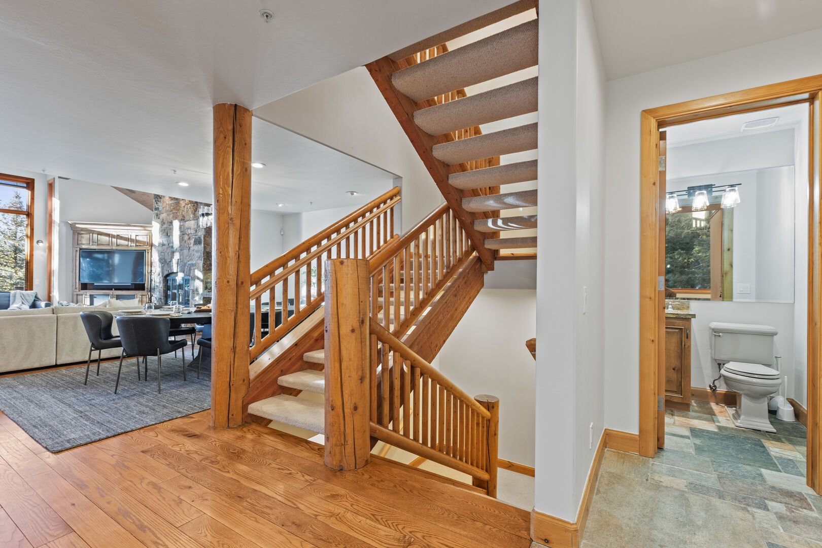 After a full day of outdoor adventures, unwind around the floor-to-ceiling natural rock fireplace in the inviting second-level living room, where high ceilings and expansive windows bring the mountain scenery indoors. Or slip into the private hot tub and enjoy sweeping Deer Valley views with an evening drink in hand.