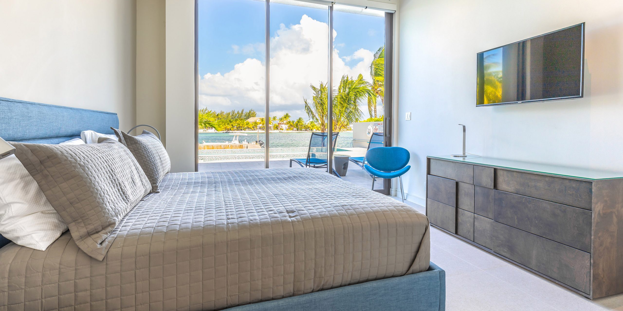 - HD TVs in all living areas and bedrooms, plus night lamps with USB charging ports.
