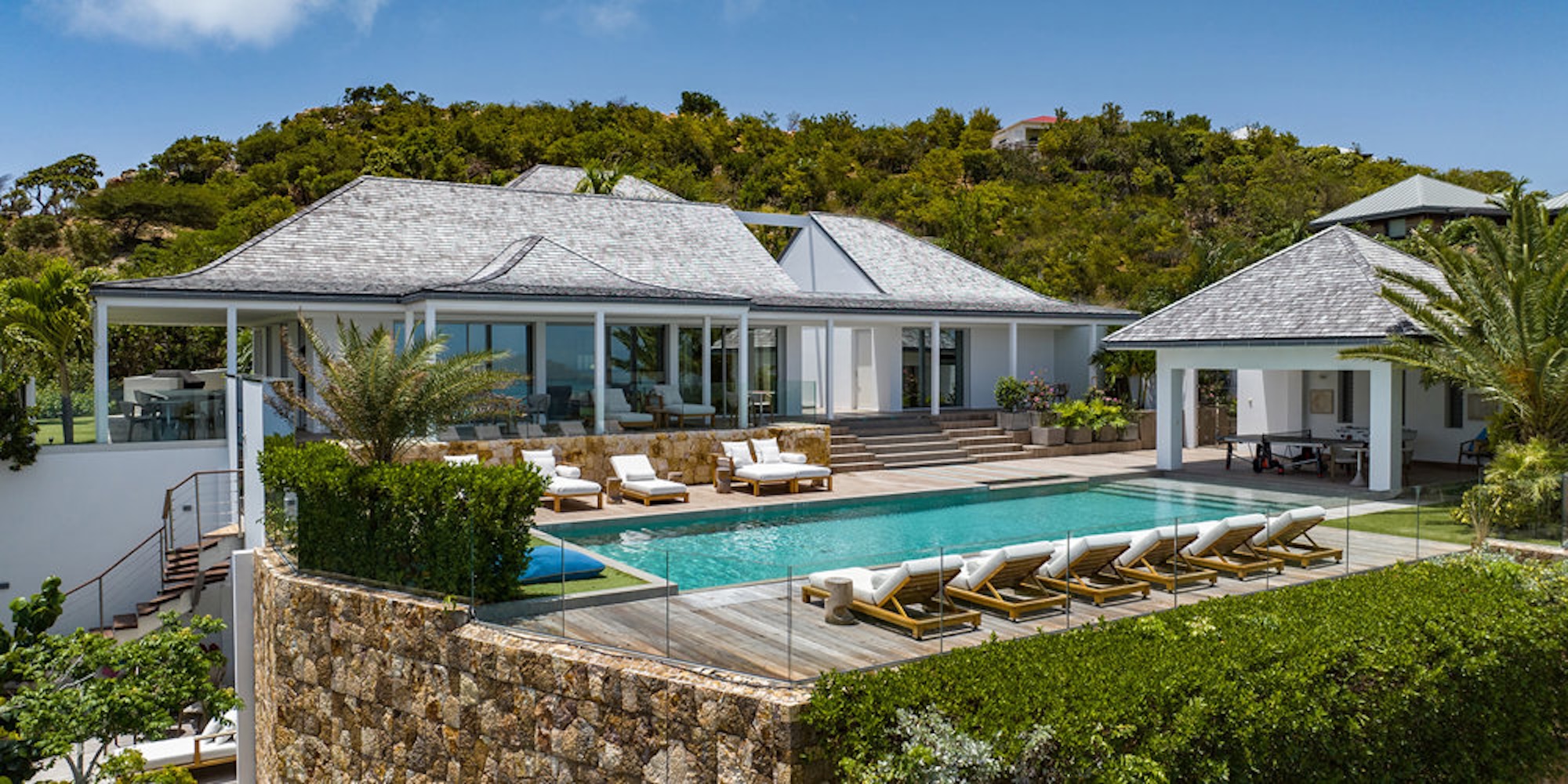 Set in the sought-after St Jean area, Villa Wine Note enjoys breathtaking dual views over St Jean Bay and Eden Rock to the front, with Saline stretching out behind.